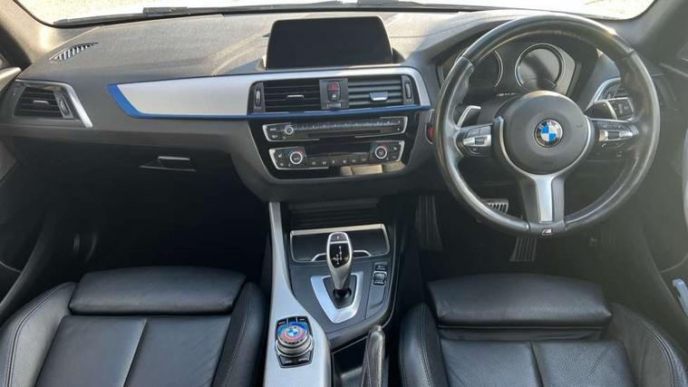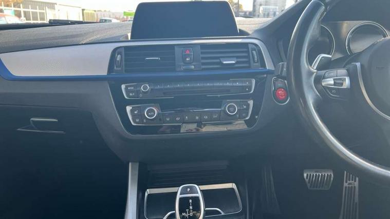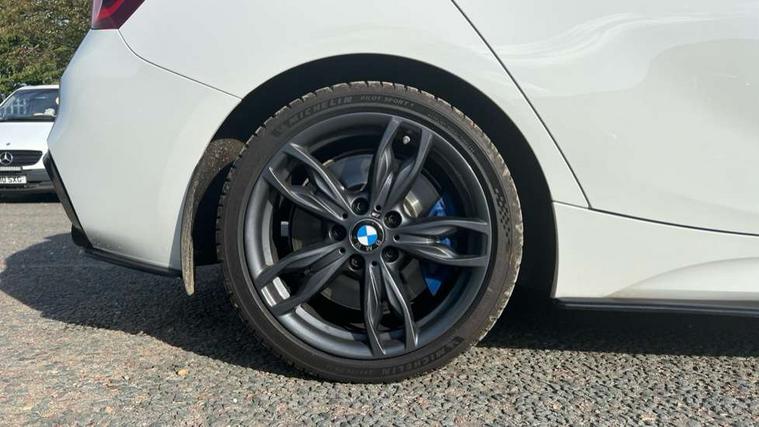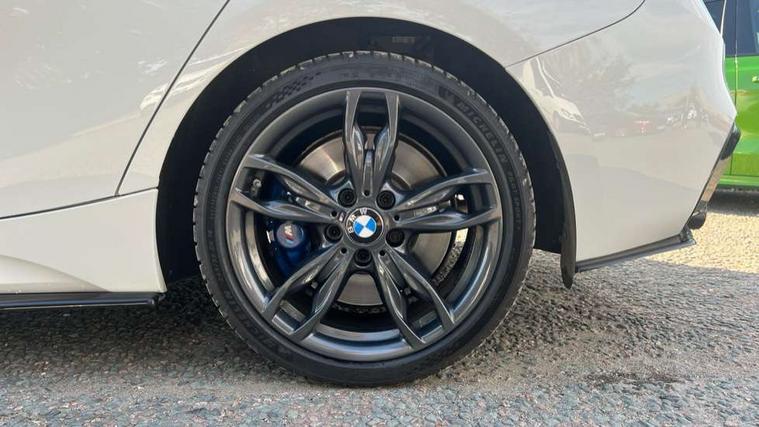 Automatic start/stop system, BMW Online services, BMW remote services, BMW Teleservices, Brake force display, Brake pad wear indicator in front and rear, Check Control warning system for monitoring of lights and door/luggage compartment open warning, Cruise control with brake assist, Eco pro mode, Instrument cluster with speedometer with miles per hour read out, tachometer and fuel gauge, Lights on warning by audio warning signal when ignition is switched off, Oil temperature display via on board computer in instrument cluster, On board computer - average speed+fuel consumption, service interval, clock/date, odometer/trip meter, outside temperature display and ice warning, On board diagnostics, Optimum shift indicator, Personal Profile, Real time traffic information, Speed limiter, Variable sport steering, Battery age recognition function, Drive Performance Control, Sport automatic transmission with Launch Control, Sports function on gearbox with steering wheel mounted gearshift paddles, BMW professional radio with CD player, DAB Digital radio, Harman/Kardon loudspeaker system, Body colour door handles, Body colour front and rear bumpers, Body colour roof mouldings, Clear lenses direction indicator lights, Dark chrome exhaust tailpipes in dual, round and split, Darkened rear lights with LED light bars, Daytime driving lights, Direction indicator side lights in exterior mirrors, Dynamic brake lights, Electrically adjustable heated door mirrors and washer jets, Ferric grey air blades, Ferric grey mirror caps, Follow me home headlights, Front and rear bumper system with replaceable deformation elements, Front and rear electric windows with open and close fingertip control, anti trap facility and comfort closing, Front door exit lights, Green tinted heat protection glazing, Headlight beam throw control, Heated windscreen washer jets, High gloss black kidney grille with black slats, High level third brake light, LED exterior front door handle lights, Lightweight engineering, M aerodynamic bodystyling, Nearside reverse light in rear light cluster, Offside rear fog lights, Rain sensor including auto headlights activation, Rear window aerial, Rear window wiper, Shark fin antenna, Sun protection glass, Visible VIN plate, Welcome lighting, 12V power socket in centre console, 12V power socket in passenger footwell, 60/40 split folding rear seat, Ambient lighting - switchable BMW classic orange/ cold white LED, Ambient lighting front and rear, Anthracite headlining, Anthracite Velour front and rear floor mats, Conditioned based service, Dakota leather upholstery, Door sill finishers with M140i designation, Driver and passenger illuminated vanity mirror, Four grab handles integrated in roof lining, Front and rear side armrest integrated into door trim, Front folding sliding armrest with storage compartment, Front footwell lights, Front head restraints, Front LED reading lights, Front sports seats with electric side bolster adjustment, Front storage compartment in centre console and in door trim, Front/rear courtesy lights with soft on/off dimming, Glove box handle with chrome surround, Glovebox, Interior light in front centre interior mirrors and rear centre auto interior light activation when door is opened when ignition switched off, Isofix child seat for two outer rear seats, Leather gear knob and handbrake grip, LED luggage compartment lighting, LED rear interior light with centre reading lights, Luggage compartment access via BMW roundel, Luggage compartment lighting, M sports multi function leather steering wheel, Manually adjustable steering column, Multi-function controls for steering wheel, Rear folding head restraints, Sunvisors with vanity mirrors and ticket pocket, Two cupholders with sliding cover and inlay mat, Two sills lashing eyes in the luggage compartment, Two zone automatic air conditioning, 3 point seatbelts on all seats, front pyrotechnic belt tensioners, stopper and belt force limiters, rear coded belt buckles, Active differential brake (ADB), electronic differential lock in DSC-OFF mode, Airbags - Front driver and passenger, front and rear head, front side, curtain head protection, Anti lock braking system (ABS) with brake assist, Automatic Stability Control (ASC), Battery safety cut-off, BMW emergency call, Brake drying, Brake energy regeneration, Braking readiness, Cornering brake control (CBC), Crash sensor activating central locking release, hazard warning lights, Driver and front passenger seat belt security check, DSC+, Dynamic brake control, Dynamic Traction Control - DTC, Front passenger manual airbag deactivation, Front ventilated brake disc, Hill start assist, M Sport braking system, Rear brake discs, Rear child proof door locks, Side impact protection, Twin horns, Tyre pressure monitoring system, Warning triangle and first aid kit, Automatic drive away locking facility, Central locking switch for all doors, fuel filler cap and luggage compartment, Locking wheel bolts, Remote central locking with two Integrate key, one button for opening and closing all lock, open and close window, button for open luggage compartment, Remote control integrated key with blue inset, Start/stop button with comfort go keyless engine start and auto start stop deactivation button, Thatcham Cat.1 alarm and immobiliser, High performance tyres, Reduced rolling resistance tyres,