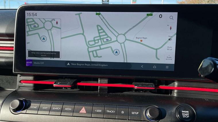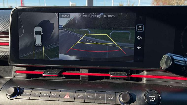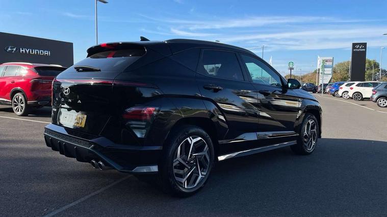 12.3" touchscreen centre console display satellite navigation with bluelink, live services and mapcare, Blind spot collision avoidance assist, Blind spot view monitor, Bluetooth connectivity with voice recognition, Digital clock, Driver status monitor (DSM), Driver supervision instrument cluster with 12.3" LCD display, eCall emergency call system, Feature on demand - Enabled, Forward collision avoidance assist (FCA 1.5) - Car, pededstrian, cycle and junction turning, Front parking sensor, HDA - Highway Drive Assist Level 1.5, Height adjustable power tailgate, Intelligent speed limit assist, Lane follow assist, Lane keep assist, Leading vehicle departure alert (LVDA), Parking Collision Avoidance Assist-Reverse (PCA-R), Parking distance warning - side, Parking system with rear camera and guidance system, PAS, Rear cross traffic collision avoidance (RCCA), Rear parking sensor, Roadside assistance, Safe exit warning (SEW), Smart cruise control with stop and go functionality, Surround view monitor, Windscreen washer fluid sensor and warning indicator, Wireless phone charging pad, Wireless Smartphone Integration includes Apple CarPlay and Android auto, 2 front USB C and 2 rear USB C charging points, Bose Premium Audio system with 7 premium speakers + subwoofer, DAB Digital radio, Steering wheel audio, phone and cruise controls, Auto dimming rear view mirror, Automatic headlights with dusk sensor, Automatic windscreen wipers with rain sensor, Body colour bumpers, Body colour exterior door handles, Body coloured wheel arch inserts, Door mirror LED indicator lights, Electric front windows with anti-trap mechanism and one touch control, Electric rear windows, Electrically adjustable and heated door mirrors, Gloss black door mirrors, Horizon centre LED DRL, LED projector headlights, LED upper and lower rear lights, Power folding door mirrors, Privacy glass - Rear windows and tailgate, Rear roof spoiler with integrated LED brake light, Rear side wing doors, Rear wiper, Roof rails, Solar glass with front door glass and windscreen, Tinted glass in front and rear doors, Windscreen auto defog function, 12V power outlet in front console, 2 zone climate control, 3 seat bench in 2nd row, 40/20/40 split folding rear seat, Adjustable head restraints, Aluminium pedals, Ambient lighting, Driver and passenger front seat pockets, Driver's seat electric adjustments, Driver's seat lumbar support, Driver/passenger sunvisors and illuminated vanity mirrors, Floor mats, Front passenger's seat electric adjustments, Heated front seats, Heated rear seats, Heated steering wheel, Height/reach adjustable steering column, Isofix rear child seat fastenings, Leather wrapped steering wheel, LED centre interior light, LED front interior light, Luggage compartment LED lighting, Luggage net, Luggage shelf, Metal paint effect interior door handles, N Line Alcantara/leather upholstery, Parcel shelf, Rear centre armrest, Rear centre console with air vents, Shift by wire SBW, Single front passenger seat, Ventilated front seats, Vertical adjustment rear head restraints, N Line exterior design pack - Kona, Trailer wiring package - Kona, Airbag - front, front side, curtain and centre front airbag, Anti-lock brake system (ABS), Childproof rear door locks, Downhill brake control, EBD + Brake Assist, Electric parking brake, Electronic stability control, Fasten seatbelt reminder, Fixed 3 point for second row centre passenger seatbelt, Front seatbelt pretensioners, Height adjustable front seatbelts, Hill start assist control (HAC), Passenger airbag deactivate switch, Rear seat alert, Traction control, Tyre pressure monitoring system, Alarm/immobiliser, Deadlocks, Folding key, Locking wheel nuts, Remote central locking, Smart key with keyless entry and engine start/stop button, Five year annual vehicle health checks, Temporary mobility kit (TMK),