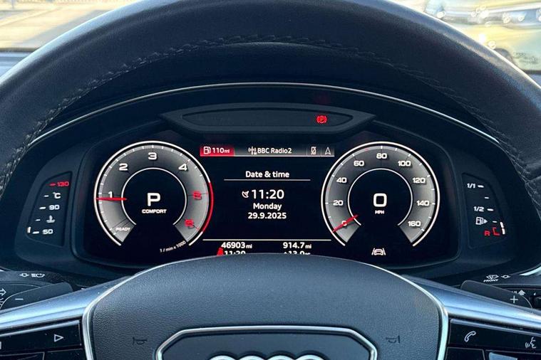7" high resolution colour driver information display system, Audi connect safety and service (e-call), Audi drive select, Audi parking system plus - acoustic and visual park assist system for front and rear, Audi smartphone interface, Automatic start/stop system with coasting functionality, Bluetooth interface, Cruise control + speed limiter, Lane departure warning system, MMI navigation with MMI touch + twin touch screens 8.8" and 8.6" with haptic and acoustic feedback, Power operated tailgate, Progressive steering, Rear view camera, Service interval indicator, Voice control system, 12V Mild hybrid, 24 litre AdBlue tank, Diesel particulate filter, Standard suspension, Audi music interface, Audi sound system, Auxiliary input socket, DAB Digital radio, USB connection, All weather LED headlights, Aluminium roof rails, Body colour bumpers, Body coloured door mirrors, Electric front/rear windows, Frameless auto dimming interior rear view mirror, Heat insulating darkened glass in side and rear windows, Heat insulating glass in windshield, LED rear lights, Matt black rear diffuser with diffuser strip and tailpipes in chrome, Matt black side air intake grille with inlay in matt aluminium, Radiator grille in titanium black matt, single frame in chrome and horizontal struts in matt aluminium silver, Rain and light sensors, Rear roof spoiler, 2 zone deluxe electronic climate control, 3 spoke high multi-function leather steering wheel with shift paddles, 4 way electric lumbar support for driver and front passenger, 40/20/40 split folding 3 rear seat bench in 3 parts with rear centre armrest, Centre armrest matches seat colour, Door sill trims with aluminium inlay, Front centre armrest, Front head restraints, Front/rear floor mats, Heated front seats, Height/reach adjust steering wheel, Illuminated sun visors with vanity mirrors, ISOFIX child seat mounting and Top Tether with front passenger airbag deactivation, Leather gear knob, Luggage compartment system, Lunar silver cloth headlining, Manually adjustable front seats, Rear headrests, Tool kit and car jack, LED Interior Ambient Lighting Pack - A6, Non smoking pack - A6, 3 point seatbelts on all seats, Airbags - Front side, front and rear including head, Audi pre-sense front, EBD - Electronic brakeforce distribution, Electromechanical parking brake, Electronic Stability Control (ESC) including ABS, ASR and EDL, Extended pedestrian protection measures, Seatbelt monitoring, Tyre pressure warning light, Warning triangle and first aid kit, Anti theft alarm with tow away protection, Anti-theft wheel bolts and wheel loosening detection, Immobiliser, Keyless Go, Remote central locking, Aluminium fragment inlay,
