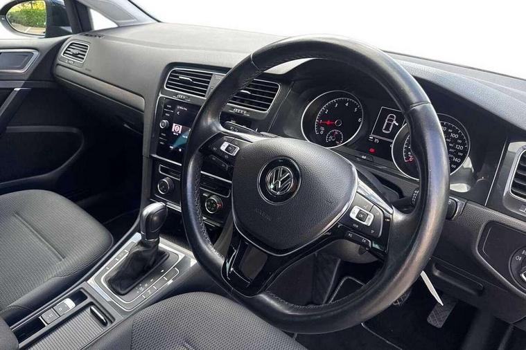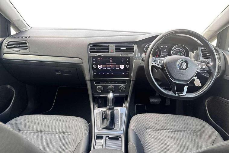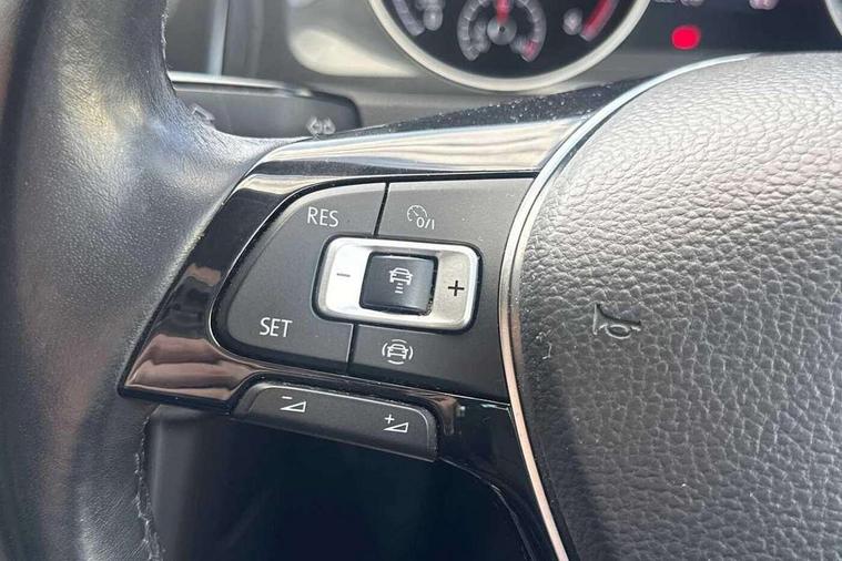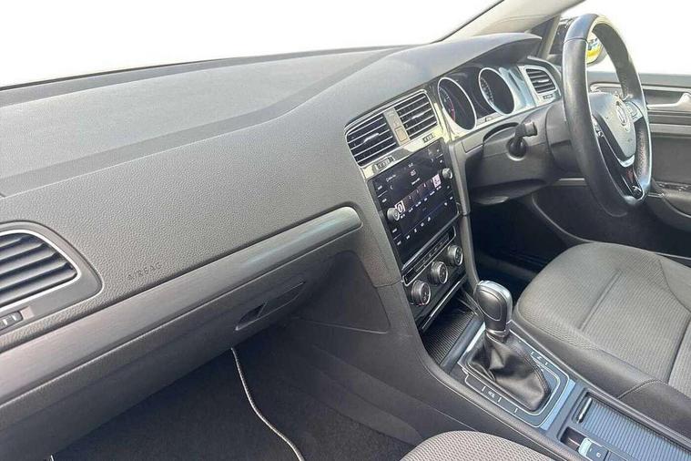 'Lights On' Reminder warning buzzer, ACC - Adaptive cruise control with front assist, forward collision warning, distance monitoring, city emergency brake and speed limiter, Bluetooth telephone and audio connection for compatible devices, Brake pad wear indicator warning light, Driver alert system, Driver profile selection, Driving Mode Selection with four preset modes - Eco, normal, sport or individual modes, Instrument cluster in white, Multifunction computer with visual gear change recommendation for fuel consumption, Power assisted speed sensitive electro-mechanical steering, Push tank flap, Speed limit display, Speedo, rev counter, electronic odometer, trip, service interval display, exterior temperature and fuel gauge, Stop/start system, Warning buzzer and light for front seatbelts unfastened, Battery regeneration during braking, XDS electronic differential lock, Composition media system, DAB Digital radio receiver, MP3/WMA compatability, Multi device interface (MDI) with USB connection, Personalisation 1.1 profile for media, Premium USB cable in choice of either Apple or Android smartphone compatibility, SD card slot, SMS Functionality, USB and SD card connectivity, Black front air intake and radiator grille with chrome insert, Black rear diffuser, Body colour bumpers, Body colour door handles, Body colour door mirrors with integrated indicators, Dusk sensor + automatic driving lights, Electric front windows, Electric rear windows, Electrically adjustable and heated door mirrors, Fully galvanised body, Heated rear windscreen, Hidden exhaust pipe, High level 3rd brake light incorporating LED Technology, LED daytime running lights, LED front fog lights with static cornering light function, Rear fog lamp, Rear tinted glass 65% light absorbing from B pillar backwards, Rear window aerial, Rear window wash/wipe with intermittent wipe, Reflectors in all doors, Tailgate with integrated rear roof spoiler, Windscreen wipers/ intermittent wipe + 4 position delay, 12V socket in luggage compartment, 3 rear headrests, 4 load lashing points in luggage compartment, 60/40 split folding rear seat backrest, Auto fold down lever in rear seat backrest, Bag hook in luggage compartment x 2, Cooled glovebox, Cupholder cover, Dust/pollen filter, Front and rear reading lights incorporating LED technology, Front centre armrest with storage compartment and two rear air vents, Front seat back storage pockets, Grab handles front x 2, rear x 2 with integrated coat hooks, Height and reach adjustable steering wheel, Illuminated vanity mirrors, Instrument lighting white adjustable panel illumination, Interior light delay, Isofix preparation for 2 rear child seats, Load through provision with rear centre armrest and cupholders x2, Luggage compartment lighting, Overhead storage box, Passenger underseat drawer, Pearl grey headlining, Storage box in luggage compartment, Storage compartment in roof console with cover, Storage compartments in centre console, Storage compartments in front doors, Storage compartments in rear doors, Stowable luggage compartment cover, Sun visors, Variable boot floor, height adjustable and removable, Convenience Pack - Golf, Light and Sight pack - Golf, Mirror pack - Golf, 3 rear three point seatbelts, Airbags - Driver's and front passenger's, curtain airbag, Driver's knee, front side impact and passenger's airbag deactivation switch, Anti-lock Braking System (ABS) with Hydraulic Brake Assist (HBA), Automatic post collision braking system, Child locks on rear doors, Driver/Passenger optimised head restraints, Electronic parking brake with auto hold, Electronic stability control (ESC) including Electronic differential lock (EDL) and ASR (Traction control) with deactivation via infotainment system, Pre crash preventive occupant protection, Three point height adjustable front seatbelts with tensioners, Tyre pressure loss indicator, Alarm with interior protection and deactivation via infotainment system, Electronic engine immobiliser, Remote central locking with 2 remote folding keys, Brushed dark silver decorative inserts in dash and door panels, Chrome plated air vent surround, Chrome plated electric mirror adjustment light switch surround, Polar night black centre console, Steel space saver spare wheel,
