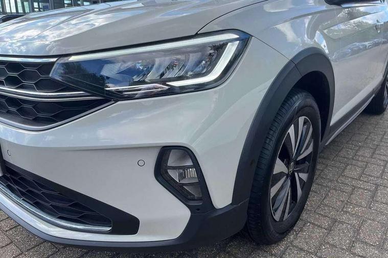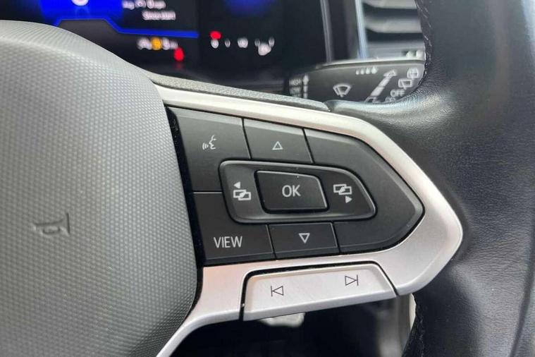 App-Connect including App-Connect Wireless, Driver alert system, e-Call (emergency call), Power Steering, Travel assist including emergency assist, Washer fluid level indicator, Wireless Charging including Bluetooth, Start-stop system with battery regeneration (recuperation - energy recovery during braking), Digital radio reception (DAB+), Diversity antenna for FM reception, WeConnect plus, Ambient lighting with logo projection, Aspherical driver's exterior mirror, Auto headlights, Body coloured bumpers, Body coloured exterior mirror housings and door handles, Electric windows, External USB type C socket and charging sockets, Front fog lamps with cornering function, Headlight range control, Heat insulating glass windscreen, LED headlamps, LED rear combination lamp, LED third brake light, Left convex exterior mirror, Power folding adjustable/heated exterior mirrors and front passenger exterior mirror lowering function, Rear fog light on one side, reversing light on both sides, Rear side wing doors, Rear wash/wipe with intermittent wipe setting, 'Slash/ Austin' Cloth upholstery, 12V socket in centre console, 2 front reading lights, 3 rear head restraints, 3 seat bench in 2nd row, Black carpets, Child seat anchor for child seat system i-Size, 2x top tether and child seat anchor in front on front passenger side, Door and side trim panels in titan black, Driver and front passenger seat height adjustment, Front centre armrest, Handbrake lever handle in leather, Height and reach adjustable steering wheel, Leather trimmed gear knob, Leather wrapped multifunction steering wheel, Luggage compartment floor, Luggage compartment light, Lumbar support for driver's and front passengers seat, Seat covers in titanium black, Single front passenger seat, Split folding backrest with centre armrest and unsplit rear seat bench, Storage compartment under front seats, Sun visors with illuminated vanity mirrors, Chrome Package - Taigo, Drivers assistance pack - Taigo, Light and Sight pack including High beam assist - Taigo, 2 x 3-point seatbelts/outer rear seats with ECE label, 3-point seat belts in front with pretensioner and height adjustment, 3-point seatbelt for centre rear seat, Driver and front passenger airbags with front passenger airbag de-activation, front side and curtain airbags, Driver and front passenger safety-optimised head restraints, Electronic stability control, Extended and predictive pedestrian/ cyclist protection, Front and rear disc brakes, Front curtain and side airbags with center airbag, Hill start assist, Manual rear child locks, Single tone horn, Tyre pressure loss indicator, Anti-theft alarm system with interior monitoring, backup horn, and towing protection, Anti-theft wheel bolts, Lava stone black gloss/matt decorative inserts in dash and front door panels, Low rolling resistance tyres,