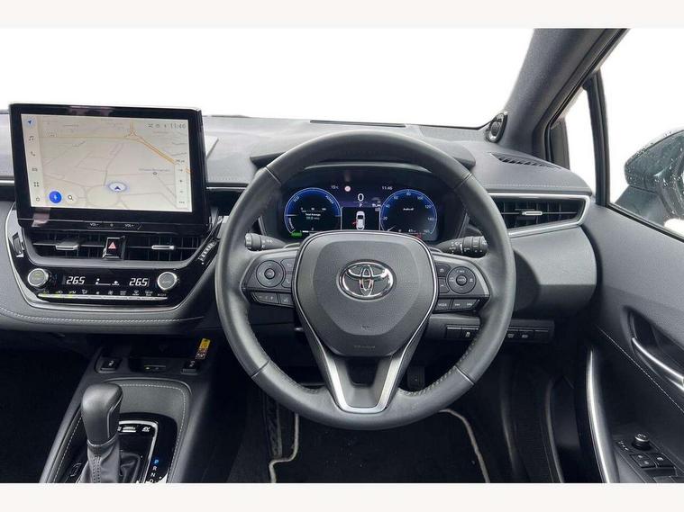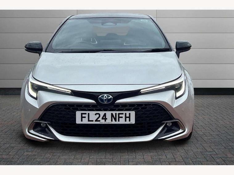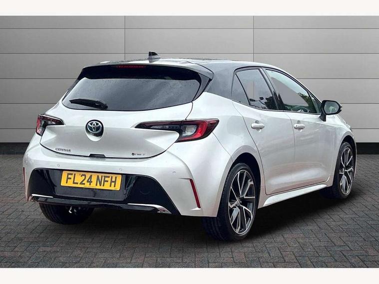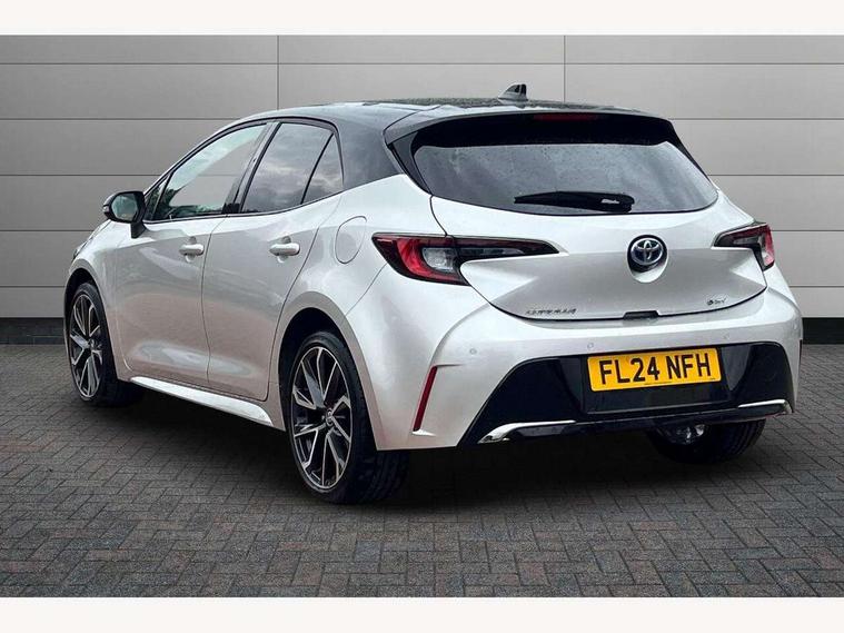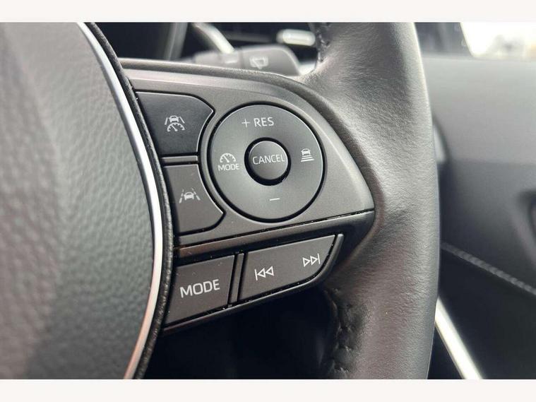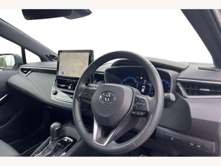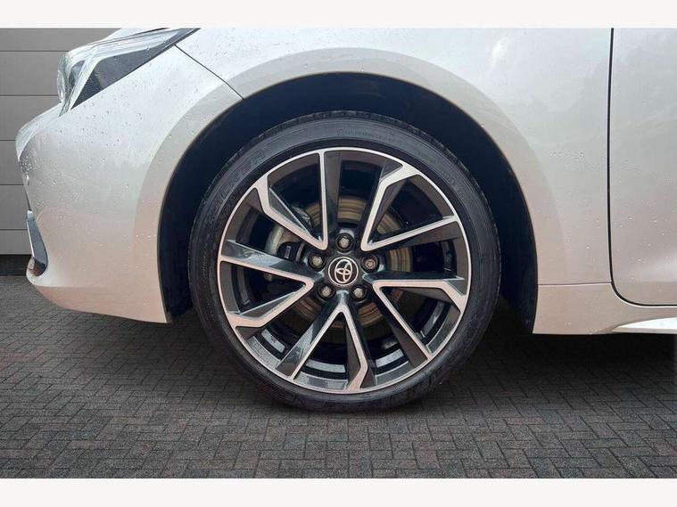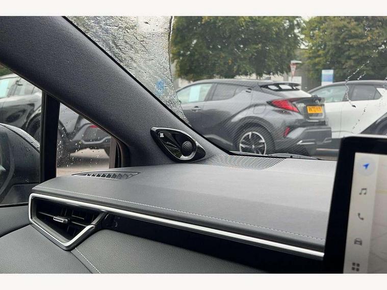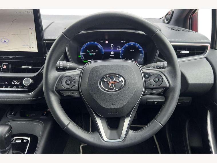 10.5" Multimedia display screen, Blind spot monitor and safe exit assist, Bluetooth telephone connectivity, Connected car functionality upgrade, tracker, remote status and e-care, Drive mode select (Eco, Normal), E-call, Electrically assisted power steering, EV drive indicator, Front and rear parking sensors with auto brake, Full Digital 12.3" TFT Digital Combimeter, Head up Display, Key reminder warning, Lane Departure Alert (LDA) switch on steering wheel, Memory on adjustable speed limiter, MyT connected services, Proactive driving assist (PDA), Rear cross traffic alert, Reversing camera, Smart entry and push button start, Smartphone integration with Apple CarPlay and wired android auto, Tailgate, Toyota remote services, Toyota smart connect navigation, Wireless charger, Gasoline particulate filter, Vehicle Stability Control (VSC), AM/FM radio, DAB Digital radio, Front USB-C in centre console, Front USB-C in dashboard, JBL Premium sound system with 8 speakers, Rear USB-C device charger, Smart voice assist/ Voice recognition, USB and Aux in connectors + 12V front outlet, Adaptive high beam system (AHS), Anti-jam protection on power windows, Auto headlight levelling system, Auto up and down function on all power windows, Automatic folding mirrors, Automatic headlights with high beam assist, Black centre and side air vents, Black metallic meshed front grille, Black toyota logo in front, Body coloured bumpers, Body coloured door mirrors, Body coloured front spoiler, Body coloured outside door handles, COROLLA alloy door scuff plates, Electrochromatic mirror, Follow me home headlights, LED daytime running lights, LED front fog lights, LED High mounted stop light, LED multi beam headlights, LED rear combi lights with LED lightguide, Noise reduction layer on windscreen, Piano black diffuser, Power adjustable heated door mirrors, Power front windows, Power rear windows, Privacy glass with UV filter, Rain sensing wipers, Rear bumper decoration with chrome plated inserts, Rear side wing doors, Rear under guard with chrome ornament, Rear window defogger, Rear window wiper, Reverse tilting door mirrors, Roof spoiler, Satin chrome insert on front air vents, Satin chrome insert on front door assist grips, Satin chrome inserts on rear passenger air vents, Shark fin antenna, Tailgate release with push button, Time adjustment on intermittent wiper, Turning signal integrated indicators in door mirrors, Unique grille pattern, Unique lower skirt, Unique side rocker with black insert, UV-filter on driver and passenger windows, 2 Shopping bag hooks in luggage compartment, 3 rear headrests, 3 seat bench in 2nd row, 3 spoke leather steering wheel with satin insert + gear knob, 4 tie down hooks in luggage compartment, 60/40 split folding rear seat, Adaptive cruise control (ACC) switch on steering wheel, Adjustable speed limiter switch on steering wheel, Audio, multimedia and telephone switches on steering wheel, Black armrest on centre console box, Black gear shift console, Boot light, Boot underfloor storage, Centre room light, Driver and front passenger personal light, Driver and passenger assist grip, Driver and passenger seatback pockets, Driver and passenger sun visor with mirror and light, Dual zone automatic air conditioning with ECO mode switch, Front and rear cup and bottle holders, Front door pockets, Front head restraints, Front passenger seat, Front sliding synthetic leather armrest, Heated seats, Illuminated entry system in room lamp, ISOFIX seat fixing (2 fixings on rear outer seats), Leather gear shift with satin chrome on gear shift console, Manual height adjustable for driver and front passenger seat, Manually tilt with sliding driver and front passenger seat, Nanoe-X air purifier, Paddle shifts, Parcel shelf, Perforated leather upholstery, Pollen filter, Power window switches with satin chrome inserts, Rear air conditioning, Rear armrest with 2 cupholders, Rear passenger coat hooks (2), Remote air conditioning, Satin chrome inside door handles, Satin chrome surround on heater control panel, Satin chrome surround on speedometer, Sliding armrest on centre console box, Slow opening glovebox with lights, Sports seats, Textile floor mats, Tilt/telescopic steering column, Voice recognition switch on steering wheel, Whiplash Injury Lessening (WIL) feature (active headrest) for seats, White ambient lighting on open tray and front cup holder, Toyota safety sense 3 pack - Corolla, 3x3 point rear seatbelts, Adjustable driver and front passenger seat belt extender to top anchor point, Anti lock braking system + Electronic brake force distribution, Brake assist function, Child locks on rear doors, Downhill Assist Control (DAC), Electronic parking brake, Emergency brake light signal (EBS), Front passenger airbag on/off switch, Front seatbelt reminder, HAC - Hill start assist control, Rear seat belt reminder, Seatbelt pretensioners and force limiters, Supplemental restraint system (SRS) 7 airbags - dual driver, dual side curtain, side impact and driver knee airbags, Traction control, Tyre pressure warning system, Acoustic vehicle alert system (AVAS), Alarm with motion sensor and immobilizer, Power passenger window lock, Remote central locking + deadlocks, Satin chrome dash trim, Soft touch texture on upper dashboard, Stitching on lower dashboard, Stitching on upper dashboard, 18" Dark grey machined face 5 double spoke alloy wheels, Tyre repair kit, Unique wheel finish with red wheel cap,