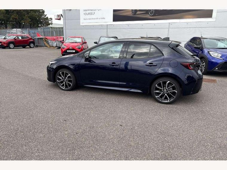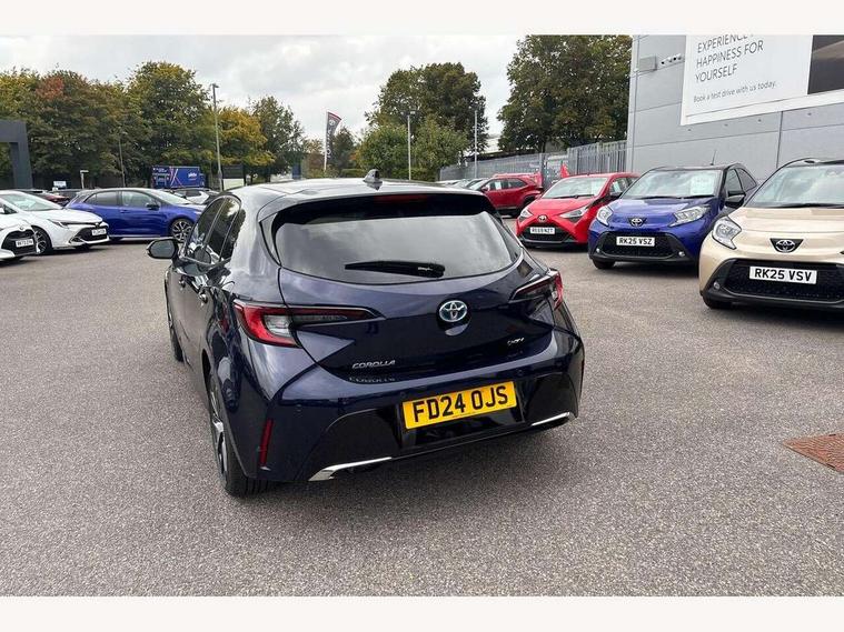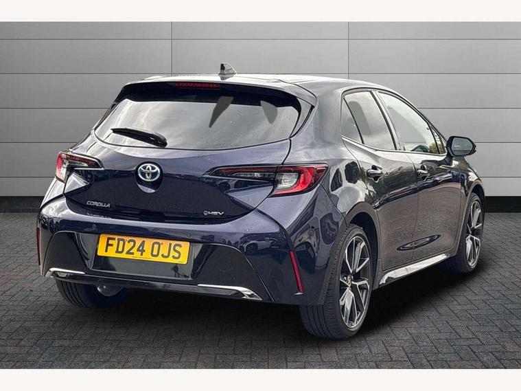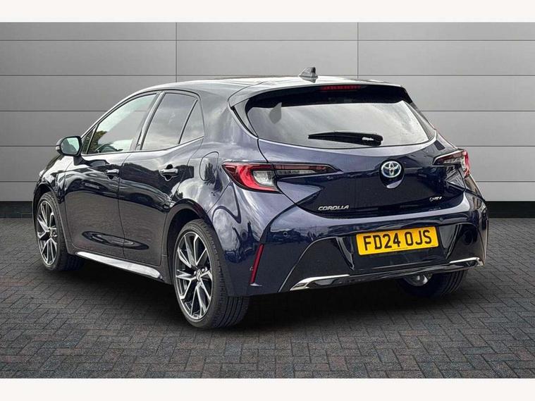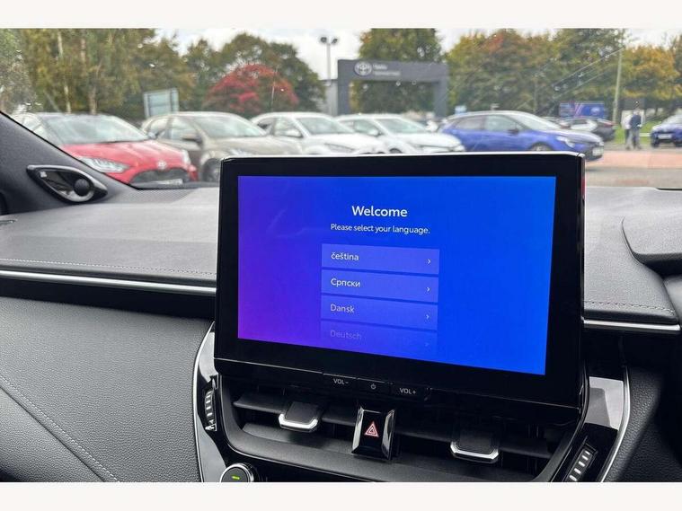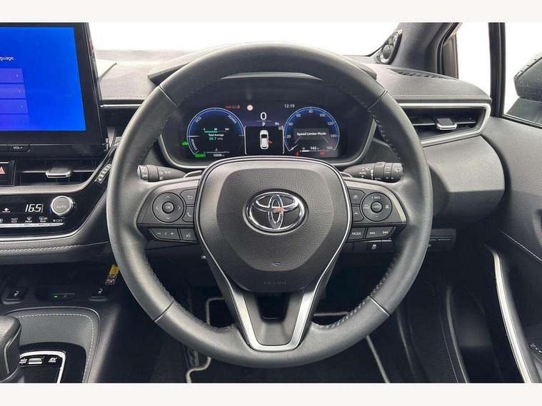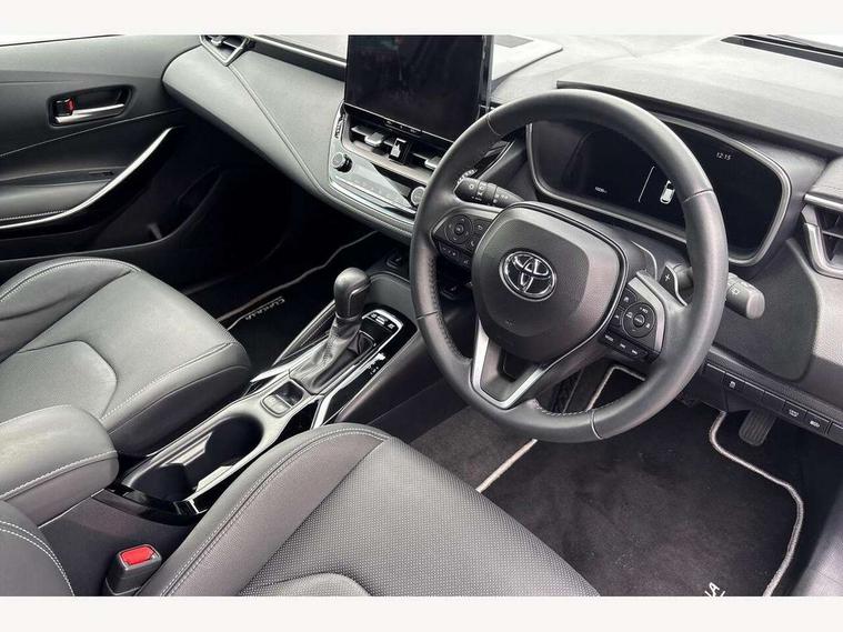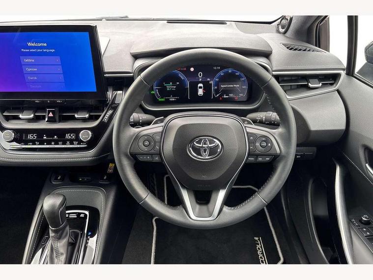 10.5" Multimedia display screen, Blind spot monitor and safe exit assist, Bluetooth telephone connectivity, Connected car functionality upgrade, tracker, remote status and e-care, Drive mode select (Eco, Normal), E-call, Electrically assisted power steering, EV drive indicator, Front and rear parking sensors with auto brake, Full Digital 12.3" TFT Digital Combimeter, Head up Display, Key reminder warning, Lane Departure Alert (LDA) switch on steering wheel, Memory on adjustable speed limiter, MyT connected services, Proactive driving assist (PDA), Rear cross traffic alert, Reversing camera, Smart entry and push button start, Smartphone integration with Apple CarPlay and wired android auto, Tailgate, Toyota remote services, Toyota smart connect navigation, Wireless charger, Gasoline particulate filter, Vehicle Stability Control (VSC), AM/FM radio, DAB Digital radio, Front USB-C in centre console, Front USB-C in dashboard, JBL Premium sound system with 8 speakers, Rear USB-C device charger, Smart voice assist/ Voice recognition, USB and Aux in connectors + 12V front outlet, Adaptive high beam system (AHS), Anti-jam protection on power windows, Auto headlight levelling system, Auto up and down function on all power windows, Automatic folding mirrors, Automatic headlights with high beam assist, Black centre and side air vents, Black metallic meshed front grille, Black toyota logo in front, Body coloured bumpers, Body coloured door mirrors, Body coloured front spoiler, Body coloured outside door handles, COROLLA alloy door scuff plates, Electrochromatic mirror, Follow me home headlights, LED daytime running lights, LED front fog lights, LED High mounted stop light, LED multi beam headlights, LED rear combi lights with LED lightguide, Noise reduction layer on windscreen, Piano black diffuser, Power adjustable heated door mirrors, Power front windows, Power rear windows, Privacy glass with UV filter, Rain sensing wipers, Rear bumper decoration with chrome plated inserts, Rear side wing doors, Rear under guard with chrome ornament, Rear window defogger, Rear window wiper, Reverse tilting door mirrors, Roof spoiler, Satin chrome insert on front air vents, Satin chrome insert on front door assist grips, Satin chrome inserts on rear passenger air vents, Shark fin antenna, Tailgate release with push button, Time adjustment on intermittent wiper, Turning signal integrated indicators in door mirrors, Unique grille pattern, Unique lower skirt, Unique side rocker with black insert, UV-filter on driver and passenger windows, 2 Shopping bag hooks in luggage compartment, 3 rear headrests, 3 seat bench in 2nd row, 3 spoke leather steering wheel with satin insert + gear knob, 4 tie down hooks in luggage compartment, 60/40 split folding rear seat, Adaptive cruise control (ACC) switch on steering wheel, Adjustable speed limiter switch on steering wheel, Audio, multimedia and telephone switches on steering wheel, Black armrest on centre console box, Black gear shift console, Boot light, Boot underfloor storage, Centre room light, Driver and front passenger personal light, Driver and passenger assist grip, Driver and passenger seatback pockets, Driver and passenger sun visor with mirror and light, Dual zone automatic air conditioning with ECO mode switch, Front and rear cup and bottle holders, Front door pockets, Front head restraints, Front passenger seat, Front sliding synthetic leather armrest, Heated seats, Illuminated entry system in room lamp, ISOFIX seat fixing (2 fixings on rear outer seats), Leather gear shift with satin chrome on gear shift console, Manual height adjustable for driver and front passenger seat, Manually tilt with sliding driver and front passenger seat, Nanoe-X air purifier, Paddle shifts, Parcel shelf, Perforated leather upholstery, Pollen filter, Power window switches with satin chrome inserts, Rear air conditioning, Rear armrest with 2 cupholders, Rear passenger coat hooks (2), Remote air conditioning, Satin chrome inside door handles, Satin chrome surround on heater control panel, Satin chrome surround on speedometer, Sliding armrest on centre console box, Slow opening glovebox with lights, Sports seats, Textile floor mats, Tilt/telescopic steering column, Voice recognition switch on steering wheel, Whiplash Injury Lessening (WIL) feature (active headrest) for seats, White ambient lighting on open tray and front cup holder, Toyota safety sense 3 pack - Corolla, 3x3 point rear seatbelts, Adjustable driver and front passenger seat belt extender to top anchor point, Anti lock braking system + Electronic brake force distribution, Brake assist function, Child locks on rear doors, Downhill Assist Control (DAC), Electronic parking brake, Emergency brake light signal (EBS), Front passenger airbag on/off switch, Front seatbelt reminder, HAC - Hill start assist control, Rear seat belt reminder, Seatbelt pretensioners and force limiters, Supplemental restraint system (SRS) 7 airbags - dual driver, dual side curtain, side impact and driver knee airbags, Traction control, Tyre pressure warning system, Acoustic vehicle alert system (AVAS), Alarm with motion sensor and immobilizer, Power passenger window lock, Remote central locking + deadlocks, Satin chrome dash trim, Soft touch texture on upper dashboard, Stitching on lower dashboard, Stitching on upper dashboard, 18" Dark grey machined face 5 double spoke alloy wheels, Tyre repair kit, Unique wheel finish with red wheel cap,