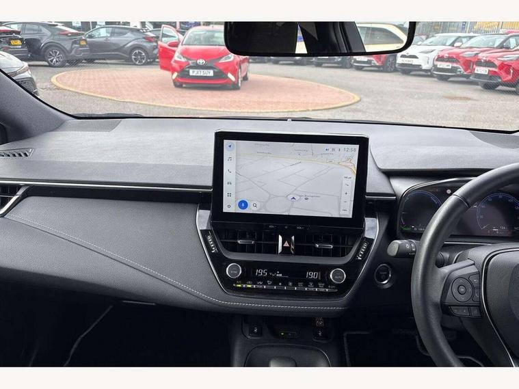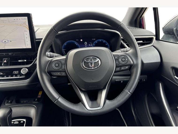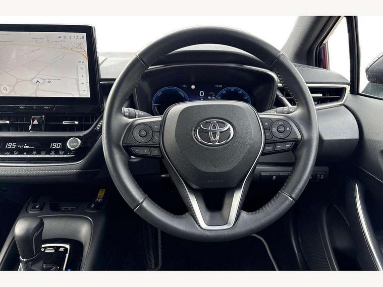 10.5" Multimedia display screen, Attention assist, Bluetooth telephone connectivity, Connected car functionality upgrade, tracker, remote status and e-care, Drive mode select (Eco, Normal), E-call, Electrically assisted power steering, EV drive indicator, Front and rear parking sensors with auto brake, Full Digital 12.3" TFT Digital Combimeter, Key reminder warning, Lane Departure Alert (LDA) switch on steering wheel, Memory on adjustable speed limiter, MyT connected services, Proactive driving assist (PDA), Reversing camera, Smart entry and push button start, Smartphone integration with Apple CarPlay and wired android auto, Tailgate, Toyota remote services, Toyota smart connect navigation, Wireless charger, Gasoline particulate filter, Vehicle Stability Control (VSC), 6 speakers, AM/FM radio, DAB Digital radio, Front USB-C in dashboard, Smart voice assist/ Voice recognition, USB and Aux in connectors + 12V front outlet, Anti-jam protection on power windows, Auto up and down function on all power windows, Automatic headlights with high beam assist, Black centre and side air vents, Black meshed front grille, Black roof rails, Black toyota logo in front, Body coloured bumpers, Body coloured door mirrors, Body coloured front spoiler, Body coloured outside door handles, Body coloured rear under guard, COROLLA alloy door scuff plates, Follow me home headlights, LED daytime running lights, LED front fog lights, LED High mounted stop light, LED multi beam headlights, LED multi reflector in headlights, LED rear combi lights with LED lightguide, Manual day/night rear view mirror, Manual headlight levelling system, New grille pattern, Noise reduction layer on front windows, Noise reduction layer on windscreen, Piano black diffuser, Power adjustable heated door mirrors, Power front windows, Power rear windows, Rain sensor, Rear side wing doors, Rear window defogger, Rear window wiper, Roof spoiler, Satin chrome insert on front air vents, Satin chrome insert on front door assist grips, Satin chrome inserts on rear passenger air vents, Shark fin antenna, Time adjustment on intermittent wiper, Turning signal integrated indicators in door mirrors, Unique lower skirt, Unique side rocker with black insert, UV-filter on driver and passenger windows, 12v power outlet - luggage side, 2 Shopping bag hooks in luggage compartment, 3 rear headrests, 3 seat bench in 2nd row, 3 spoke leather steering wheel with satin insert + gear knob, 4 tie down hooks in luggage compartment, 60/40 split folding rear seat, Adaptive cruise control (ACC) switch on steering wheel, Adjustable speed limiter switch on steering wheel, Audio, multimedia and telephone switches on steering wheel, Black armrest on centre console box, Black gear shift console, Boot light, Boot underfloor storage, Driver and front passenger personal light, Driver and passenger assist grip, Driver and passenger sun visor with mirror and light, Dual level boot floor, Dual sided deck board in boot, Dual zone automatic air conditioning with ECO mode switch, Fabric upholstery, Front and rear cup and bottle holders, Front and rear door pockets, Front head restraints, Front passenger seat, Front sliding fabric armrest, Heated seats, Illuminated entry system in room lamp, ISOFIX seat fixing (2 fixings on rear outer seats), Leather gear shift with satin chrome on gear shift console, Manual height adjustable for driver and front passenger seat, Manually tilt with sliding driver and front passenger seat, Passenger seat back pocket, Pollen filter, Power adjustable lumbar support on driver seat, Power window switches with satin chrome inserts, Rear armrest with 2 cupholders, Rear passenger coat hooks (2), Rear passenger personal lights, Remote air conditioning, Retractable tonneau cover with luggage partition net, Satin chrome inside door handles, Satin chrome surround on heater control panel, Satin chrome surround on speedometer, Side storage in boot, Sliding armrest on centre console box, Slow opening glovebox with lights, Textile floor mats, Tilt/telescopic steering column, Tonneau cover with under floor storage, Toyota easy flat system, Voice recognition switch on steering wheel, Whiplash Injury Lessening (WIL) feature (active headrest) for seats, Toyota safety sense 3 pack - Corolla, 3x3 point rear seatbelts, Adjustable driver and front passenger seat belt extender to top anchor point, Anti lock braking system + Electronic brake force distribution, Brake assist function, Child locks on rear doors, Downhill Assist Control (DAC), Electronic parking brake, Emergency brake light signal (EBS), Front passenger airbag on/off switch, Front seatbelt reminder, HAC - Hill start assist control, Rear seat belt reminder, Seatbelt pretensioners and force limiters, Supplemental restraint system (SRS) 7 airbags - dual driver, dual side curtain, side impact and driver knee airbags, Traction control, Tyre pressure warning system, Acoustic vehicle alert system (AVAS), Alarm with motion sensor and immobilizer, Power passenger window lock, Remote central locking + deadlocks, Satin chrome dash trim, Soft touch texture on upper dashboard, Stitching on lower dashboard, 16" 5 double spoke alloy wheels, Tyre repair kit, Unique wheel finish with red wheel cap,
