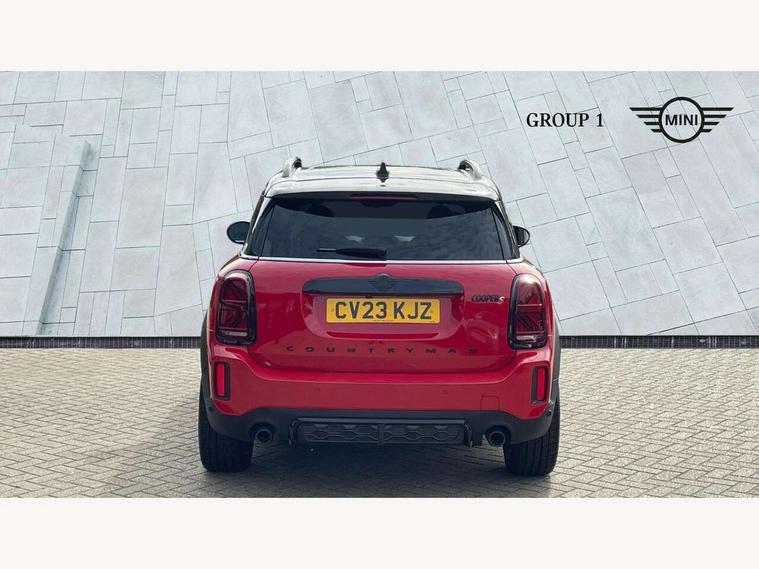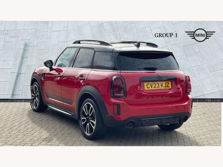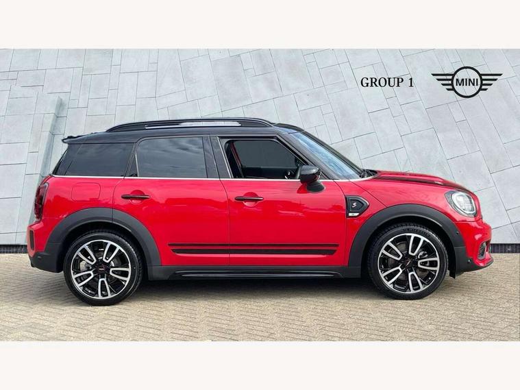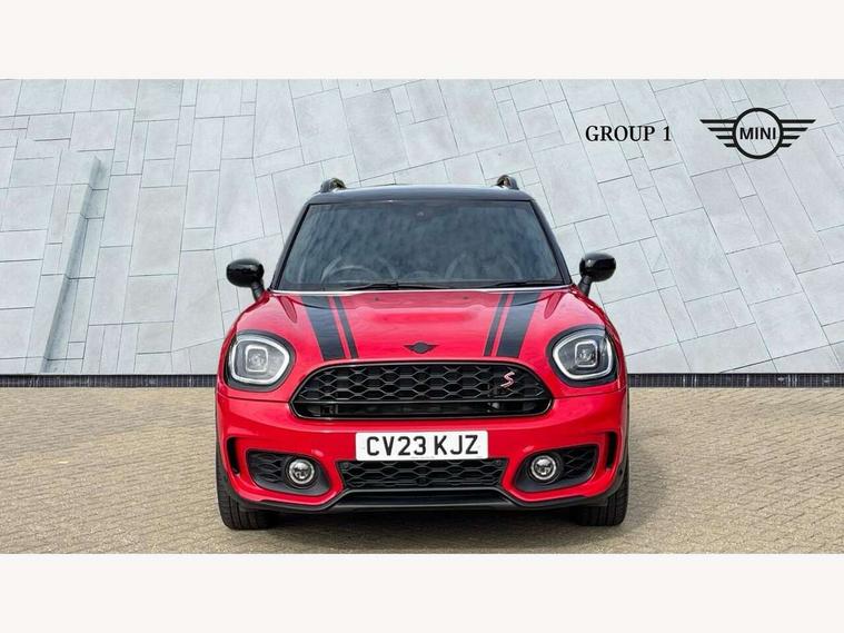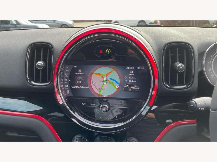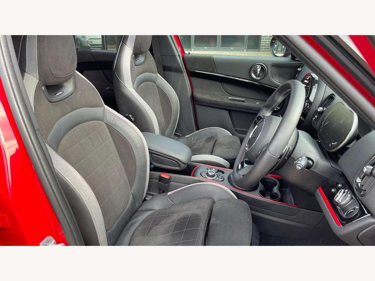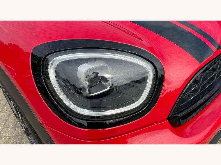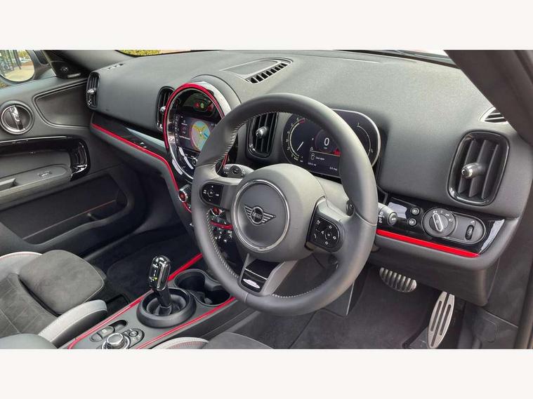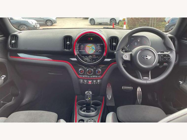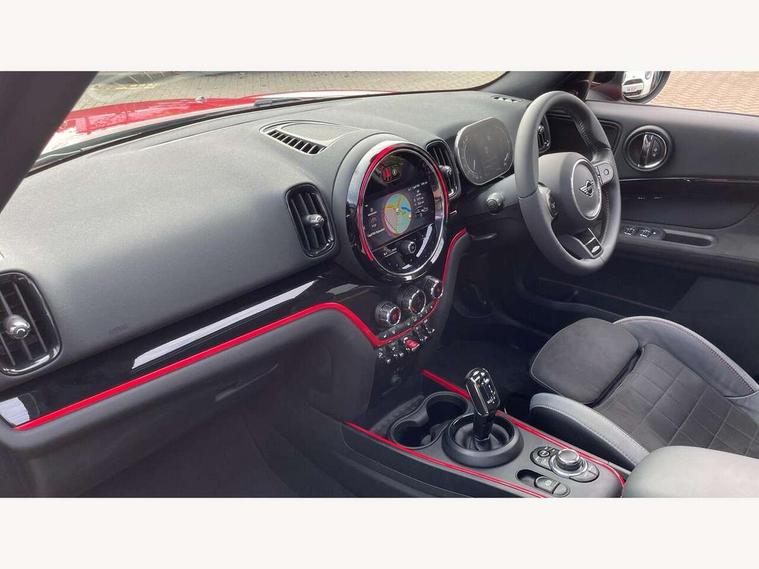 Active Guard incl speed limiting and lane departure functions with auto steering, and front collision warning with brake intervention, Automatic start/stop function with brake energy recuperation, Compatible mobile phone bluetooth with audio streaming, Cruise control with brake assist, Electro-mechanical speed dependant steering assistance, Instrument cluster, MINI Driving Modes - centre toggle switch to control driving setting (sport, mid and green), Mini E-call, On board computer, Double Vanos system, Fully variable valve control, High precision injection, Performance Control, Steptronic sport transmission with double clutch and steering wheel paddles, FM tuner and DAB digital radio, 3rd brake light, Bonnet scoop, Chrome fuel filler cap, Day time driving lights, Dynamic brake lights, Electric windows, Heated rear window, Heated windscreen washer jets, John Cooper Works - aerodynamic kit (front and rear apron, spoiler), front and rear sport bumpers and part-painted side sills with door sill finishers, John Cooper Works Logo, LED fog lights, Metal door sill strips with Cooper S imprint, Model logo, Model logo on Tailgate, Rain sensor with auto headlights, Rear fog lights, Rear side wing doors, Rear window wiper, Side scuttle panel with integrated indicator, Split rear doors, Sun/heat protection glass, White indicator lenses, 12V socket in centre console, 3 seat bench in 2nd row, 360L luggage compartment capacity, 4 lashing eyes in luggage compartment, 40:20:40 split folding rear seats, Anthracite headlining with grab handles and clothes hooks, Chrome interior highlights, Colour line - Carbon black, Cupholders, English handbook, Front headrests, Glove compartment, Height and length steering column adjustment, Interior lighting with 12 basic colours selectable via toggle switch in roof, Isofix rear child seat preparation, LED reading lights, vanity mirror lights, front foot well light and spotlight on front seats, Mini John Cooper Works leather gearshift lever and handbrake gaiters, Multifunction steering wheel, Nappa leather steering wheel with MINI Yours logo, Rear headrests, Single front passenger seat, Stainless steel pedals and foot rest, Storage compartments in doors, Sunvisors with vanity mirrors, Excitement pack - Countryman, Navigation pack - Countryman, Piano black exterior pack - Countryman Cooper S/SD/SE/Boardwalk, 2 tone horn, 3 point seatbelts on all seats, 6 Airbags - front, side, head and seat belt tensioners, Anti-lock braking system (ABS), DSC - Dynamic Stability Control, Electronic handbrake, Front and rear disc brakes, Hill start assist, Manual rear child locks, Tyre pressure monitoring system, Alarm system with tilt sensor, monitoring doors, bonnet interior and tailgate, Auto drive away locking, Deadlocking function, Electronic vehicle immobiliser, Locking wheel bolts, Start/stop toggle with keyless go, Piano black JCW interior trim, Tool kit,