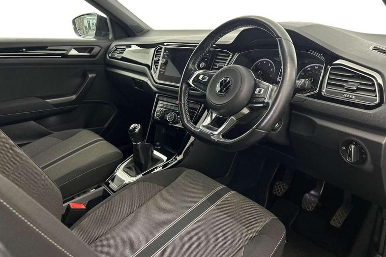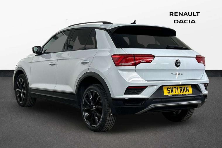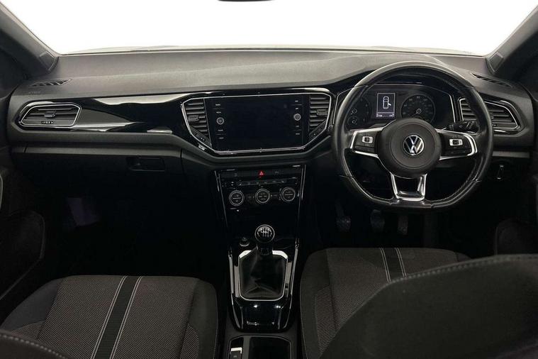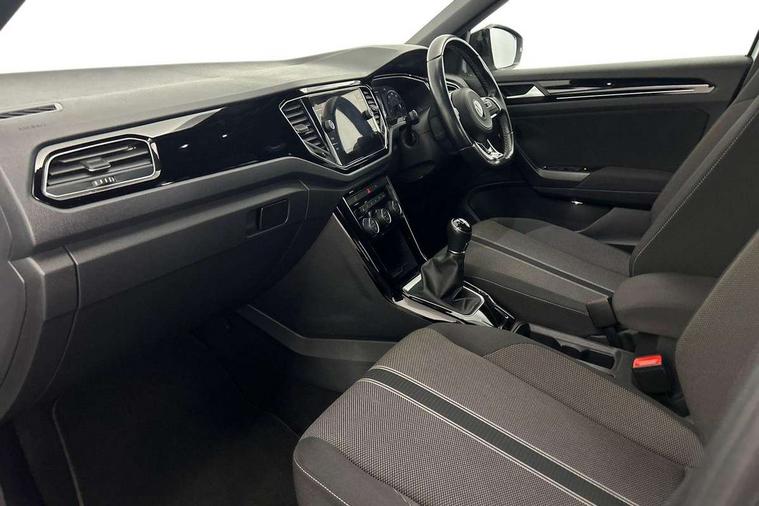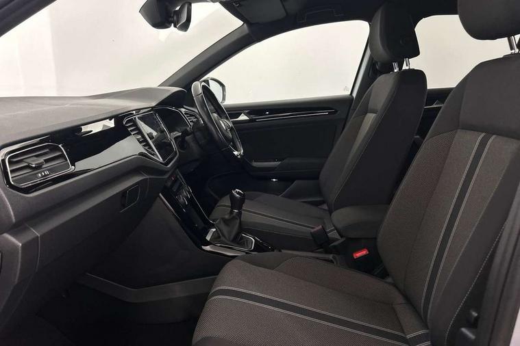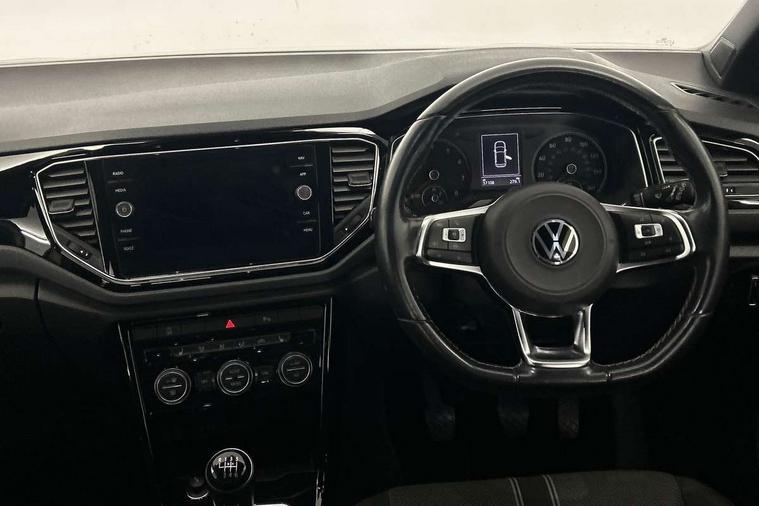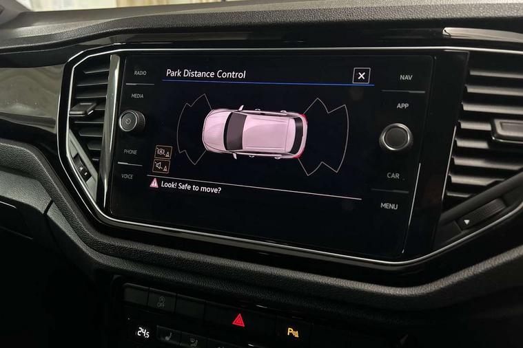 'Lights On' Reminder warning buzzer, Adaptive cruise control, Bluetooth telephone and audio connection for compatible devices, Car information display, Driver tips and journey analysis, Emergency call service, Lane assist with warning text instrument cluster, Modified key software - reduce switch off time for key status change to Long no motion, Multifunction camera, Multifunction computer with visual gear change recommendation for fuel consumption, Service interval indicator, Think blue trainer driver tips and journey analysis, Warning sound and light for doors and tailgate open, Warning sound and light for front seatbelts unfastened, Wireless app connect for apple carPlay, Battery regeneration during braking, Start/stop function with battery regeneration, DAB Digital radio, Diversity antenna for FM reception, Multi device interface (MDI) with USB connection, Music playback - MP3, WMA and AAC files, Premium USB cable in choice of either Apple or Android smartphone compatibility, SD card slot, Simultaneous pairing of 2 compatible mobile devices, Single CD player, glovebox mounted, SMS functionality - read, compose and send SMS messages using touch-screen display, Storage compartment with longitudinal and height adjustable in armrest and two rear air vents, Title and cover art display, USB-C Interface and USB charging socket, Auto dimming interior rear view mirror, Automatic coming/leaving home lighting function and daytime running lights, Automatic hazard lights activation under emergency braking, Black grained lower door protectors, Black grained wheel arches, Black roof rails, Body colour door handles, Body colour sports bumpers with silver metallic underbody fascia, Body coloured bumpers and radiator grille with chrome trim and front fog lamps with chrome bezel, Chrome trim on upper and lower radiator grille, Dusk sensor, Electrically foldable, adjustable and heated door mirrors with puddle lights and reverse activated kerb-view adjustment on passenger's door mirror, Exhaust tailpipes in black, External USB type C socket and charging sockets, Front and rear electric windows, Front windscreen wiper with intermittent wipe and 4 position delay, Fully galvanised body, Heated rear window, High level 3rd brake light, LED headlamps with automatic range adjustment and unique signature LED separate daytime running lights, LED rear number plate lights, LED tail lamp rear comination lamps, Privacy glass, Rain sensor, Rear tinted glass from B-pillar backwards approx 65% tinted, Rear wash/wipe with intermittent wipe setting, Trim strips on grille and vehicle side, Volkswagen roundel, 12V socket in centre console storage area, 3 rear head restraints, 4 load lashing points in luggage compartment, Black roof lining, Climate control - 2 zone electronic air conditioning with automatic air recirculation and allergy filter, Door and side trim panel, Drawer under drivers seat, Front centre armrest, Front cupholders x 2, Front seat back storage pockets, Glovebox, Height adjustable front seats, Height/reach adjust steering wheel, Instrument lighting, white adjustable panel illumination, Interior light in footwell, Isofix easy fit child seat preparation for 2 outer rear seats, LED interior light with switch off delay/dimmer and 2 front/rear LED reading lights, Load through provision with single cup holder when folded down, Luggage compartment cover, removable, Luggage compartment lighting, Split folding rear seat backrests with centre armrest, Storage compartment in left and right luggage area, Storage compartment in rear doors, Storage compartments in driver and front passenger doors, Sunvisors with illuminated vanity mirrors, Three spoke multi-function leather trimmed steering wheel and gearknob, White ambient lighting, Black decal on C-pillar pack - T-Roc, 3 rear three point seatbelts, ABS, Curtain airbags, Driver and front passenger safety-optimised head restraints, Drivers and front passengers airbags with passengers deactivation switch, Drivers seatbelt reminder, Electronic parking brake with auto hold, Electronic stability control (ESC) includes ASR, EDL, EDTC and trailer stabilisation function, Front assist with city emergency braking and pedestrian monitoring, Front seat side impact airbags, Predictive pedestrian protection, Rigid safety cell with front and rear crumple zones, Single tone horn, Three point height adjust front seatbelts + pretensioners, Tyre pressure loss indicator, Ventilated front and rear disc brakes, Volkswagen roadside assistance, Alarm with remote central locking and interior protection, Electronic engine immobiliser, Remote central locking with SAFELOCK, radio remote control with 2 remote control folding keys, Black decorative trims, Piano black decorative inserts in dash, centre console and door panel, 18" Arlo black diamond turned surface alloy wheels with low rolling resistance tyres and anti theft wheel bolts,