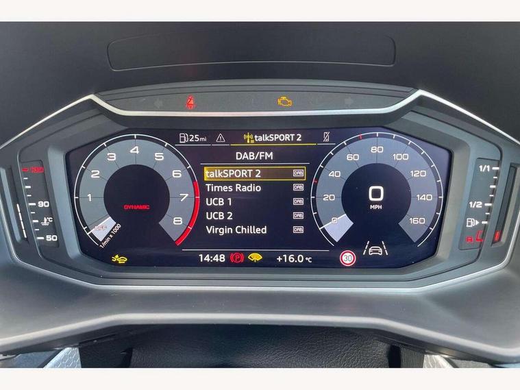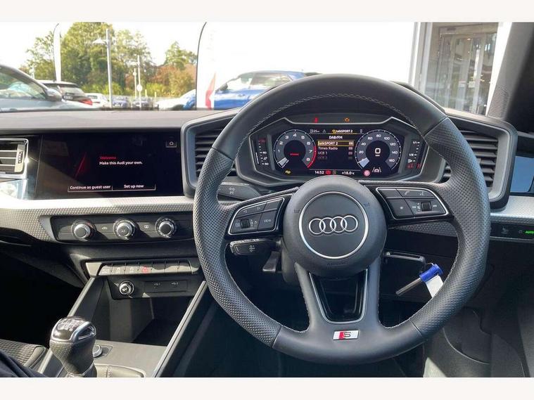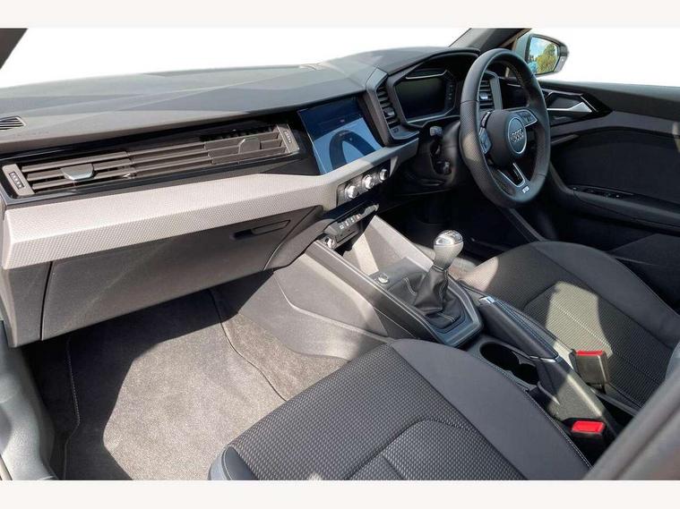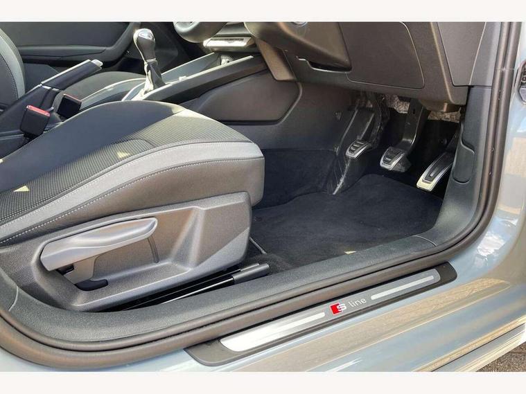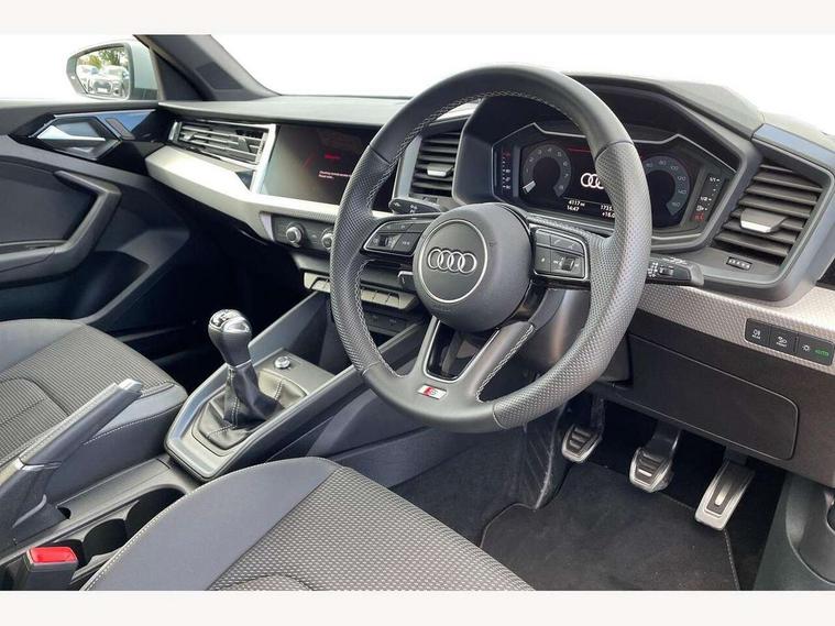 10.25" Digital instrument cluster display classis style instrument dials + speed, odometer, time, outside temperature, telephone menu + fuel level warning, Advanced driver attention and drowsiness monitor, Audi connect emergency call and service, Audi drive select, Audi remote connect and control, Audi smartphone interface, Bluetooth interface, Camera based traffic sign recognition, Cruise control, Driver's information system, Electromechanical power steering, Lane departure warning system, Rear parking sensor, Service interval indicator, Speed limiter, Start stop system with recuperation, Voice control system, Washer fluid level indicator, Sports suspension, 2 x USB type C connection points, 6 loudspeakers, DAB Digital radio, MMI radio plus with 10.1" colour MMI display screen and MMI touch, Auto dimming rear view mirror, Body coloured door mirrors, Door sill trims with aluminium inlays and S line logo in front, Electric front and rear windows, Electrically adjustable, heated, folding door mirrors with integrated LED side indicator, Front side air inlets in grained matt black and C frame in anthracite black, Headlight cleaning system, Heat insulating glass windscreen and side windows, Heated rear windscreen, High level LED brake light, LED daytime running lights, LED headlights with range control LED rear lights + dynamic rear indicators, Light and rain sensors, Privacy glass, Radiator grille and rear diffuser in matt anthracite black, Radiator protective grille frame in matt aluminium silver, Rear fog lights, Rear side wing doors, Rear wiper, S line badges on front wings, Side front spoiler lips in grained matt black, 12V socket in centre console with two cup holders, 3 rear seats with headrests, 3 seat bench in 2nd row, 3 spoke leather multi-function plus steering wheel features S badging and grips in perforated leather with contrast stitching, 40:60 Split folding rear seat or fully collapsed, Black cloth headlining, Front and rear velour black floor mats with contrast stitching in fine silver, Front head restraints, Front passenger seat, Height and reach adjustable steering wheel, Interior lighting includes roof module, front and rear reading lights and right luggage compartment lighting, ISOFIX child seat mounting for front passenger and outer rear seats including top tether attachment point of outer rear seats, Leather gear knob with aluminium trim, Leather handbrake grip, Manual air conditioning, Manual height adjustable for driver and front passenger seat, Manually adjustable lumbar support in front seats, Stainless steel pedals, Ambient lighting package - A1, Luggage compartment pack - A1, S line exterior styling pack - A1 Sportback, 3x3 point rear seatbelts, Audi pre-sense front with pedestrain and cyclist recognition, Brake assist function, Driver and front passenger airbag with front side and head airbags, Electronic Stability Control including ABS, EBD, ASR and EDL, Front passenger airbag deactivation switch, Hill hold assist, Manual rear child locks, Seatbelt height adjustment for front seats, Seatbelt monitoring, Tyre pressure loss indicator, Warning triangle and first aid kit, Anti theft alarm, Anti theft wheel bolts, Immobiliser, Remote control key with safelock, Aluminium trim for control switches, air vents and digital instrument cluster, Black dashboard, Silver grey inlays polygon structure in diamond paint finish, Structured grey accent surfaces insert of air vents, interior door handle recesses and centre console in quartz paint finish,