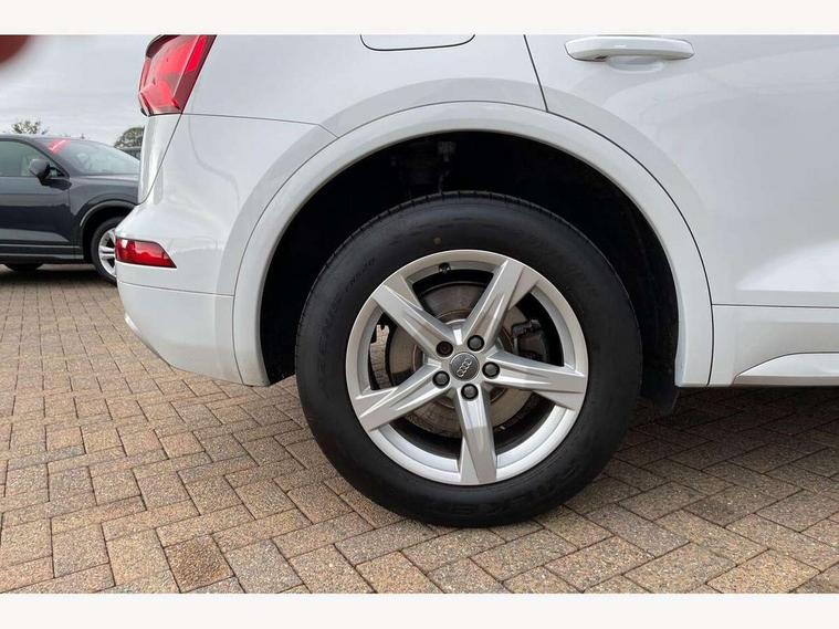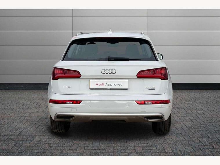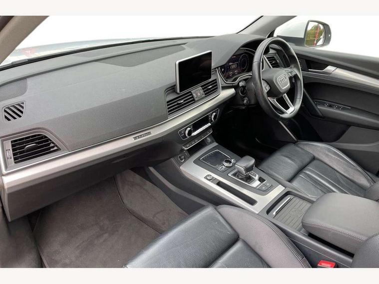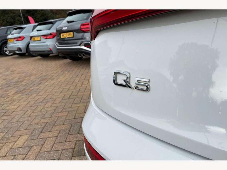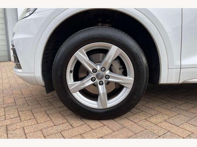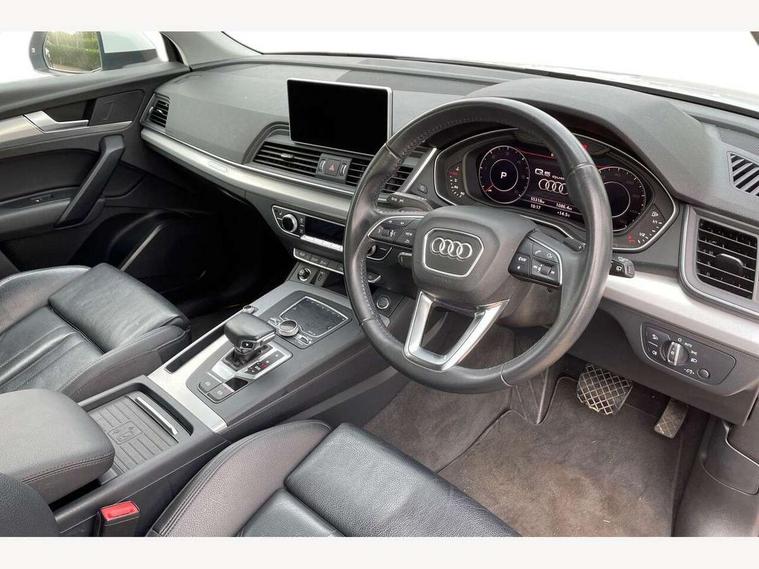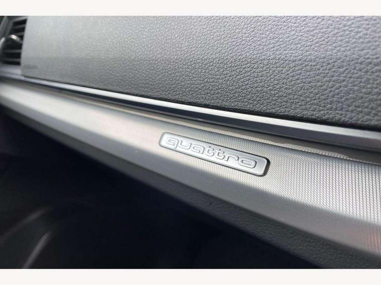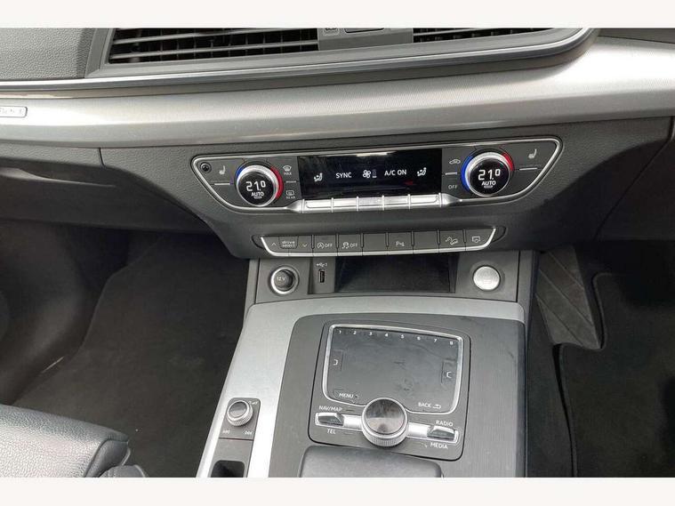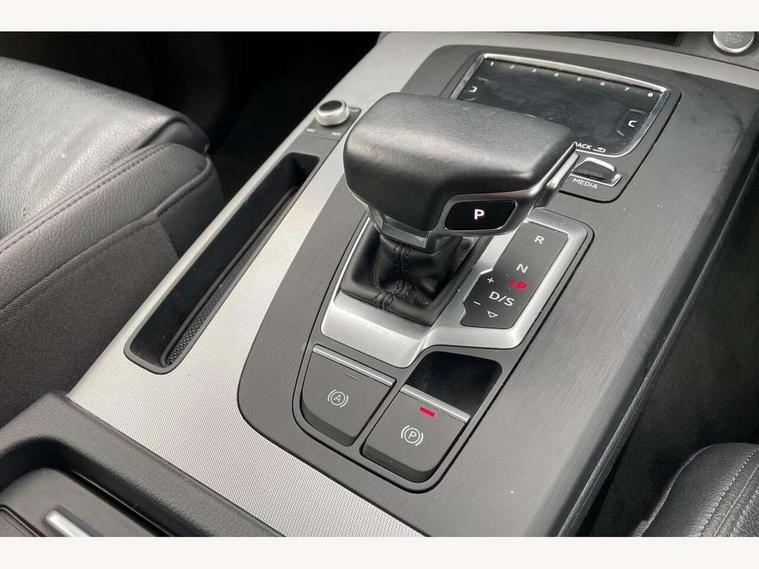 7" Colour driver information system, Audi drive select, Audi parking system plus with front and rear sensors, Audi smartphone interface, Automatic start/stop system, Electro - mechanical power assisted steering, MMI Navigation, Mobile telephone preparation - bluetooth interface, Power tailgate, Service interval indicator, Voice control system, Diesel particulate filter, 2x SD card slot, CD player, DAB Digital radio, MMI radio plus with 7" colour MMI screen and MMI controller, Acoustic windscreen, Air inlets in matt titanium black with blades in matt aluminium silver, Aluminium roof rails, Auto dimming rear view mirror, Automatic headlight levelling, Body colour bumpers, Body colour door mirrors, Chrome exhaust tailpipe, Front and rear electric windows, Light and rain sensor for auto activation of lights and windscreen wipers, Loading sill protector in stainless steel, Matt selenite silver underbody protection, Rear diffuser strip in selenite silver, Rear spoiler, Rear wiper, Side skirts in matt selenite silver, Twilight grey matt radiator grille with matt aluminium horizontal chrome struts, 2 x USB charging port with aux input socket, 3 rear headrests, 3 Spoke leather multi function steering wheel, 3 zone climate control, 40:20:40 split folding rear seat with rear centre armrest, Cloth headlining, Door sills trims with aluminium inlays, Front centre armrest, Front/rear floor mats, Height adjustable front head restraints, ISOFIX child seat mounting and top tether, Luggage compartment carpet, Removable luggage compartment floor, Sunvisors with vanity mirrors, Tool kit, Trunk roller cover, High gloss pack - Q5, Non Smokers pack, 3 point seatbelts on all seats, 6 airbags - Driver, front passenger, curtain and side airbags, Electromechanical parking brake, Electronic stabilisation control including ABS, ASR and EDL, Front passenger airbag deactivation, Hill descent control, Hill hold assist, Multi collision brake assist, Pop-up bonnet for pedestrian protection, Pre sense city, Seat belt force limiter, Seatbelt monitoring, Tyre pressure warning, Warning triangle and first aid kit, Anti theft alarm, Anti-theft wheel bolts, Keyless Go access/ignition system, Remote central locking, Aluminium rhombus inlay,