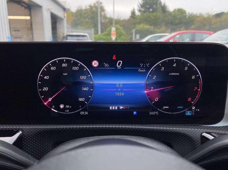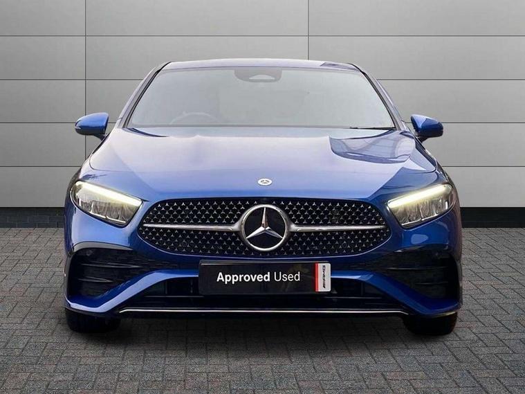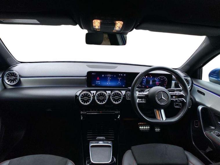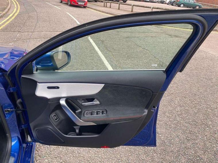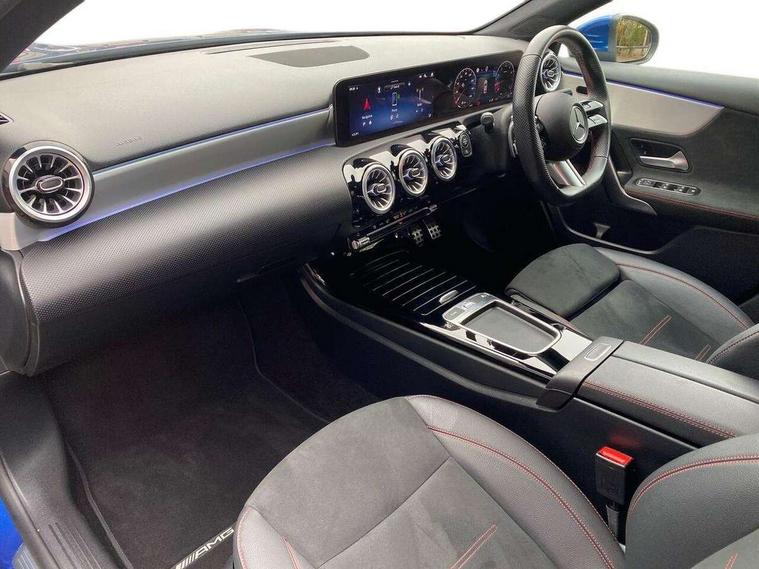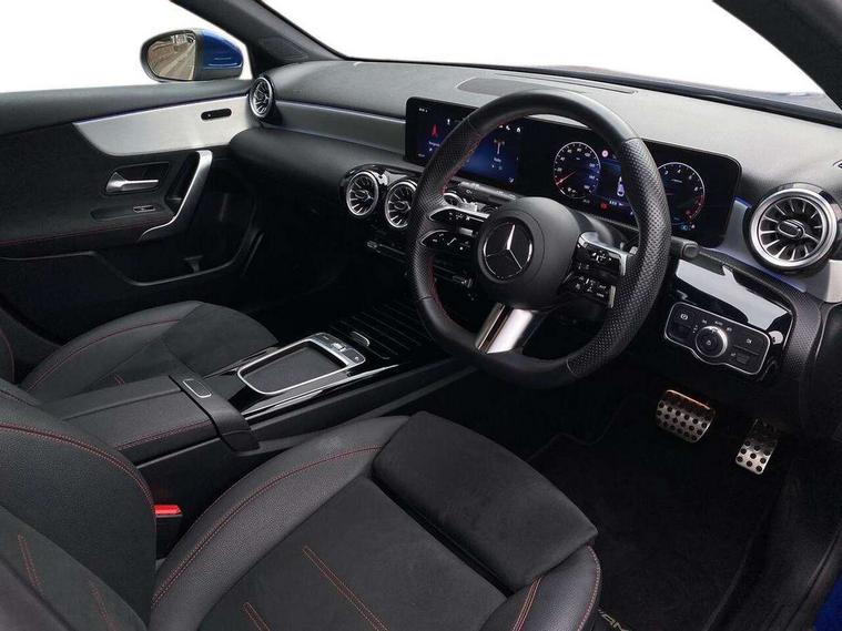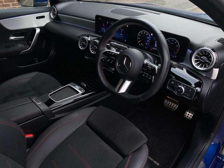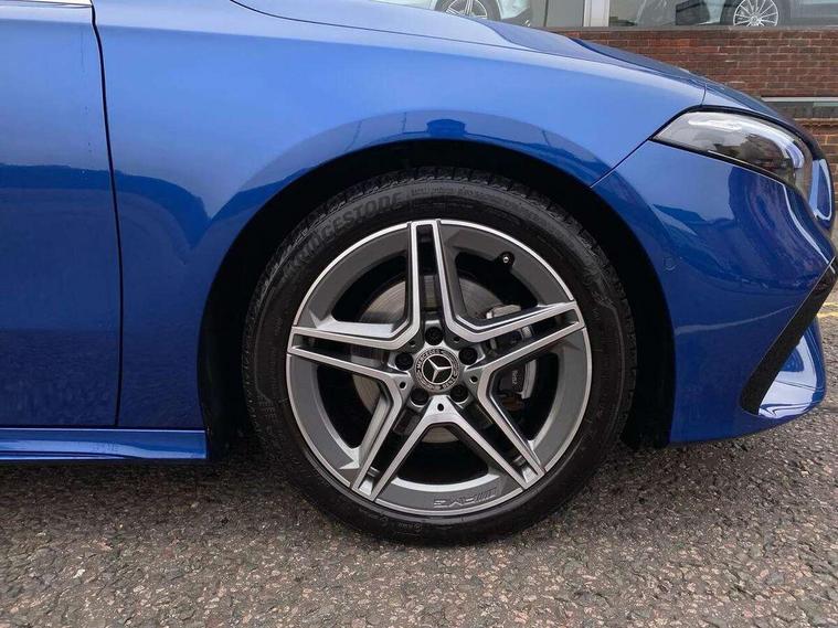 10.25 inch touchscreen central media display, 10.25" Digital instrument cluster display screen, Attention assist, Blind spot assist, Brake pad wear indicator warning light, Car wash mode, Cruise control + speed limiter, Direct steering, Direction indicators with lane change function, Dual bluetooth interfaces, DYNAMIC SELECT with a choice of driving modes (ECO, Comfort, Sport and Individual), ECO start/stop function, Engine start/stop button, Fingerprint scanner, Fluid level warning indicator for fuel, oil, coolant and washer fluid, Fluorescent jacket for driver, Hard-disk navigation, Hey Mercedes Voice activation, Lamp failure indicator, Lane keeping system, Mercedes me connect including emergency call system, accident recovery, breakdown and maintenance management, Mercedes me remote services, Outside temperature gauge, Owners manual in English, Pre-installation of private car share, Preinstallation for Mercedes Benz link, Remote boot closing, Service indicator (ASSYST), Smartphone integration with Apple CarPlay and Android auto, Speed limit assist, Speed sensitive power steering, Trip computer in multifunction display with current consumption indicator, Wireless charging, Lowered comfort suspension, DAB Digital radio, MBUX multimedia system, Mercedes Benz sound system (100 W) with 6 speakers, 4 Electric Front and Rear windows, Adaptive brake lights, AMG body styling - AMG front apron with front splitter and AMG rear apron and visible exhaust tailpipe trim elements, Body colour bumpers, Body colour door handles with chrome inserts, Body colour side skirt, Body coloured door mirrors, Chrome beltline strips, Diamond radiator grille with pins in fine star pattern, Electric adjustable and heated door mirrors with integrated LED side indicators, Exhaust system with 2 visible tailpipe trim elements and rear apron, Headlamp assist automatic headlamp activation, Heat insulating dark tinted rear and rear side windows, Heated glass rear windscreen + timer control, LED High Performance headlamps including integral LED daytime running lamps and adaptive highbeam assist, LED tail lamp, Privacy glass, Radio aerial, Rain sensing windscreen wipers with two sensitivity settings, Rear boot, Rear fog lights, Rear side wing doors, Third brake light featuring LED technology, Window line trim strip in chrome, 3 seat bench in 2nd row, 3 Spoke flat bottom leather multi function steering wheel with perforated leather in grip area, 4 way lumbar support, 40:20:40 split folding rear seats, Air conditioning - One zone thermatic automatic climate control with automatically controlled air distribution, AMG floor mats, Automatic child seat recognition sensor, Black air vents with surround in silver chrome, Black roof lining, Brushed stainless steel sports pedals with rubber studs, Front centre armrest with stowage, Front door sills with Mercedes Benz lettering, Front seat backs luggage nets, Galvanished gear shift paddles on steering wheel, Heated front seats, Height/reach adjustable steering column, Interior lighting - 64 colour Ambient lighting, Interior mirror with reading lamps in black and frameless, Rear armrest with 2 cupholders, Seat occupancy sensor for front passenger seat, Single front passenger seat, Sports seats with adjustable head restraints, Stowage compartment in centre console with retractable cover, Sunvisors with illuminated vanity mirrors, Twin front cupholders, Keyless go comfort pack - A Class, Light and sight package - A Class, Mirror package - A Class, Parking pack with 180 degree view - A Class, Seat comfort pack - A Class, USB pack plus - A Class, 3 rear 3 point seatbelts, ABS with Brake Assist, Active bonnet, Active brake assist includes forward collision warning system with autonomous braking, Adaptive brake assist with hold function and hill start assist, Black seatbelts, Bonnet with power domes, Childproof locks manually operated for rear doors and electrically operated for rear power windows, Crash responsive emergency lighting, Driver and passenger head and side airbags, Drivers knee airbag, Dual stage driver/passenger airbags, Electronic parking brake, ESP curve dynamic assist, ESP with ASR, Front and rear seatbelt reminder, ISOFIX and top tether child seat fixing points in two outer rear seats, Tyre pressure monitoring system, Warning triangle and first aid kit, Window airbags, Alarm system/interior protection/immobiliser, Guard 360 degree vehicle protection, Remote central locking and crash sensor with emergency opening function, Light longitudinal grain aluminium trim, 18" AMG 5 twin spoke light alloy wheels, aerodynamically optimised, painted in black with high sheen finish, Summer tyres, Tirefit sealant kit,