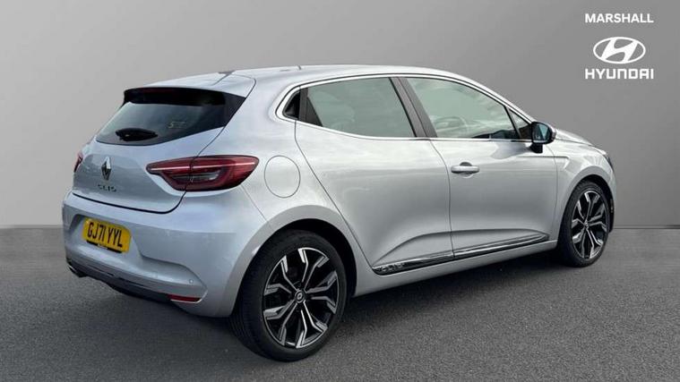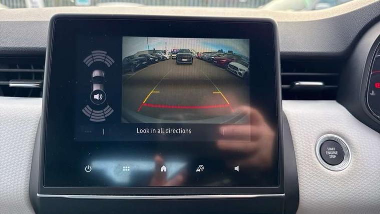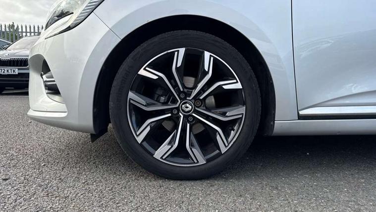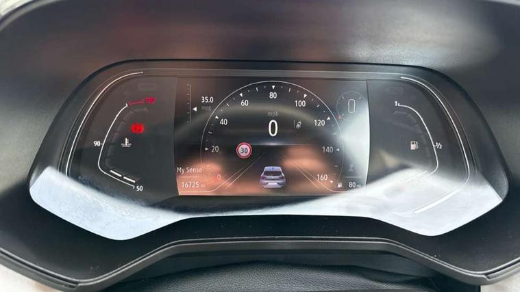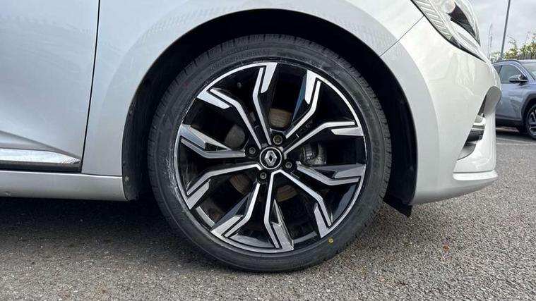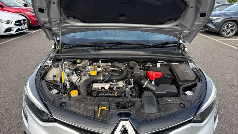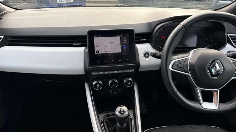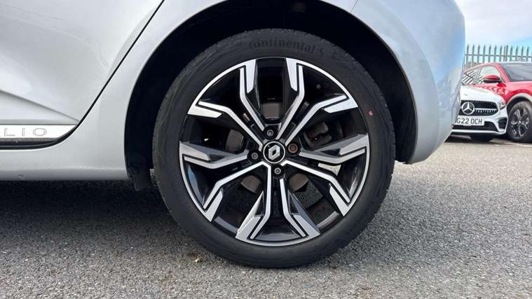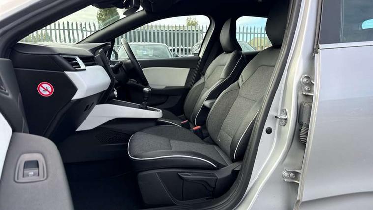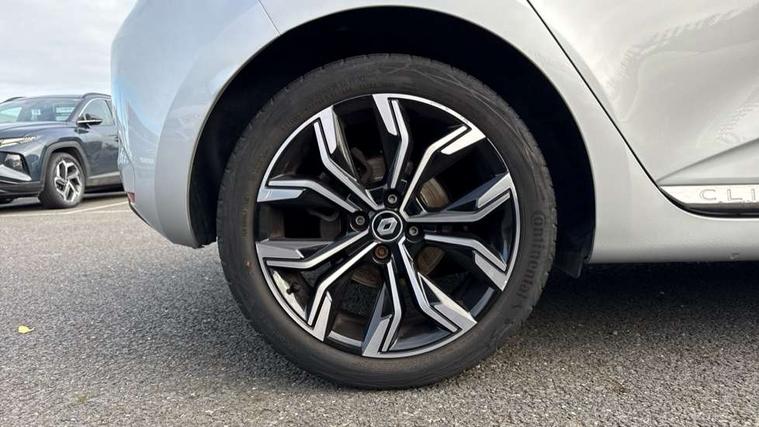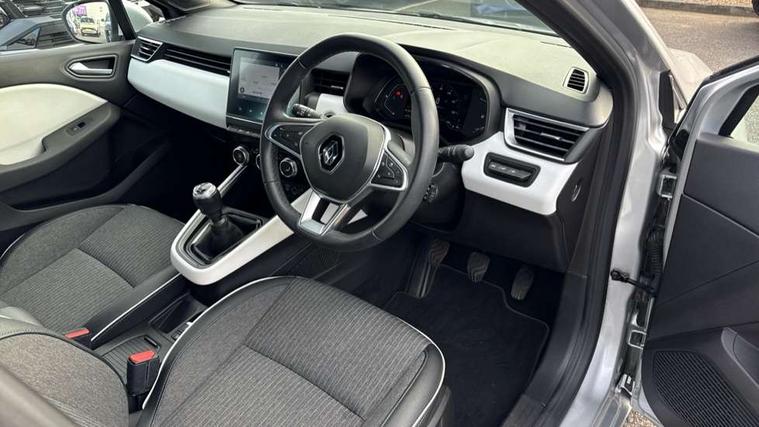 7" TFT colour instrumental display, Cruise control + speed limiter, E-call, Easy link navigation with 7" touchscreen+4x20W amplifier+FM DAB double tuner, sound auditorium, 2xUSB/1xjack/bluetooth, smartphone integration plus, Eco mode driving function, Gear change indicator, Lane departure warning system, Lane keep assist, Over speed prevention, Rear parking sensors, Traffic sign recognition, Trip computer, Variable assistance electric PAS, Auto dimming rear view mirror, Auto light control and rain sensing wiper, Automatic headlights, Body colour door handles, Body colour door mirrors, Body coloured bumpers, Body coloured rear spoiler, Chrome exhaust tailpipe, Chrome front grille, Chrome insert on lower side doors with Clio embossing, Drivers one touch window with anti-pinch feature, Electric adjustable/heated/folding door mirrors, Electric front windows, Electric rear windows, Exterior rear hidden door handles, Full LED front and rear headlamps integrating daytime running lights at the front and rear, LED front fog lights, LED Roof light, Rear fog lights, Rear side wing doors, Rear wiper, Tinted rear windows, Variable speed on front windscreen wipers, 12V Accessory socket, 3 rear height adjustable headrests, 3 seat bench in 2nd row, 3D Fabric velvet upholstery, 6.2L front glovebox, 60/40 split rear seats, Air recirculation control, Auto climate control, Black headlining, Dark interior roof lining, Driver's seat height adjustment, Front cupholders, Front door storage bin, Height adjustable front headrests, Height/reach adjust steering wheel, Isofix system on outer rear seats, Leather steering wheel, Multi function steering wheel, Pollen filter, Single front passenger seat, System for Restraint and Protection SRP-front seats, Vision grey interior detail includes light grey on doors, lower part of dash and gear stick, Parking Pack - Clio, Storage pack - Clio, 3 point seatbelts on all rear seats, ABS+EBD+Brake assist, Automatic emergency braking system, Curtain airbags, Distance warning alert, Driver and passenger front and side airbag deactivation, Driver/Front Passenger airbags, ESC - Electronic Stability Control + traction control, Front side airbags(head+thorax), Height adjustable driver's seatbelt, Hill start assist, Seatbelt warning, Tyre pressure warning, Central door locking, Deadlocking system, Hands free key card with push button, start and stop function, Locking fuel filler cap, RAID (Renault Anti-Intruder Device) with automatic door locking, Rear side wing door and window child locking function (front driver door control panel), Remote central locking with thatcham approved immobiliser, Grey dashboard trim, 17" Viva stella diamond cut grey alloy wheels,