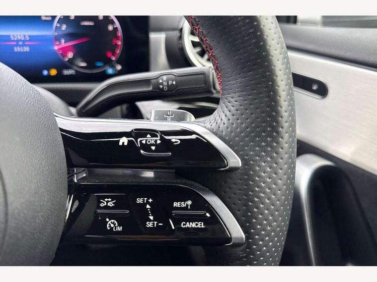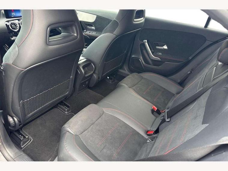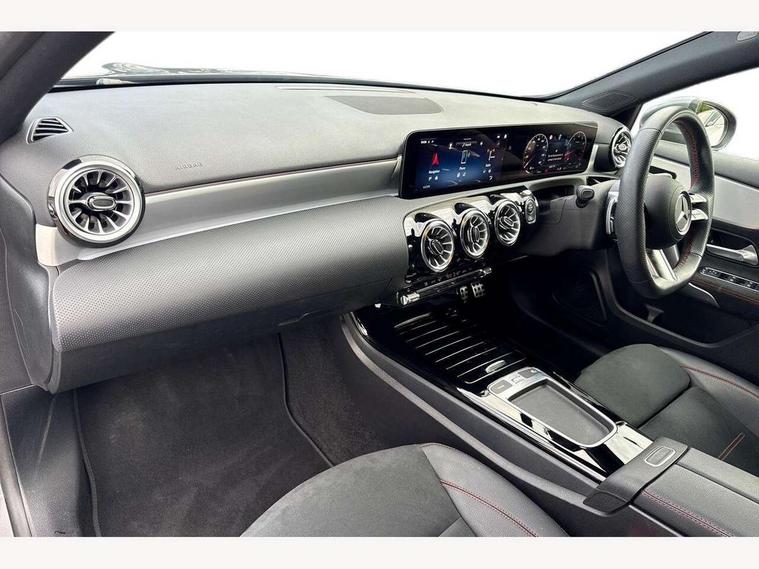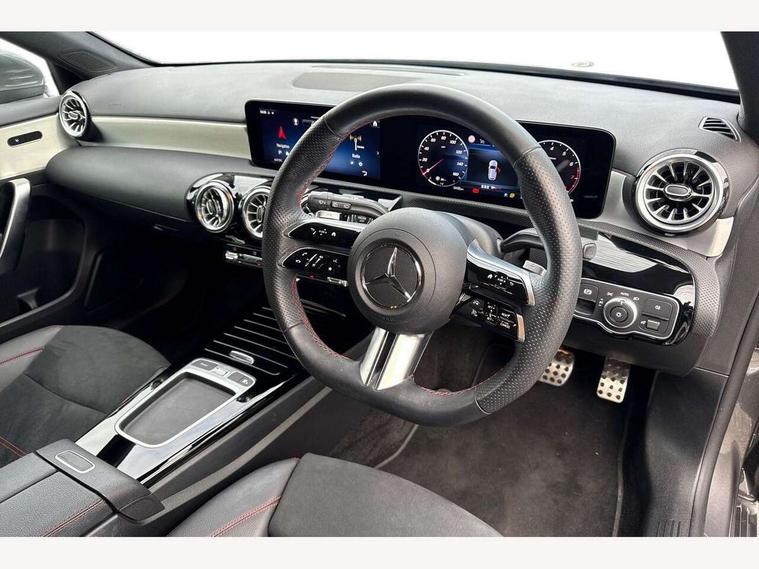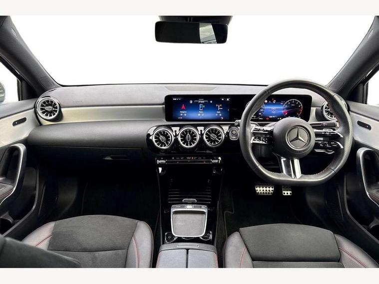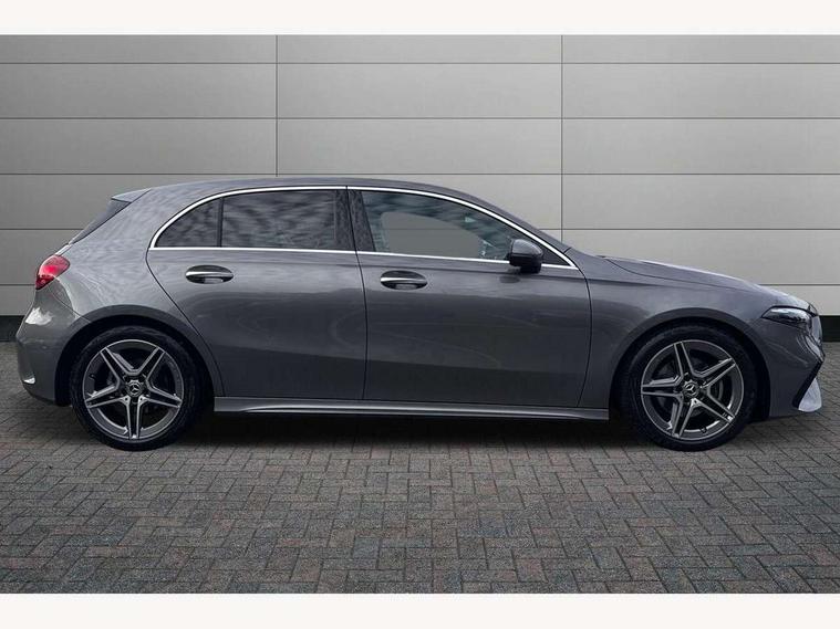 10.25 inch touchscreen central media display, 10.25" Digital instrument cluster display screen, Attention assist, Brake pad wear indicator warning light, Car wash mode, Cruise control + speed limiter, Direct steering, Direction indicators with lane change function, Dual bluetooth interfaces, DYNAMIC SELECT with a choice of driving modes (ECO, Comfort, Sport and Individual), Easy pack tailgate hands-free access, ECO start/stop function, Engine start/stop button, Fluid level warning indicator for fuel, oil, coolant and washer fluid, Hard-disk navigation, Hey Mercedes Voice activation, Lamp failure indicator, Lane keeping system, Mercedes me connect including emergency call system, accident recovery, breakdown and maintenance management, Mercedes me remote services, Outside temperature gauge, Owners manual in English, Pre-installation of private car share, Preinstallation for Mercedes Benz link, Remote boot closing, Service indicator (ASSYST), Smartphone integration with Apple CarPlay and Android auto, Speed limit assist, Speed sensitive power steering, Trip computer in multifunction display with current consumption indicator, Wireless charging, Lowered comfort suspension, DAB Digital radio, MBUX multimedia system, Mercedes Benz sound system (100 W) with 6 speakers, 4 Electric Front and Rear windows, Adaptive brake lights, AMG body styling - AMG front apron with front splitter and AMG rear apron and visible exhaust tailpipe trim elements, Body colour bumpers, Body colour door handles with chrome inserts, Body colour side skirt, Body coloured door mirrors, Chrome beltline strips, Diamond radiator grille with pins in fine star pattern, Electric adjustable and heated door mirrors with integrated LED side indicators, Exhaust system with 2 visible tailpipe trim elements and rear apron, Headlamp assist automatic headlamp activation, Heat insulating dark tinted rear and rear side windows, Heated glass rear windscreen + timer control, LED High level third brake light, LED High Performance headlamps including integral LED daytime running lamps and adaptive highbeam assist, LED tail lamp, Privacy glass, Radio aerial, Rain sensing windscreen wipers with two sensitivity settings, Rear fog lights, Rear side wing doors, Rear windscreen wiper, Window line trim strip in chrome, 3 seat bench in 2nd row, 3 Spoke flat bottom leather multi function steering wheel with perforated leather in grip area, 4 way lumbar support, 40:20:40 split folding rear seats, Air conditioning - One zone thermatic automatic climate control with automatically controlled air distribution, AMG floor mats, Automatic child seat recognition sensor, Black air vents with surround in silver chrome, Black roof lining, Brushed stainless steel sports pedals with rubber studs, Front centre armrest with stowage, Front door sills with Mercedes Benz lettering, Front seat backs luggage nets, Galvanished gear shift paddles on steering wheel, Heated front seats, Height/reach adjustable steering column, Interior lighting - 64 colour Ambient lighting, Interior mirror with reading lamps in black and frameless, Rear armrest with 2 cupholders, Seat occupancy sensor for front passenger seat, Single front passenger seat, Sports seats with integrated headrests, Stowage compartment in centre console with retractable cover, Sunvisors with illuminated vanity mirrors, Twin front cupholders, Light and sight pack - A Class, Mirror package - A Class, Parking pack - A Class, Seat comfort pack - A Class, USB pack plus - A Class, 3 rear 3 point seatbelts, ABS with Brake Assist, Active bonnet, Active brake assist includes forward collision warning system with autonomous braking, Adaptive brake assist with hold function and hill start assist, Black seatbelts, Bonnet with power domes, Childproof locks manually operated for rear doors and electrically operated for rear power windows, Crash responsive emergency lighting, Driver and passenger head and side airbags, Drivers knee airbag, Dual stage driver/passenger airbags, Electronic parking brake, ESP curve dynamic assist, ESP with ASR, Front and rear seatbelt reminder, ISOFIX and top tether child seat fixing points in two outer rear seats, Tyre pressure monitoring system, Warning triangle and first aid kit, Window airbags, Alarm system/interior protection/immobiliser, Guard 360 degree vehicle protection, Keyless entry lock/unlock, Keyless Go, Remote central locking and crash sensor with emergency opening function, Light longitudinal grain aluminium trim, 18" AMG 5 twin spoke light alloy wheels, aerodynamically optimised, painted in termolite grey with high sheen finish, Summer tyres, Tirefit sealant kit,