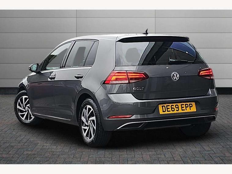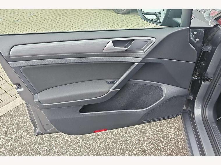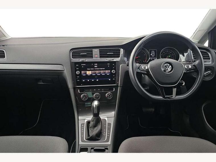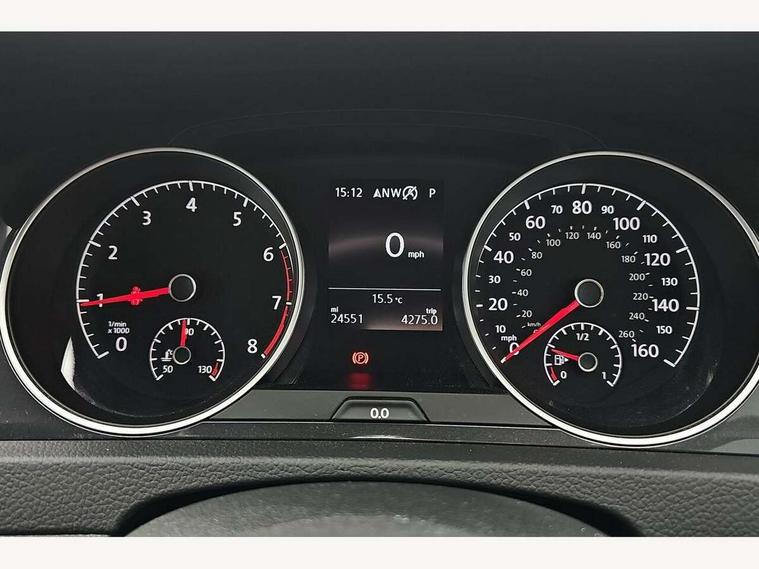 'Lights On' Reminder warning buzzer, ACC - Adaptive cruise control with front assist, forward collision warning, distance monitoring, city emergency brake and speed limiter, Bluetooth telephone and audio connection for compatible devices, Brake pad wear indicator warning light, Driver alert system, Driving Mode Selection with four preset modes - Eco, normal, sport or individual modes, Instrument cluster in white, Multifunction computer with visual gear change recommendation for fuel consumption, Power assisted speed sensitive electro-mechanical steering, Push tank flap, Speed limit display, Speedo, rev counter, electronic odometer, trip, service interval display, exterior temperature and fuel gauge, Stop/start system, Think blue trainer driver tips and journey analysis, Warning buzzer and light for front seatbelts unfastened, We Connect Go Dongle, Battery regeneration during braking, XDS electronic differential lock, Composition media system, DAB Digital radio receiver, Driver Personalisation profile selection, MP3/WMA compatability, Multi device interface (MDI) with USB connection, Personalisation 1.1 profile for media, Premium USB cable in choice of either Apple or Android smartphone compatibility, SMS Functionality, Title and cover art display, 4 X 20W output, USB connection and socket, USB and SD card connectivity, Auto dimming rear view mirror, Black front air intake and radiator grille with chrome insert, Black rear diffuser, Body colour bumpers, Body colour door handles, Body colour door mirrors with integrated indicators, Dusk sensor + automatic driving lights, Electric front windows, Electric rear windows, Electrically adjustable and heated door mirrors, Fully galvanised body, Heated rear windscreen, Hidden exhaust pipe, High level 3rd brake light incorporating LED Technology, LED front fog lights with static cornering light function, Range adjustable headlights via infotainment system with LED daytime running lights, Rear fog lamp, Rear number plate lights incorporating LED technology, Rear tinted glass 65% light absorbing from B pillar backwards, Rear window aerial, Rear window wash/wipe with intermittent wipe, Reflectors in all doors, Remote electrically foldable door mirrors, door mirror puddle lights and reverse activated kerb-view adjustment on passengers door mirror, Tailgate with integrated rear roof spoiler, Windscreen wipers/ intermittent wipe + 4 position delay, 12V socket in luggage compartment, 3 rear headrests, 4 load lashing points in luggage compartment, 60/40 split folding rear seat backrest, Auto fold down lever in rear seat backrest, Bag hook in luggage compartment x 2, Black decorative sleeve on gear handles, Cooled glovebox, Cover for storage compartment in centre, Cupholder cover, Dust/pollen filter, Front and rear reading lights X 2, Front centre armrest with storage compartment and two rear air vents, Front seat back storage pockets, Grab handles front x 2, rear x 2 with integrated coat hooks, Height and reach adjustable steering wheel, Illuminated vanity mirrors, Instrument lighting white adjustable panel illumination, Interior light delay, Isofix preparation for 2 rear child seats, Load through provision with rear centre armrest and cupholders x2, Luggage compartment lighting, Overhead storage box, Passenger underseat drawer, Pearl grey headlining, Storage box in luggage compartment, Storage compartment in roof console with cover, Storage compartments in centre console, Storage compartments in front doors, Storage compartments in rear doors, Stowable luggage compartment cover, Sun visors, Variable boot floor, height adjustable and removable, Convenience Pack - Golf, Light and Sight pack - Golf, Mirror pack - Golf, 3 rear three point seatbelts, Airbags - Driver's and front passenger's, curtain airbag, Driver's knee, front side impact and passenger's airbag deactivation switch, Anti-lock Braking System (ABS) with Hydraulic Brake Assist (HBA), Automatic post collision braking system, Child locks on rear doors, Driver/Passenger optimised head restraints, Electronic parking brake with auto hold, Electronic stability control (ESC) including Electronic differential lock (EDL) and ASR (Traction control) with deactivation via infotainment system, Front ventilated disc brakes and rear disc brakes, Pre crash preventive occupant protection, Three point height adjustable front seatbelts with tensioners, Tyre pressure loss indicator, Alarm with interior protection and deactivation via infotainment system, Electronic engine immobiliser, Brushed dark silver decorative inserts in dash and door panels, Chrome plated air vent surround, Chrome-plated light switch surround, Polar night black decorative inserts in centre console, Steel space saver spare wheel,