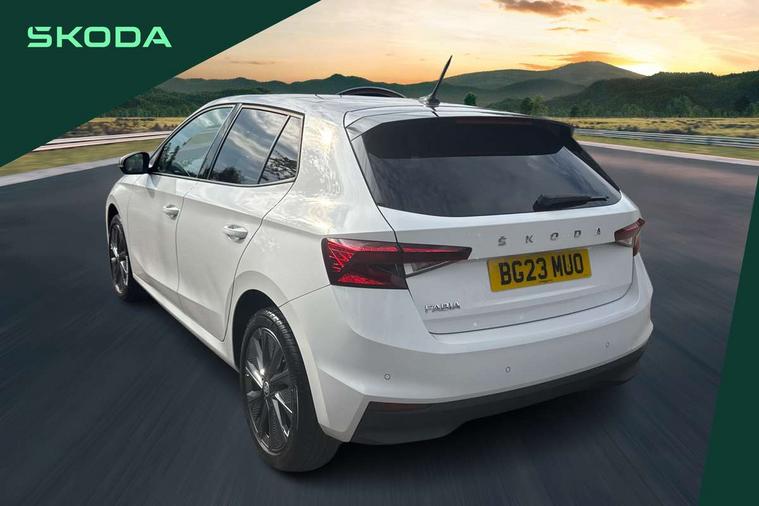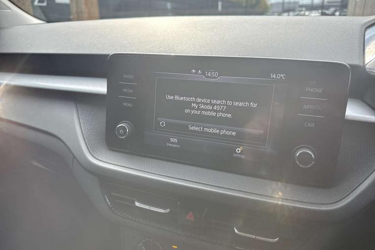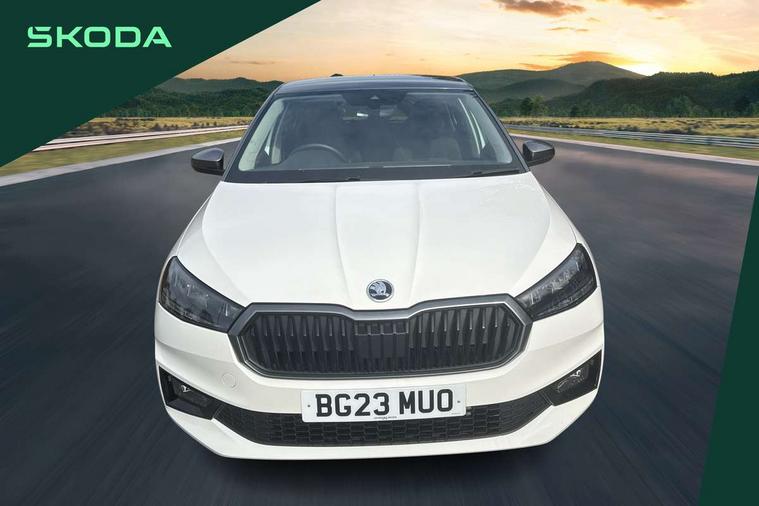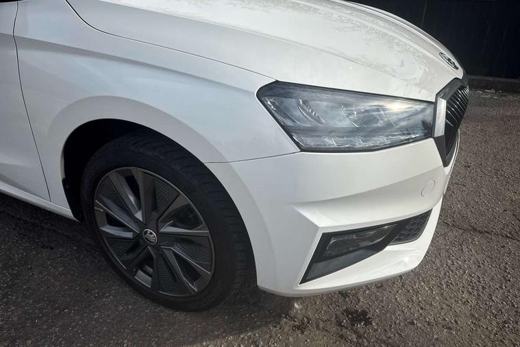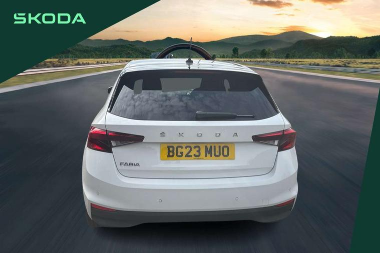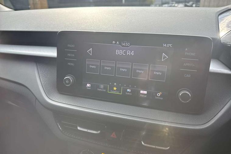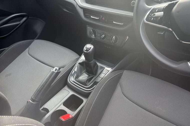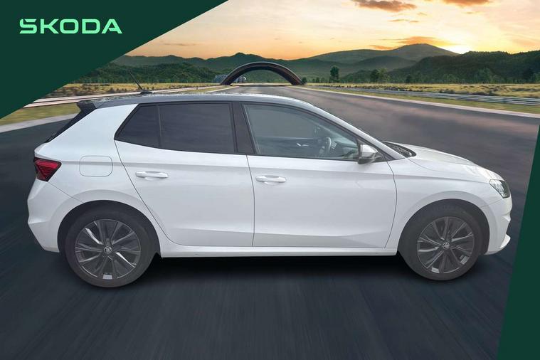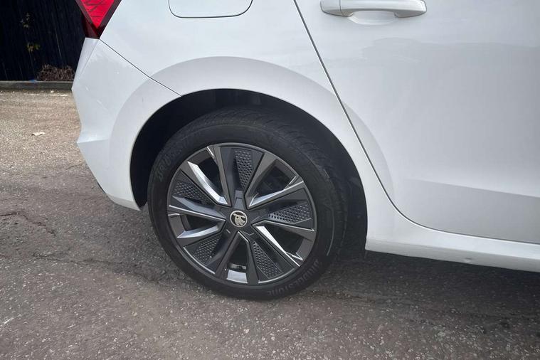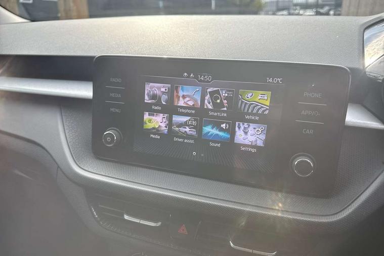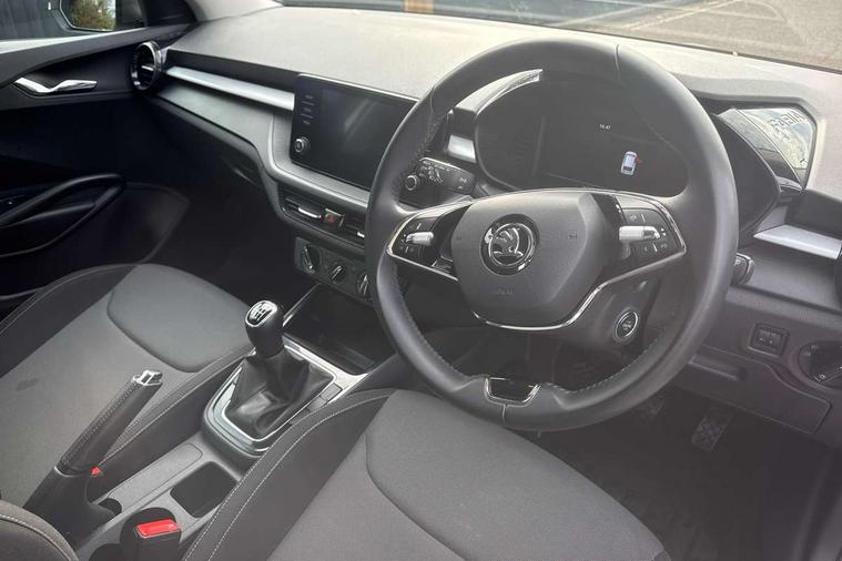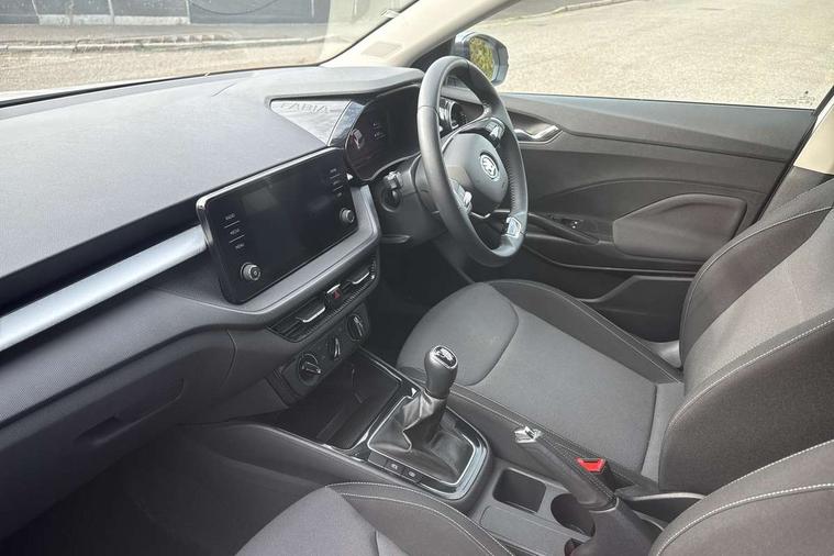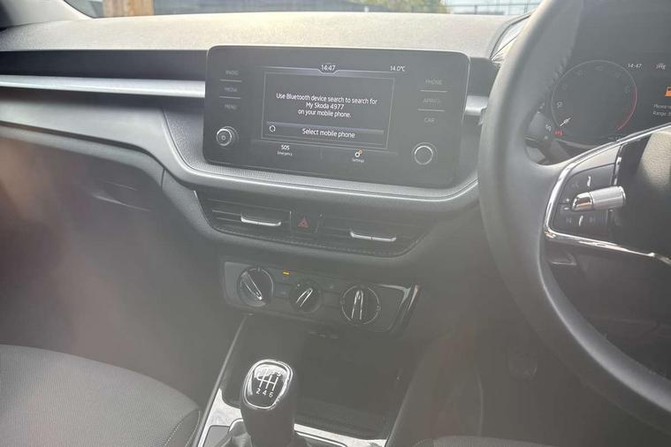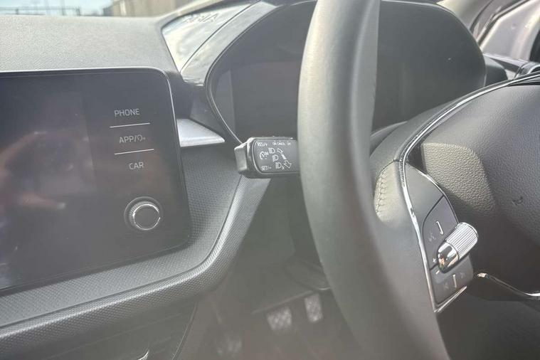 Bluetooth connection, Driver alert system - DAS, Electromechanical power steering, Exterior temperature gauge, Lane assist including road edge detection, Service interval indicator, Virtual cockpit with 10.25" colour display, 2x USB-C in the front (for data transmission and charging), 6 Speakers (4 in front and 2 in rear), Auxiliary socket for external MP3 player, Bolero radio with 8" colour display, DAB digital radio reception, Basic rear lights, Body coloured bumpers, Dimming rear view mirror with black frame, Door mirror integrated indicators, Electrically adjustable and heated door mirrors, Electrically adjustable front windows with function auto up/down, Front window wiper intermittent control, Headlight range control - Automatic, Ice scraper in fuel cap, LED daytime running lights with coming and leaving home feature, Mechanical adjustable rear windows, Privacy glass, Rear LED fog light, Rear side wing doors, Rear window wiper with washing nozzles, Roof colour door mirrors, Roof mounted spoiler, SKODA tailgate lettering in chrome, Third brake light, 3 rear headrests, Backrest split and folding, Central console with fixed cup holder and storage box, Chrome handbrake release button, Fabric upholstery, Gearshift knob/handle in leather, Grain satin black interior door handles, Hand brake lever handle in leather, Height adjustable front headrests, Height adjustable steering wheel, ISOFIX and TopTether anchorage points to the outer rear seats, ISOFIX and TopTether on the front passenger seat, Luggage compartment lighting, Pollen filter, Rear seat bench unsplit, Single front passenger seat, Storm grey headlining, Sun visors with mirror and airbag label on passenger side, Ticket holder, Umbrella in drivers door, 3-point height adjustable front seats belts with pretensioner and force limiter, Automatic warning lights in case of crash, Driver and passengers airbag with switch off function, e-Call+, ESC including ABS, MSR, ASR, EDS, HBA and XDS, Front and rear seat belt warning, FRONT ASSIST (AEB City and AEB Inter Urban), Front side airbags, Head airbags, One tone horn, Pedestrian protection, Three rear 3-points safety seat belts with pretensioner and force limiter including stop function for outer rear seat belts, Tyre pressure monitoring system, Anti-theft alarm system including immobiliser, interior monitoring, backup horn, and towing protection, Anodized cross line upper decorative trim, Colour Edition air vents, Grain satin black central console cover, Grain satin black lower decorative trim, Satin black door and side trim panel in front, Anti-theft wheel bolts protection, Super-low rolling resistance tyres,