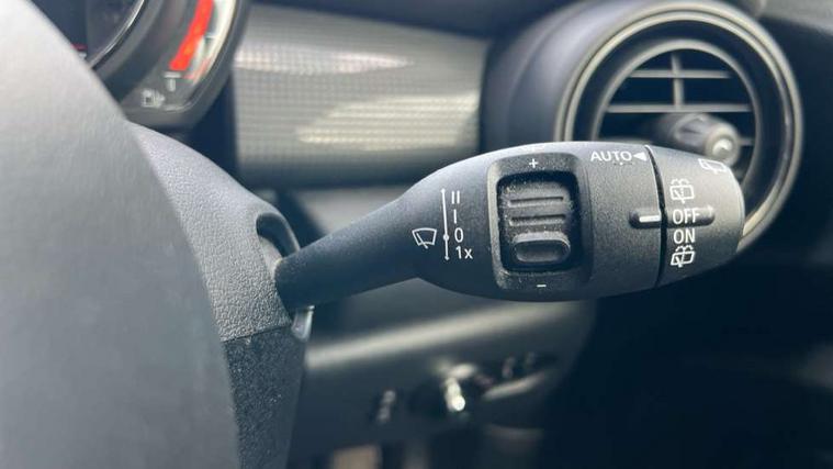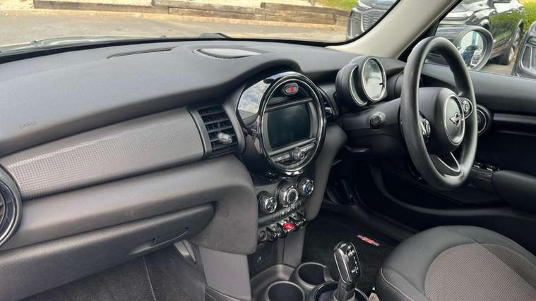 Automatic start/stop function with brake energy recuperation, Compatible mobile phone bluetooth with audio streaming, Electro-mechanical speed dependant steering assistance, Instrument cluster, Mini E-call, MINI TeleServices, On board computer, Service interval indicator, Double Vanos system, Fully variable valve control, High precision injection, Steptronic transmission with double clutch, 6.5" touchscreen with LED ring, FM tuner and DAB digital radio, Automatic headlight activation switch, Body colour fuel filler cap, Chrome border high gloss black slats radiator grille, Dynamic brake lights, Electric front+rear windows, Heated rear window, Heated windscreen washer jets, LED headlight with closed ring and daytime driving lights, Left exhaust tailpipe with chrome finisher, Metal door sill strips with MINI imprint, Model logo Cooper on right of tailgate, Rain sensor window wipers, Rear fog lights, Rear LED lights with union jack design, Rear window wiper, Side scuttle panel with integrated indicator, Sun/heat protection glass, White indicator lenses, 12V Accessory socket in centre console, 4 lashing eyes in luggage compartment, 60/40 split folding rear seat, Chrome interior highlights, Colour line - Carbon black, Cupholders, Front and rear head restraints, Front and rear isofix with front passenger airbag deactivation, Glove compartment, Height and length steering column adjustment, Interior lighting with 12 basic colours selectable via toggle switch in roof, Leather gearshift lever and handbrake gaiters, LED reading lights, vanity mirror lights, front foot well light and spotlight on front seats, Manual air conditioning, Mechanical seat adjustment, driver seat height adjust, forward/back and front seats backrest, Mini logo projection on floor from drivers exterior mirror, Multifunction steering wheel, Satellite grey headlining, Storage compartments in doors, Sunvisors with vanity mirrors, 3 point seatbelts on all five seats, 6 Airbags - front, side, head and seat belt tensioners, Anti-lock braking system (ABS), DSC - Dynamic Stability Control, Front and rear disc brakes, Hill start assist, Single tone fanfare horn, Tyre pressure monitoring system, Alarm system with tilt sensor, monitoring doors, bonnet interior and tailgate, Electronic vehicle immobiliser, Start/stop toggle with keyless go, Tool kit,