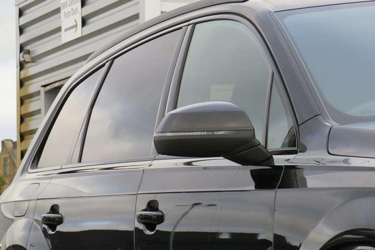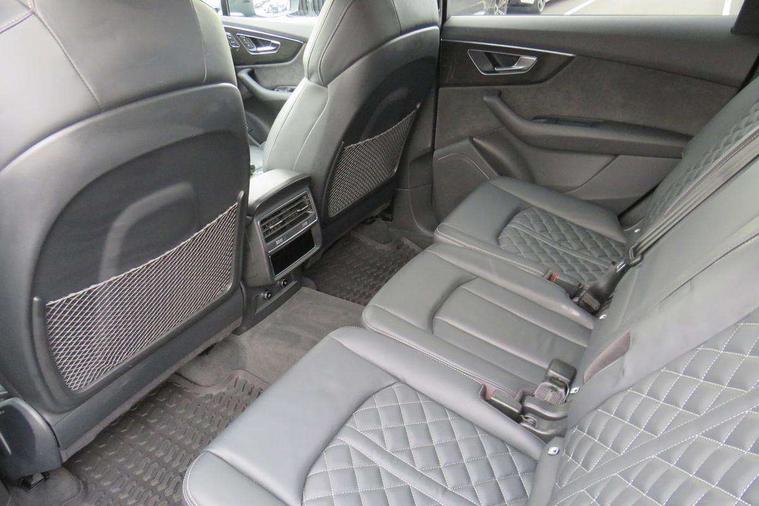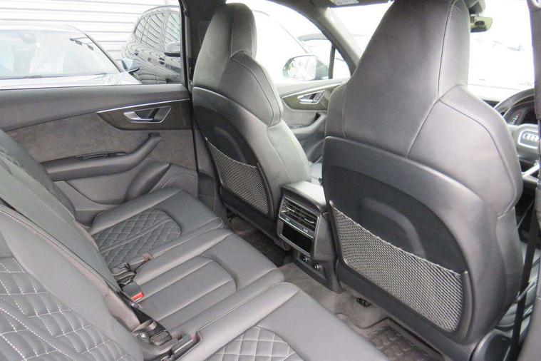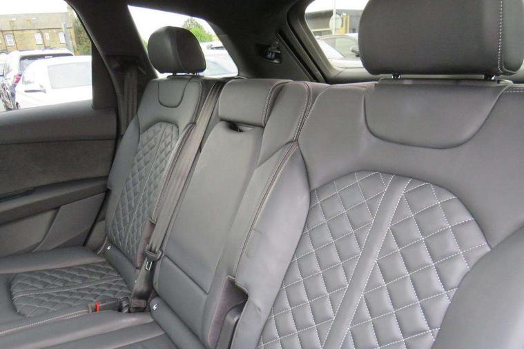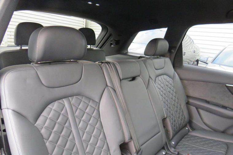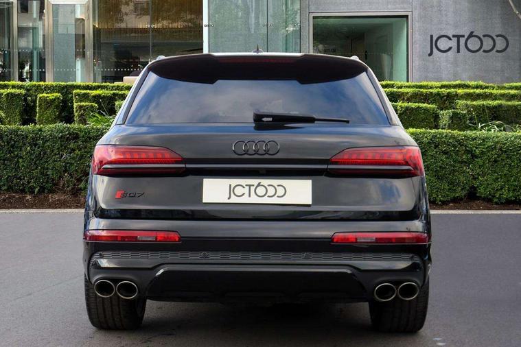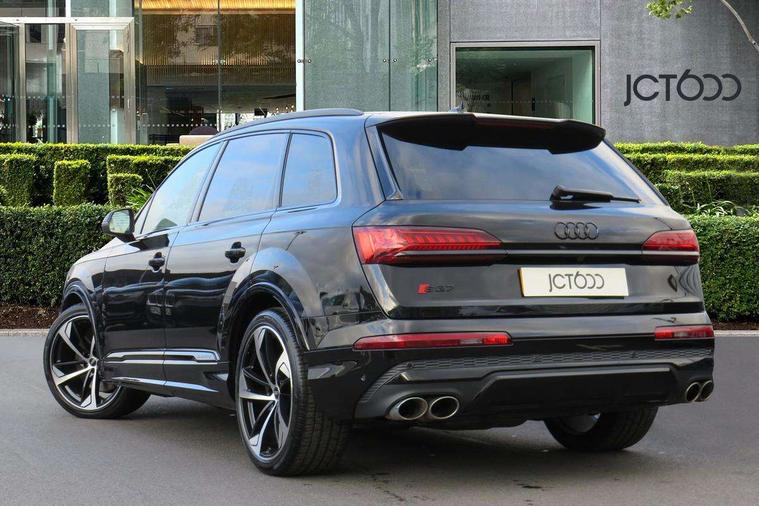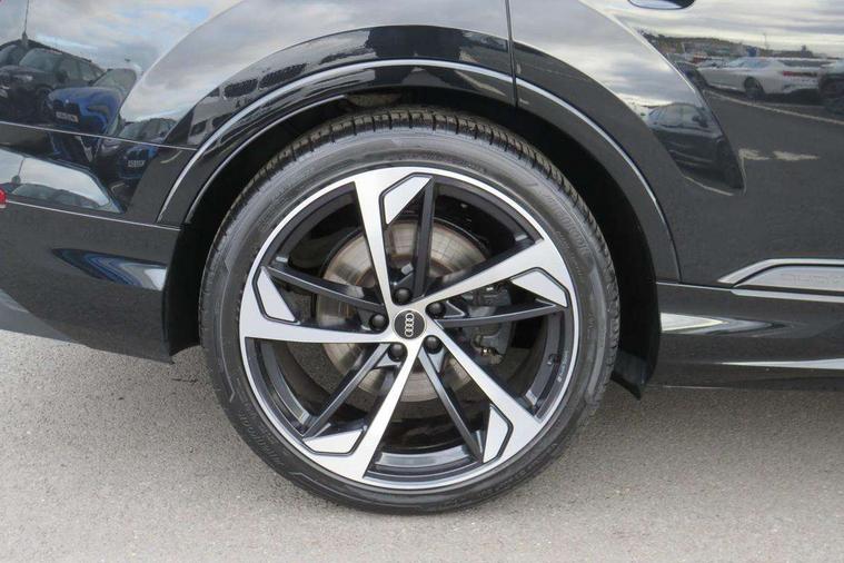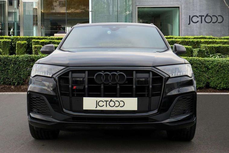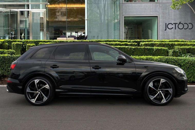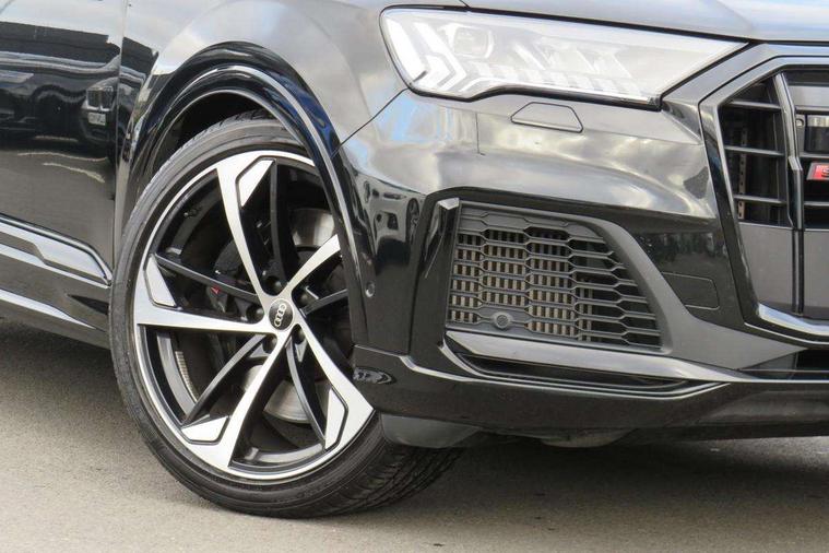 All wheel steering, Audi connect safety and service (e-call), Audi connect with Amazon Alexa Integration, Audi drive select (Auto, Comfort, Dynamic, Efficiency, Individual, Off-road and All road), Audi smartphone interface includes wireless Apple carplay/Android Auto, Audi virtual cockpit - 12.3" high-resolution LCD display with fully customisable instrument cluster, Bluetooth interface, Camera based traffic sign recognition, MMI navigation plus with MMI touch screens includes 10.1" and 8.6" screens with haptic feedback, Natural voice recognition, Parking system plus with 360 degree display (front, rear and side sensors) - acoustic and visual park assist system, Power operated tailgate, Rear view camera, Start/stop system, 48V Mild hybrid technology, 85 litre fuel tank, Quattro all wheel drive with self locking centre differential, S specific adaptive air sport suspension, Audi music interface - front 2 USB-C ports with charger and data functions, Audi sound system with 6 channel amplifier, 180 watt amplifying capacity and 10 loudspeakers including subwoofer, DAB digital radio module, 3rd brake light, Audi Beam uses LEDs to project Audi logo onto the ground as you exit your SQ7, Auto dimming frameless rear view mirror, Black roof rails, Electrically adj heated/folding + automatically dimming exterior mirrors with memory + automatic kerb side function for passenger side exterior mirror, Gloss black finish for exterior Audi rings and SQ7 logos, Heat insulating glass in windshield, Integrated LED indications in door mirrors, LED daytime running lights, LED headlights and high beam assist, LED rear tail lights, Privacy glass - dark tinted rear and rear side windows from B-pillar backwards, Rear side wing doors, Rear wiper, S front and rear bumpers, S specific rear bumper with 4 exhaust pipes, 2 seat bench in 3rd row, 3 seat bench in 2nd row, 4 zone deluxe automatic climate control, 7 seat layout with ISOFIX points for the front passenger seat and rear passenger seat, Black cloth headlining, Comfort front centre armrest, Electric adjustable front seats/backrest bolsters, lumbar support, memory functionality, Folding rear seats, Front head restraints, Front/rear floor mats, Heated front seats, Illuminated door sill trims with S logo, LED interior ambient lighting, Luggage compartment cover, Luggage compartment sill protection in stainless steel, Rear head restraints, Single front passenger seat, Stainless steel pedals, Sunvisors with illuminated vanity mirrors, Tool kit, Valcona leather upholstery with front super sport seat, Titanium black styling pack - Q7/SQ7, 3 point seatbelts on all rear seats, Audi pre sense front, Child locks on rear doors, Driver and front passenger, front side and curtain airbags, Electromechanical parking brake, Electronic Stabilisation Control (ESC) including ABS, ASR and EDL, Extended pedestrian protection measures, Hill hold assist, Seatbelt monitoring, Tyre pressure loss indicator, Warning triangle and first aid kit, Anti theft alarm, Anti-theft wheel bolts and wheel loosening detection, Keyless Go, Remote central locking, Polished oak trim with grey finished, 22" 5 arm trapezoid design audi sport alloy wheels in anthracite black with gloss turned finish, Tyre repair kit,