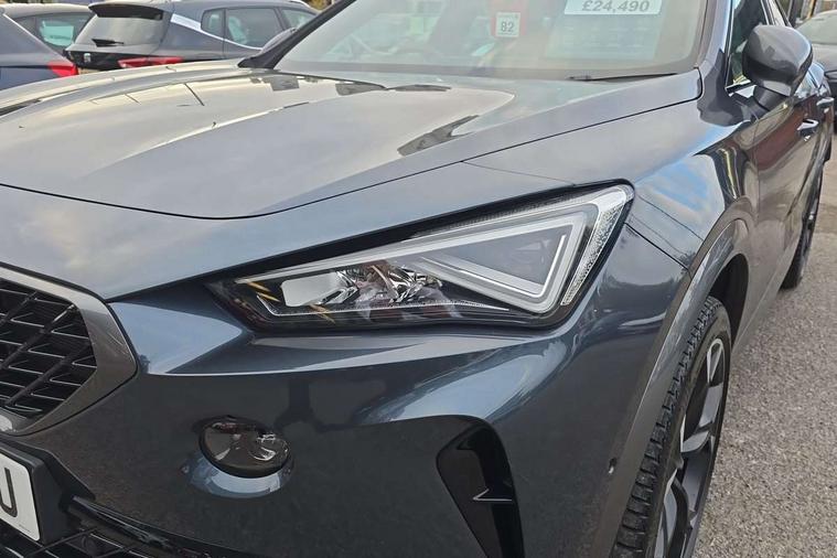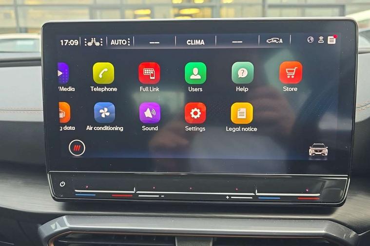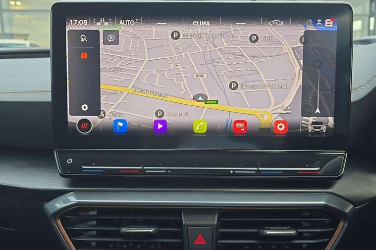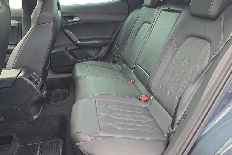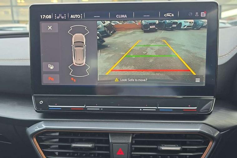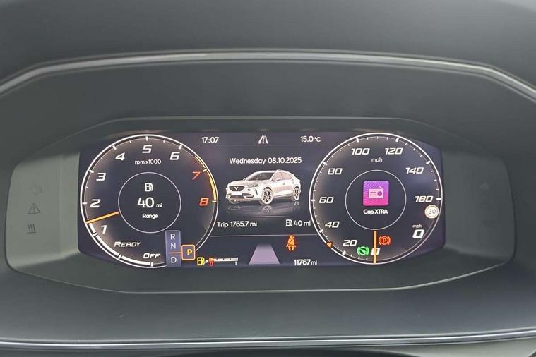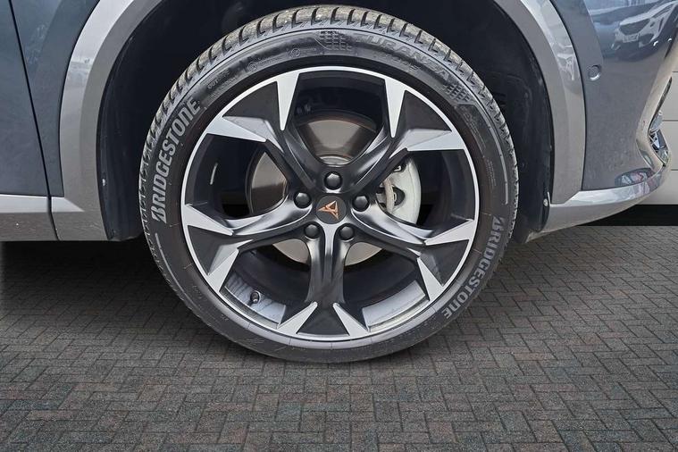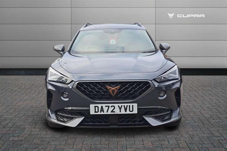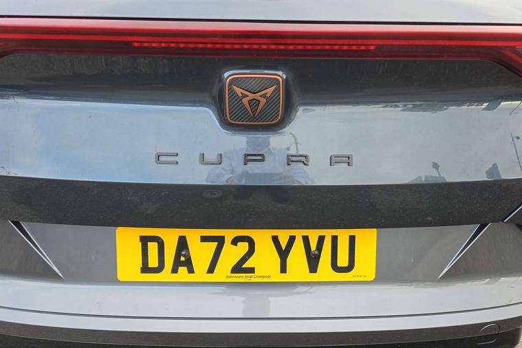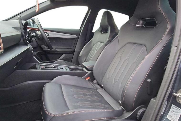 Digital cockpit and configurable dashboard, Driver alert system, Driving profile selection, Forward collision warning with automatic braking, Lane assist, Navigation system with 12'' Touchscreen Display, Park assist (inc front/rear parking sensors), PAS, Predictive adaptive cruise control with speed limiter, Rear view camera, RPM, trip computer, outside temp gauge, instrument light brightness, low fuel warning light, lights on reminder, gearshift indicator, Service interval indicator, Start/stop system with regenerative braking, Voice control system, Wireless apple carplay, Wireless phone charger, Electronic locking differential and dynamic traction support, Standard suspension, 2 front and 2 rear USB type C sockets, Auxiliary input socket, DAB radio, Auto dimming rear view mirror, Body colour door handles, Body coloured bumpers, Dark grey wing mirror, Daytime running light with automatic headlight control and coming home feature, Dynamic headlight range control, Electric front/rear windows, Electrically adjustable heated and folding door mirrors with memory function, Front fog lamps with cornering function, Gloss black roof rails and window surrounds, LED Headlights, LED Taillights with dynamic indicator, Rain sensing wipers, Rear diffuser with black simulated exhaust pipes, Rear side wing doors, Rear wash/wipe, Third brake light, Tinted rear windows, Welcome lights, 12v power supply in centre console, 12V socket, 12v socket in loadspace, 2 front and 2 rear reading lights, 230V socket, 3 seat bench in 2nd row, 60/40 split rear bench seat with armrest and mechanical seat release, Black headlining, Dust/pollen filter, Front and rear head restraints, Front centre armrest, Height/reach adjust steering wheel, Illuminated interior front door sills, Illuminated sunvisor with mirror, Isofix, Leather multi function heated steering wheel with gear shift paddles, Luggage tie-down hooks, Single front passenger seat, Three zone climate control with control panel in rear, Variable luggage/load compartment floor, Wraparound lighting, Genuine Nappa leather Pack - Cupra, 3 point seatbelts on all rear seats, ABS, Brake control system - ESC and brake booster, Child proof door locks, Driver and front passenger airbags with front passenger airbag de-activation, Electronic parking brake, Front and rear disc brakes, Front side curtain airbags, Hill hold control, Public e-call, Seat belt reminder for front and rear seats, Tyre pressure monitoring system, Anti theft alarm system, Keyless entry and start system (KESSY), Locking wheel bolts, Copper and aluminium interior detailing, 19" 'Exclusive' machined sport matte black and silver alloy wheels,