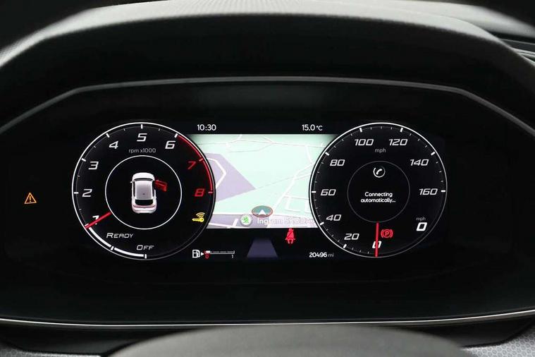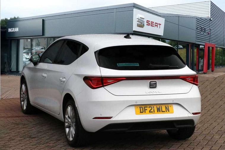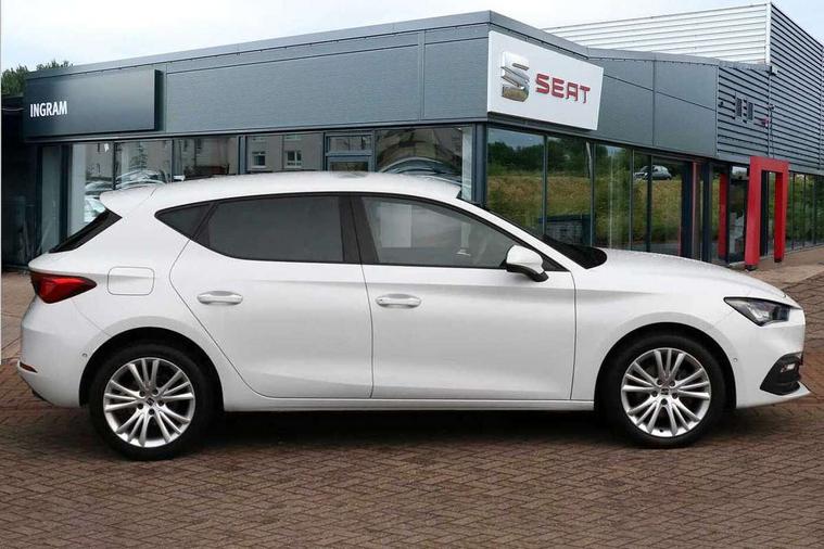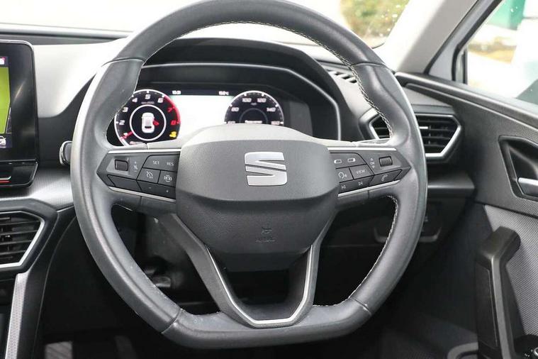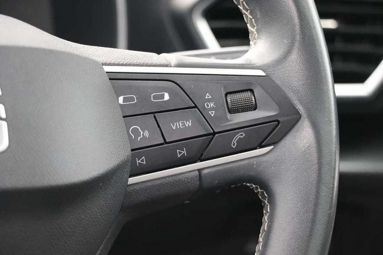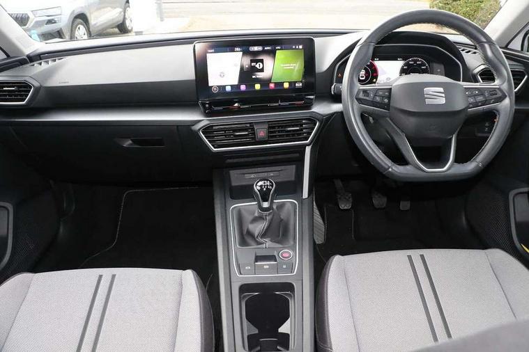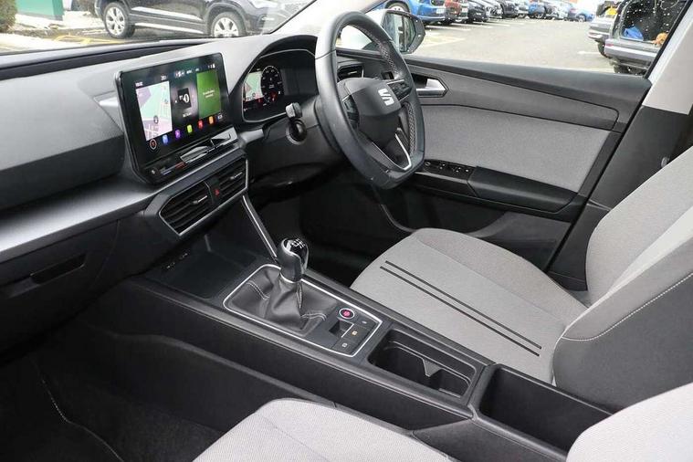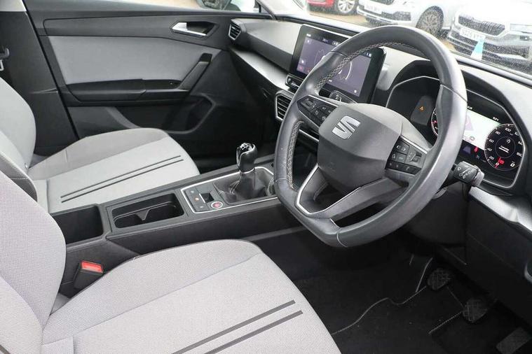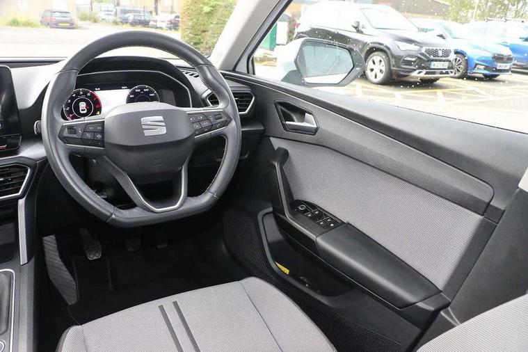 Cruise control with speed limiter, Digital cockpit, Front assist with forward collision warning braking reaction to vehicles, pedestrians and cyclists, Full link smartphone integration with Mirror Link, wireless Apple CarPlay and wired Google Android Auto, Lane keeping system, Lockable tailgate, Park assist (inc front/rear parking sensors), Power assisted speed sensitive electro-mechanical steering, RPM, trip computer, outside temp gauge, instrument light brightness, low fuel warning light, lights on reminder, gearshift indicator, Service interval indicator, Start/stop system with regenerative braking, Standard suspension, XDS electronic differential lock and dynamic traction support, Auxiliary input socket, Body colour door handles, Body coloured bumpers, Body coloured exterior mirrors with integrated LED indicators, Dark tinted rear windows, Electric front/rear windows, Electrically adjustable and heated door mirrors, LED front fog lamps with cornering function, LED headlights and LED tail lights, LED rear fog lamp, Manual dimming rear view mirror, Rear wash/wipe, Separate daytime running light with automatic headlight control, 12v power point in centre console, 60/40 split rear bench seat, Air conditioning, Cloth upholstery, Driver seat lumbar adjustment, Driver/passenger manual seat height adjustment, Dust/pollen filter, Folding boot cover, Front and rear height adjustable headrests, Front and rear reading lights X 4, Front seatback storage pockets, Height/reach adjust steering wheel, Interior lighting with LED lighting in sunvisor, glovebox and rear headlining, ISOFIX points in outer rear seats with top tether anchorage points, Leather flat bottomed, perforated steering wheel and leather gearstick, Luggage tie-down hooks, Sunvisors with covered illuminated mirror, Media system plus with navigation - Leon SE, 3 point seatbelts on all rear seats, ABS, Brake control system - ESC and brake booster, Child proof door locks, Driver and front passenger airbags with front passenger airbag de-activation, front side and curtain airbags, Electronic parking brake, Extended safety system - seat belt tensioner, window closure and hazard lights, Hill hold control, Rear disc brakes, Seat belt reminder for front and rear seats, Tiredness recognition system, driver alert system, Tyre pressure monitoring system, Anti theft alarm system with interior monitoring in cab, backup horn and towing protection, KESSY Go (Keyless start), Locking wheel bolts, Chrome interior detailing, 17" Dynamic tri-spoke alloy wheels with 91W tyres, Tool kit,