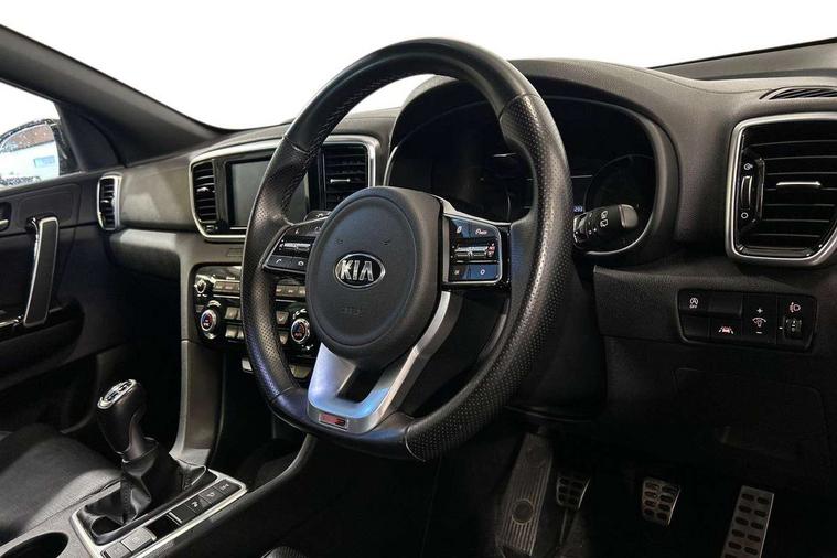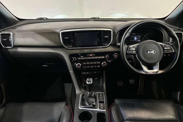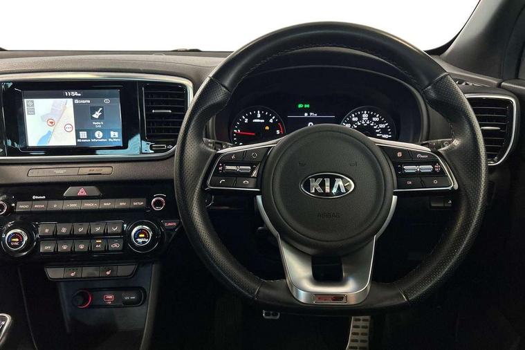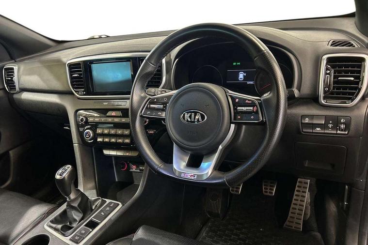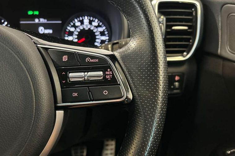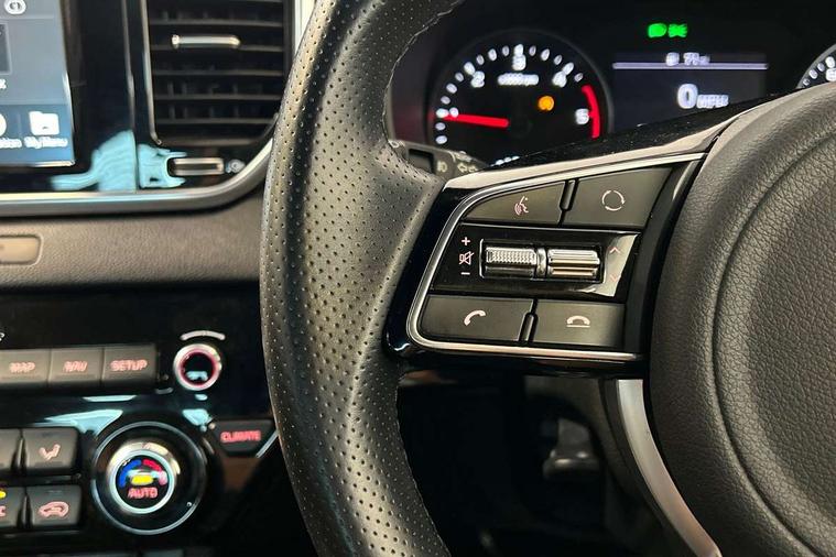 4.2" supervision colour cluster display, 7" touchscreen satellite navigation with European mapping and traffic messaging channel, Android auto with voice control, Apple car play with voice control, Bluetooth connectivity with voice control, Cruise control + speed limiter, Driver attention warning, Emergency stop signalling system, Front parking sensor, Kia connected services featuring TomTom live, Lane keep assist, Rear parking sensor, Reversing camera, Speed limit information, Speed sensitive power steering, Trip computer, Windscreen washer level indicator, Intelligent Stop and Go, 6 speaker audio system, Bluetooth audio streaming, DAB Radio with MP3, Rear USB port, Steering wheel mounted audio controls, USB/iPod/auxiliary input connections, All round electric windows with drivers auto up/down function, Auto dimming rear view mirror, Automatic defog system, Automatic headlights, Automatic lighting control, Black wheel arch body mouldings and side sills with dark chrome insert, Body colour door handles with chrome inserts, Body colour door mirrors, Chrome window surround, Dark chrome front bumper insert, Dark chrome grille surround, Dual exhaust pipes, EcoDynamics + Badge, Electrically adjustable/heated/folding door mirrors with LED indicators, Front wiper de-icer, High beam assist, High gloss black blade mesh radiator grille, LED Bi-Function headlights, LED daytime running lights, LED ice cube front fog lights, LED rear lights, Privacy glass (rear side windows and rear screen), Rain sensing front wipers, Rear spoiler, Rear wiper, Roof rails, Shark fin antenna, Silver painted front and rear skid plates, Speed sensitive front wipers, Tinted glass, Trailer stability assist, Welcome and follow-me home light functionality, Wide view drivers door mirror, Windscreen wiper de-icer, 12V power in front and rear centre console, 3 x passenger assist grips, 60/40 split folding rear seat, Air filter, All-round height adjustable headrests, Aluminium door scuff plates, Aluminium pedals, Black headlining, Centre cabin light, Centre console storage box, Chrome boot sill guard, D-Shaped sports leather steering wheel and perforated inserts with GT-Line logo, Door armrest in leather, Driver and front passenger side sunvisors with illuminated vanity mirrors, Driver's seat manual height adjust, Drivers seat power lumbar support, Dual zone automatic air conditioning, Front and rear door storage, Front cabin LED map light with sunglasses case, Front door courtesy reflectors, Front seat and rear pockets, Front/rear centre armrests, Gear shift indicator, Glovebox illumination, Heated front and outer rear seats, Interior door lock/unlock function, ISOFIX Child seat top tethers and anchor fixings, Leather trimmed gearshift, Leather upholstery, Luggage area light, Luggage area load cover, Luggage net hooks, Rear centre armrest with cupholder, Rear coat hooks, Satin chrome interior door handles, Tilt/telescopic adjustable steering wheel, Ventilation ducts to rear compartment, Active front headrests, All round 3-point seatbelts, Anti-lock braking system with electronic brakeforce distribution, Dual front side airbags, Electronic stability control with downhill brake control, ESP + traction control, Front passenger airbag cut-off switch, Front seatbelt pretensioners + load limiters, Height adjustable front seatbelts, Hill start assist control (HAC), Impact sensing auto door unlocking, Rear door child safety locks, Twin curtain airbags with roll over sensor, Twin front airbags, Tyre pressure monitoring system, Advanced anti-theft system including immobiliser and alarm, Door deadlocks, Engine Start/Stop Button with Smart Entry System, Locking wheel nuts, Speed sensitive auto door locking, Visible vehicle identification number, High gloss black centre fascia, 19" alloy Wheels B-type, Tyre mobility kit,