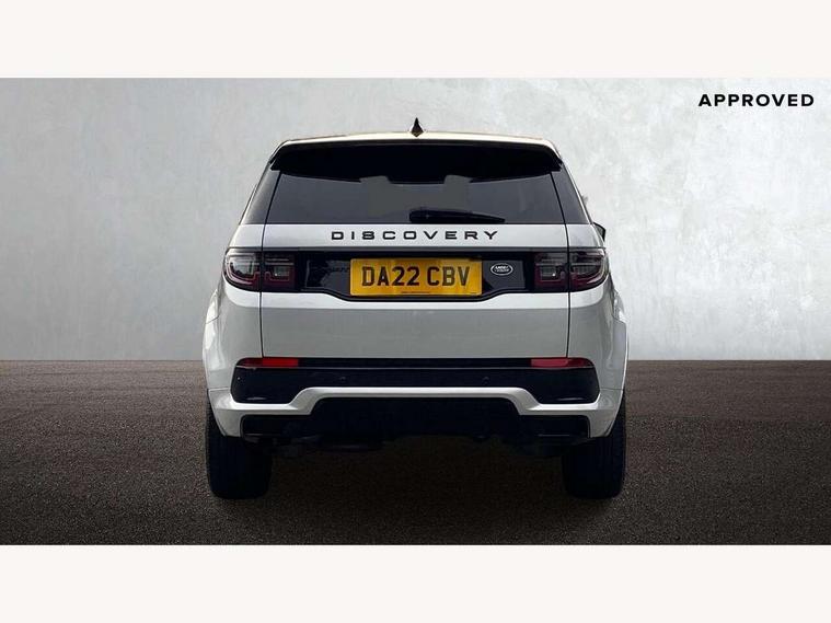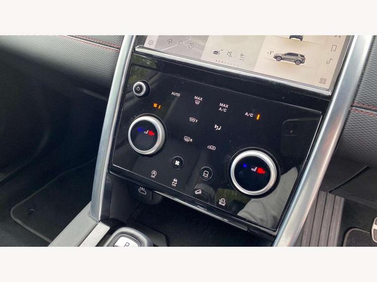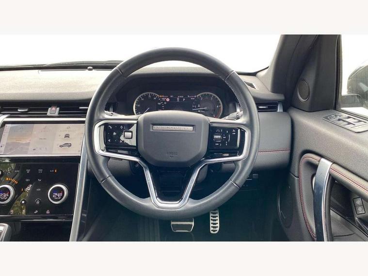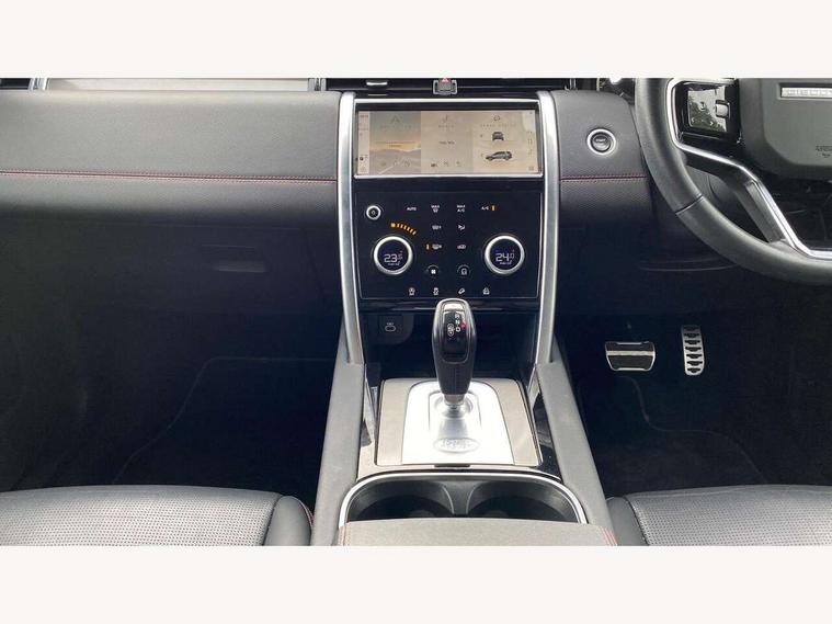 10" touch screen, Adaptive cruise control, Android Auto, Apple CarPlay, Blind spot assist, Clear exit monitor, Driver condition monitor, eCall emergency call system, Front and rear parking aid, InControl remote premium, Lane keep assist, Locking fuel flap, PAS, Pivi Pro connected navigation system with upgraded Infotainment, Powered tailgate/boot lid, Push button start, Rear collision monitor, Rear traffic monitor, Service interval indicator, Traffic sign recognition with adaptive speed limiter, Trip computer, Wade Sensing, All terrain progress control, Coil suspension system, Diesel particulate filter, Dynamic stability control, Terrain Response 2, Bluetooth connectivity including audio streaming, Digital Audio Broadcast radio-DAB, Steering wheel mounted audio controls, 3rd brake light, Automatic headlight levelling, Automatic headlights, Electric front/rear windows, Electric heated/power fold door mirrors with approach lights and auto dimming driver side, Fixed panoramic sunroof with powered sunblind, Front and rear recovery eyes, Heated rear window, Heated windscreen including heated washer jets, No badges, Privacy glass, R Dynamic badge, Rain sensing windscreen wipers, Rear fog lights, Rear side wing doors, Rear wing door, Rear wiper, 5 seats, Bright metal pedals, Centre console with armrest, Footwell lights, Front and rear grab handles, Front passenger isofix child seat attachment, Loadspace cover, Loadspace light, Overhead lighting console, Overhead stowage for sunglasses, Rear headrests, Satin chrome gearshift paddles, Sunvisors with illuminated vanity mirrors, Tilt/reach adjustable steering wheel, Black exterior pack - Discovery sport R-Dynamic SE/HSE, Online pack with data plan - Discovery, 3 point seatbelts on all seats, ABS, Brake hold function, Child locks on rear doors, Collision mitigation braking system, Cornering brake control (CBC), Driver/Front Passenger airbags, Drivers knee airbag, Electronic brake force distribution, Electronic parking brake, Emergency brake assist, ESP + traction control, Hill descent control, Hill launch assist, Pedestrian airbag system, Rear seat ISOFIX, Roll stability control, Side and curtain airbags for front and 2nd row seats, Trailer stability control, Tyre pressure monitoring system, Battery Back Up System (BBUS) with tilt sensor, Global lock and unlock switch on driver door, Intrusion sensor, Keyless entry, Locking wheel nuts, Centre stack rails in noble chrome,