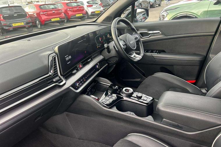 10.25" Touch screen navigation with european mapping & traffic messaging channel, 7" OLED colour display cluster, Adaptive smart cruise control function SCC, Apple car play/Android Auto with voice control, Blind spot monitoring with rear cross traffic alert, Charging indicator on dashboard, Digital clock, Drive mode select - eco, eco+, sport, Driver attention warning, E-call, Emergency stop signalling system, Forward collision avoidance assist, Head up Display, Lane Following Assist (LFA), Lane keep assist, Motor driven power steering, Rear parking sensors, Reversing camera, Speed limiter, Trip computer, UVO app connectivity, Wireless Mobile Phone Charger, 2 x USB port in centre console, Bluetooth audio streaming, DAB Radio/CD + MP3, Harman/kardon premium sound system with 10 speakers and subwoofer, external amp & front centre speaker, Rear USB port, Steering wheel mounted audio controls, Aero blade wiper, All round electric windows with drivers and front passenger auto up/down function, Auto dimming rear view mirror, Automatic headlight control system, Automatic window defogger, Black side sill and wheel arch body mouldings, Body colour bumpers, Body colour door handles, Dual full LED Headlamps, Electrically adjustable/heated/folding door mirrors with LED indicators, Follow me home headlights, High beam assist, LED daytime running lights, LED front fog lights, LED rear combination lights, Manual headlight levelling, Premium two tone paint, Privacy glass - Rear windows and tailgate, Rain sensing front wipers, Rear bulb fog lamp, Rear wash/wipe, Roof colour door mirrors, Roof rails, Silver sill styling, Silver skid plates, Solar glass, Variable intermittent front wash/wipe, 12V power socket in centre console, 60/40 split folding rear seat, 8 way power adjustable drivers seats with sliding, reclining & height adjustment, All-round height adjustable headrests, Centre cabin light, Centre console storage box, Driver and front passenger sunvisors with illuminated vanity mirrors, Drivers seat power lumbar support, Dual height load floor, Front and rear door storage, Front centre armrest, Front cup holders, Heat pump, Heated front seats, Heated steering wheel, Interior door lock/unlock function, ISOFIX Child seat top tethers and anchor fixings, Leather trimmed steering wheel, Leather upholstery, Light grey headlining, Luggage area light, Luggage area load cover, Luggage net with hooks, Map lamp with sunglasses case, Passenger seat back pocket, Rear ventilation duct, Satin chrome interior door handles, Shift by wire SBW, Single automatic air conditioning with driver function only, Tilt/telescopic adjustable steering wheel, ABS/EBD, All round 3-point seatbelts, Driver knee airbag, Electronic parking brake, ESC + BAS + VSM + HAC, Fasten seatbelt reminder, Front passenger airbag cut-off switch, Front seatbelt pretensioners + load limiters, Height adjustable front seatbelts, Hill start assist, Impact sensing auto door unlocking, Regenerative braking level controlled by paddle shift mounted on steering wheel, Traction control, Twin curtain airbags with roll over sensor, Twin front airbags, Twin front side airbags, Tyre pressure monitoring system, Alarm system and engine immobiliser, Deadlocks, Engine Start/Stop Button with Smart Entry System, Locking wheel nuts, Remote central door locking, Speed sensitive auto door locking, Visible vehicle identification number, 17" Alloy wheels, Tyre mobility kit,
