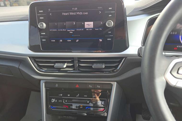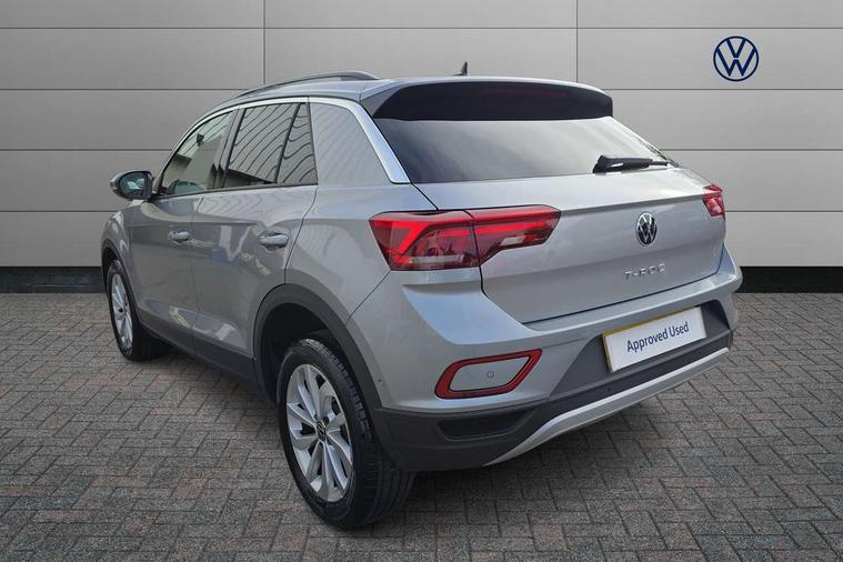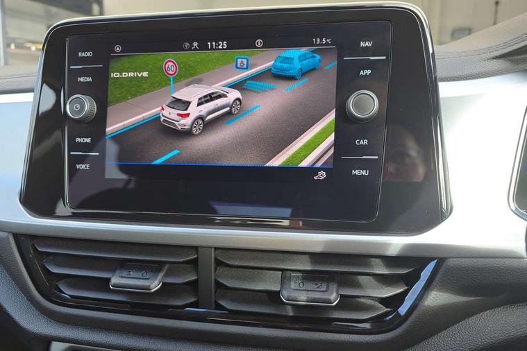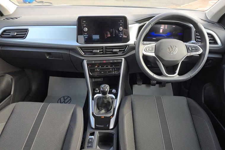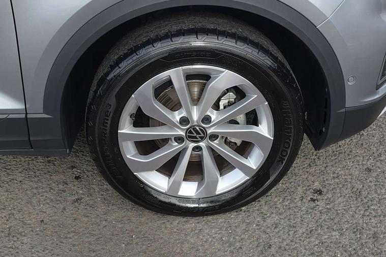 Bluetooth mobile phone interface, Driver alert system with fatigue detection, Driver tips and journey analysis, Emergency call service, Lane keeping system Lane Assist, Modified key software - reduce switch off time for key status change to Long no motion, Online services, Park assist including front and rear parking sensors, Power assisted speed sensitive steering, Service interval indicator, Tailgate/trunk lid release from outside, Think blue trainer driver tips and journey analysis, Warning sound and light for front seatbelts unfastened, Wireless app connect, Battery regeneration during braking, Front shock absorption, Rear shock absorption chassis with increased ride height, Start/stop function with battery regeneration, DAB Digital radio, Diversity antenna for FM reception, Front and rear 6 speakers, Music playback - MP3, WMA and AAC files, Premium USB cable in choice of either Apple or Android smartphone compatibility, SD card slot, Simultaneous pairing of 2 compatible mobile devices, Title and cover art display, We Connect and We Connect Plus functionality, 3rd brake light, Auto dimming interior rear view mirror, Automatic hazard lights activation under emergency braking, Automatic headlight control with LED separate daytime running lights with coming/leaving home function, Black roof rails, Body coloured bumpers and radiator grille with chrome trim and front fog lamps with chrome bezel, Body coloured exterior mirror housings and door handles, Extended roof spoiler, Exterior mirrors aspherical on driver side, convex on front passenger side, External USB type C socket and charging sockets, Front windscreen wiper with intermittent wipe and 4 position delay, Heated rear window, LED Headlights, LED rear combination lamps, LED rear number plate lights, LED tail lamp rear comination lamps, Power windows with comfort operation and circuit breaker, Rain sensor, Rear exhaust tailpipe, Rear fog light on one side and reversing lights on both sides, Rear side wing doors, Rear wash/wipe with intermittent wipe setting, Remote electrically foldable door mirrors, puddle lights and reverse activated passenger's door mirror, 12V power socket in centre console, 3 rear head restraints, 3 seat bench in 2nd row, 4 load lashing points in luggage compartment, Air care climatronic air conditoning system with active combination filter and 2-zone temperature control, Ambient lighting with mirror logo projection, Cloth upholstery, Door and side trim panel in cloth, Drawer under drivers seat, Driver/front passenger seat height adjustment, Front centre armrest, Front comfort sports seats, Front cupholders x 2, Front reading light, Instrument lighting, white adjustable panel illumination, Interior light delay, Isofix child seat preparation, Leather gearshift handle, Load-through provision with cup holder when folded down ('Unsplit rear seat bench, split folding backrest, with centre armrest), Luggage compartment lighting, Lumbar support for driver's and front passengers seat, Non-folding front passenger seat backrest, Single front passenger seat, Storage compartment in left and right luggage area, Storage compartment in rear doors, Storage compartments in driver and front passenger doors, Sunvisors with illuminated vanity mirrors, Variable boot floor, height adjustable and removable, Driver assistance pack without proactive passenger protection - T-Roc, 3 point height adj front seatbelts + pretensioners, 3 point seatbelts in outer rear with ECE label, ABS, Child locks on rear doors, Driver and front passenger airbag with front passenger airbag deactivation, Driver and front passenger safety-optimised head restraints, Drivers seatbelt reminder, Electronic parking brake, Electronic Stability Control (ESC) inc EDL (Electronic Differential Lock) and ASR (Traction Control), Front and rear passengers curtain airbag system including front side airbags, Front assist with city emergency braking and pedestrian monitoring, Front disc brakes, Front seat side impact airbags, Hill start assist, Predictive pedestrian protection, Rear disc brakes, Single tone horn, Tyre pressure loss indicator, Volkswagen roadside assistance, Alarm with interior protection, Anti-theft alarm system with interior monitoring, backup horn, and towing protection, Remote central locking with SAFELOCK, radio remote control with 2 remote control folding keys, Pewter matt decorative inserts for intrument panel and door panels at the front, Trims for alloy wheels,
