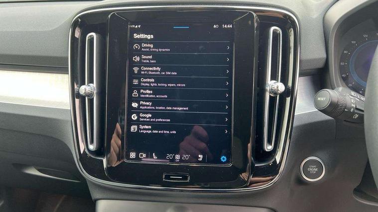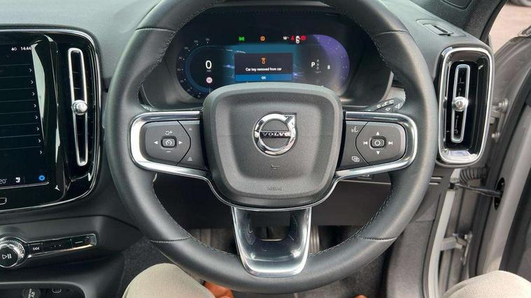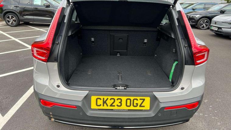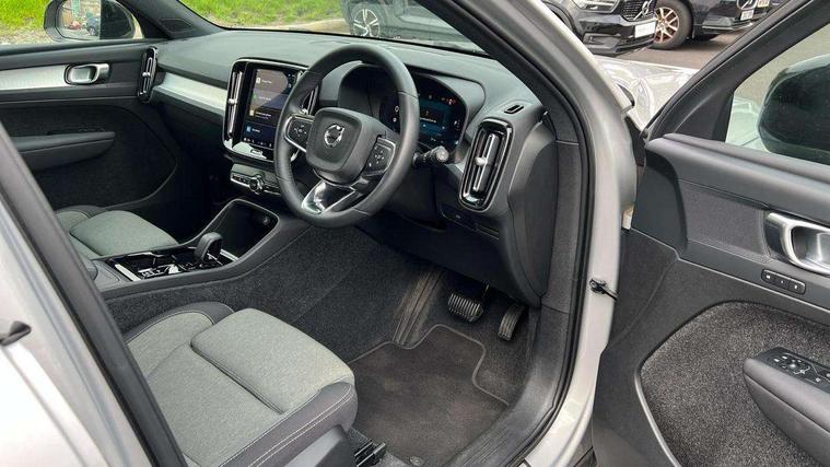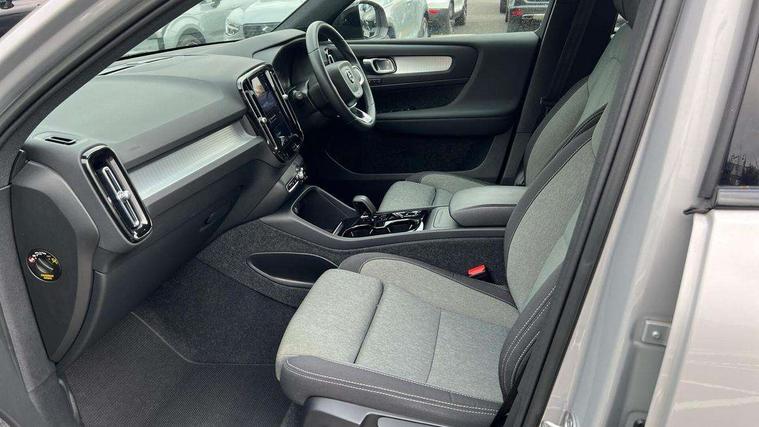 12.3" Progressive Driver Display, 360 degree surround view parking camera with side proximity sensors, 9" centre console portrait touch screen, Adjustable steering wheel force, Bluetooth hands free telephone kit, Cruise control, E-call, Front park assist, Google automatic services - Nav with google maps, apple carplay/android auto, voice recognition with google assistant, Hands free power tailgate, Lane keep assist with driver alert control, Oncoming Lane Mitigation, Rear park assist, Speed limiter, Speed sensitive steering, Wireless/Inductive Mobile Phone Charging, Dynamic chassis, DAB Digital radio, High performance sound, 8 speakers/250W, front USB and 2 rear type C USB, Steering wheel mounted remote controls, Adaptive brake lights with high level LED brake lights, Auto dimming feature for exterior door mirrors, Auto dimming interior mirror, Automatic headlamp levelling, Automatic LED Headlights + Active high beam incorporating daytime running lights, Front aluminium tread plates, Front and rear electric windows, High gloss black front and rear skid plate, High gloss black mesh front grille with high gloss black surround, High gloss black window trim, Home safe and approach lighting, Integrated roof rails in high gloss black, LED front fog lights, Puddle lights, Rain sensor with automatic windscreen wiper activation, Rear side wing doors, Rear wiper, Roof antenna, Roof spoiler, Visible VIN plate, 12V socket in front tunnel console and luggage compartment, 2-Zone electronic climate control with CleanZone air quality system and pollen filter, 3 seat bench in 2nd row, 3 Spoke tailored steering wheel with chrome trim, 60/40 versatile split folding rear seat, A-pillar parking ticket holder, Ambient front door and instrumental panel lighting, Centre console cupholders and storage, Flexible load floor and grocery bag holder, Floor mats, Front door pocket and front cupholder illumination, Front footwell illumination, Front headrests, Front reading light and theatre lighting, Front seat cushion extensions, Front tunnel pocket, Glovebox bag hook, Heated front seats, Height adjustable passenger seat, Height/reach adjustable steering column, High gloss centre tunnel deco, Illuminated glovebox, Illuminated luggage compartment, Illuminated tailgate, Illuminated vanity mirrors, Integrated waste bin, Isofix attachments on outer rear seats, Load protection net, Multi directional lumbar support, Power driver seat with memory + exterior mirrors memory, Rear armrest / integral cup holders / storage tray, Rear headrests, Rear reading and courtesy lights, Single front passenger seat, Underfloor cargo storage, Climate pack without heated front seats - XC40, 3x3 point rear seatbelts, City safety with steering support with Pedestrian + cyclist + front collision warning with full auto brake and rear auto brake, Drivers knee airbag, Dual stage driver/passenger airbags, Electronic parking brake with auto hold, First aid kit, Front and outer rear seatbelt reminder and pretensioners, Front seats SIPS airbags, Hill descent control, Hill start assist, Inflatable curtain, Passenger airbag cut-off device, Power child locks on rear doors, Road sign information display, Run off Road Mitigation, Run off Road Protection, SIPS (Side Impact Protection System), Slippery road and hazard light alert, Stability and Traction Control with Spin control, Engine Drag Control and Corner Traction Control, Tyre pressure monitoring system, Vehicle deceleration control with Anti-lock Brake System, Electronic Brake Distribution and Emergency Brake Assist, Warning triangle, WHIPS whiplash protection system - front, Anti-theft alarm including immobiliser/volume sensor + level sensor, Key integrated remote control central locking + fuel flap with deadlocking system and auto open/close power windows, Keyless drive includes keyless entry and keyless start, Locking wheel nuts,