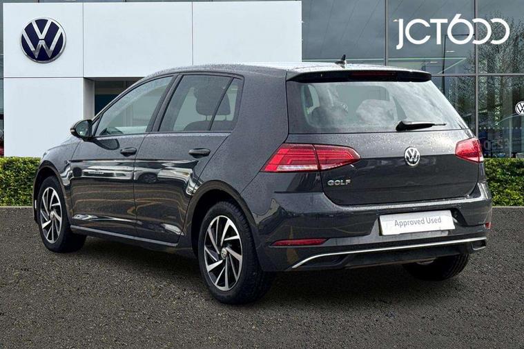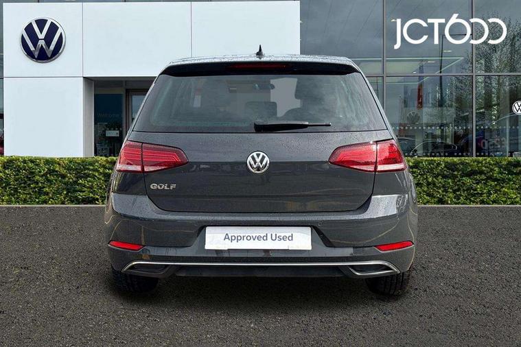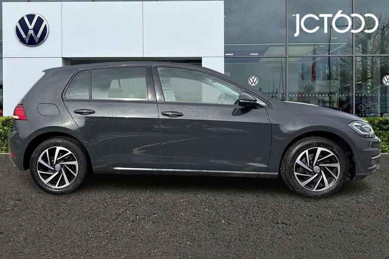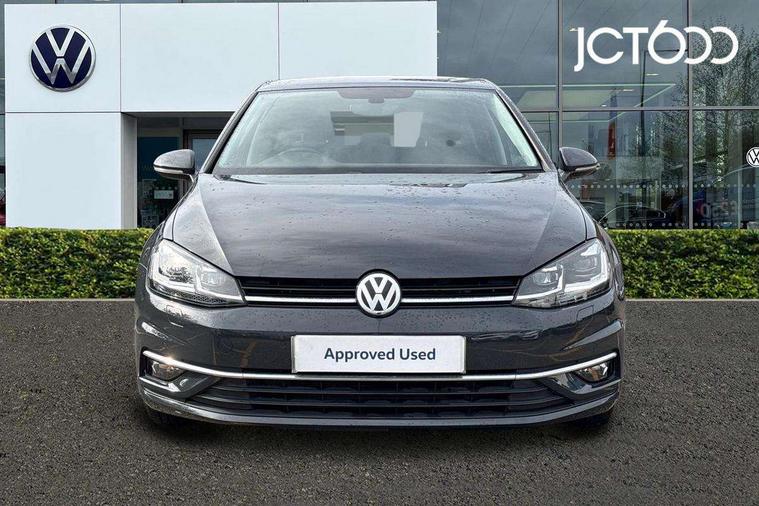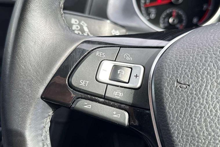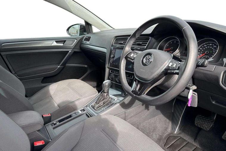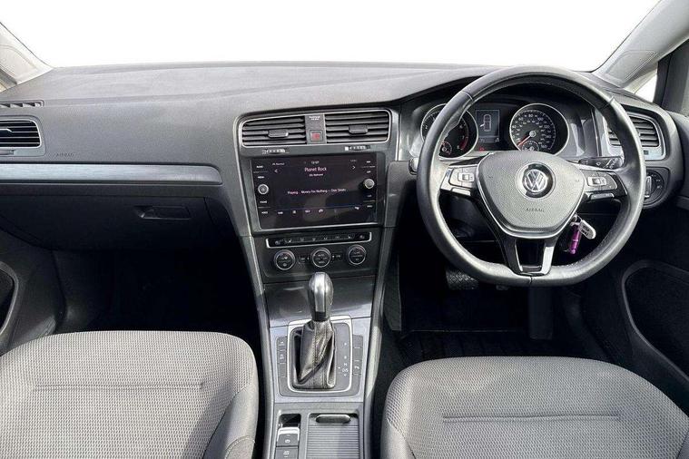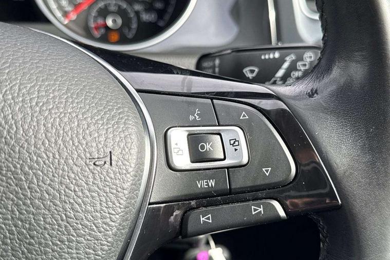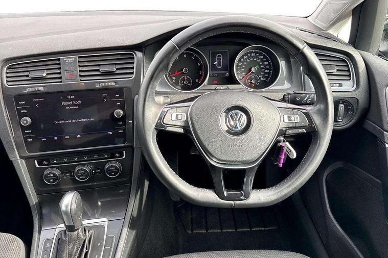 'Lights On' Reminder warning buzzer, ACC - Adaptive cruise control with front assist, forward collision warning, distance monitoring, city emergency brake and speed limiter, Bluetooth telephone and audio connection for compatible devices, Brake pad wear indicator warning light, Driver alert system, Driving Mode Selection with four preset modes - Eco, normal, sport or individual modes, Multifunction computer with visual gear change recommendation for fuel consumption, Power assisted speed sensitive electro-mechanical steering, Push tank flap, Speed limit display, Speedo, rev counter, electronic odometer, trip, service interval display, exterior temperature and fuel gauge, Stop/start system, Think blue trainer driver tips and journey analysis, Warning buzzer and light for front seatbelts unfastened, Battery regeneration during braking, XDS electronic differential lock, Composition media system, DAB Digital radio receiver, Driver Personalisation profile selection, MP3/WMA compatability, Multi device interface (MDI) via USB connection, Premium USB cable in choice of either Apple or Android smartphone compatibility, SMS Functionality, Title and cover art display, USB and SD card connectivity, Volkswagen media control, Black front air intake and radiator grille with chrome insert, Black rear diffuser, Body colour bumpers, Body colour door handles, Body colour door mirrors with integrated indicators, Dusk sensor + automatic driving lights, Electric front windows, Electric rear windows, Electrically adjustable and heated door mirrors, Fully galvanised body, Heated rear windscreen, High level 3rd brake light incorporating LED Technology, LED front fog lights with static cornering light function, Range adjustable headlights via infotainment system with LED daytime running lights, Rear fog lamp, Rear number plate lights incorporating LED technology, Rear tinted glass 65% light absorbing from B pillar backwards, Rear window aerial, Rear window wash/wipe with intermittent wipe, Reflectors in all doors, Tailgate with integrated rear roof spoiler, Windscreen wipers/ intermittent wipe + 4 position delay, 12V socket in luggage compartment, 3 rear headrests, 4 load lashing points in luggage compartment, 60/40 split folding rear seat backrest, Bag hook in luggage compartment x 2, Climate control - 2 zone electronic air conditioning with automatic air recirculation and allergy filter, Cooled glovebox, Cover for storage compartment in centre, Dust/pollen filter, Front and rear reading lights X 2, Front centre armrest with storage compartment and two rear air vents, Front seat back storage pockets, Grab handles front x 2, rear x 2 with integrated coat hooks, Height and reach adjustable steering wheel, Illuminated vanity mirrors, Instrument lighting white adjustable panel illumination, Interior light delay, Isofix preparation for 2 rear child seats, Load through provision with rear centre armrest and cupholders x2, Luggage compartment lighting, Overhead storage box, Pearl grey headlining, Storage box in luggage compartment, Storage compartment in roof console with cover, Storage compartments in centre console, Storage compartments in front doors, Storage compartments in rear doors, Stowable luggage compartment cover, Sun visors, Variable boot floor, height adjustable and removable, Convenience Pack - Golf, Mirror pack - Golf, Winter pack - Golf, 3 rear three point seatbelts, Airbags - Driver's and front passenger's, curtain airbag, Driver's knee, front side impact and passenger's airbag deactivation switch, Anti-lock Braking System (ABS) with Hydraulic Brake Assist (HBA), Automatic post collision braking system, Child locks on rear doors, Driver/Passenger optimised head restraints, Electronic parking brake with auto hold, Electronic stability control (ESC) including Electronic differential lock (EDL) and ASR (Traction control) with deactivation via infotainment system, Front ventilated disc brakes and rear disc brakes, Pre crash preventive occupant protection, Three point height adjustable front seatbelts with tensioners, Tyre pressure loss indicator, Alarm with interior protection and deactivation via infotainment system, Electronic engine immobiliser, Brushed dark silver decorative inserts in dash and door panels, Chrome plated air vent surround, Chrome-plated light switch surround, Polar night black decorative inserts in centre console, Steel space saver spare wheel,