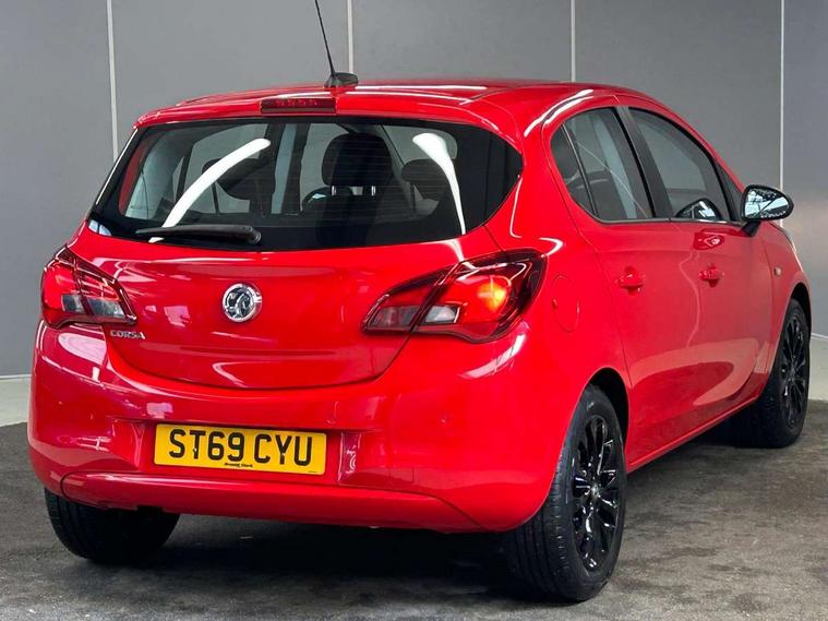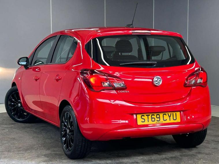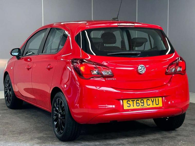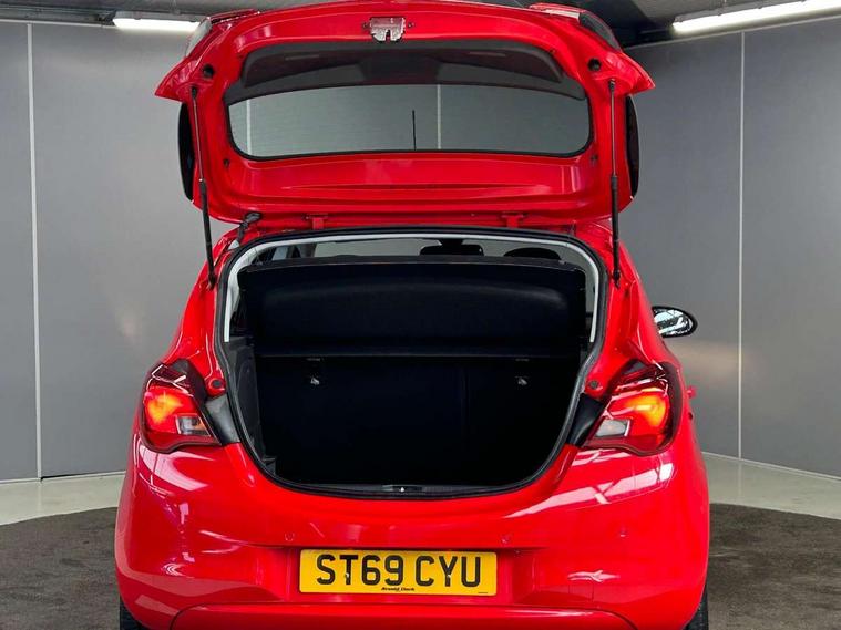 Apple car play/Android Auto, Central facia display, Cruise control + speed limiter, Digital fuel gauge with low fuel warning light, Digital water temperature gauge, Electric speed sensitive power steering, Exterior temperature gauge, Front and rear parking distance sensors with audible warning and distance warning graphic, Lights on audible warning, Multi function trip computer, Navi 4.0 IntelliLink navigation with 7" touchscreen, traffic program, DAB , USB, Bluetooth audio streaming, Apple CarPlay/Android auto, and microphone, Rev counter, Service indicator, Speed warning indicator, Speedometer, White graphics on black background, Front anti roll bar, Steering wheel mounted audio/cruise controls, Black door mirrors, Black foil on B-pillars, Body colour bumpers, Body colour door handles, Chrome effect lower side window mouldings, Chrome front grille, Dipping rear view mirror, Door to door illumination, Electric adjustable/manual folding heated door mirrors (wide angle on driver's side), Electric headlight beam leveling, Electrically operated front windows with safety auto reverse/one touch facility, Front fog lights with black surround, Halogen headlights with halogen signature daytime running lights, Hazard warning lamps, Headlamp levelling, Heated rear window, Heated windscreen, High level LED centre brake light, Intermittent rear wash/wipe, Laminated windscreen, Rear fog lights, Rear wiper, Side window demist vents, Two speed windscreen wipers with variable intermittent wipe, Welcome lighting, Windscreen demist vents, 12V electrical accessory socket in front, 3 spoke steering wheel, 60/40 split folding rear seat, Anti submarining ramps in all seats, Centre console with cupholders, Chrome gear knob, Chrome interior door handles, Cloth upholstery, Comfort front seats, Driver's and front passenger's sunvisors, Driver's and front passenger's tiltable assist handles, Driver's and passenger's vanity mirrors with flip up cover, Driver's vanity mirror, Four adjustable facia vents, Front courtesy lights, Front door pockets, Front map reading lights, Front seat belt pre-tensioners with load limiters, Glovebox with lid, Grab handles, Height adjustable driver's seat, Height adjustable front headrests, Height adjustable rear head restraints with adjustable backrest, Illuminated luggage compartment, Instrument panel light dimmer, Interior tailgate handles, Isofix child seat mounting points on outer rear seats, Load restraining lashing points, Luggage compartment cover, Multi function steering wheel, Passenger make up mirror, Pollen filter, Reach + rake adjustable steering column, Rear courtesy lights, Rear door pockets, Rear reading lights, Reclining front seats, Storage box on driver's side lower facia, Storage pockets on front seat backs, Stowage facility for luggage compartment cover behind rear seats, Twin gas assisted tailgate struts, Sight and light Pack - Corsa, Winter pack - Corsa, Anti-lock braking system (ABS), Brake assist function, Electronic brake force distribution, Electronic Stability Programme, Energy absorbing steering column, Front and rear seatbelt reminder, Front and rear seatbelt unfastened audible warning and warning light, Front seatbelt force limiters, Gas pressure dampers, Height adjustable front seatbelts, Hill start assist, Passenger airbag deactivation system, Pedal release system, Rear child proof door locks, Reinforced passenger safety cell, Side impact protection beams, Six airbags - Driver's dual stage airbag/front passenger's dual stage airbag/front seat side impact airbags/full size curtain airbags, Three 3 point rear seatbelts, Three inertia reel lap/diagonal seatbelts, Traction control, Tyre pressure monitoring system, Electronically protected audio, Engine Immobiliser & Deadlocks, Key left in ignition audible warning, Locking wheel bolts, Remote control central locking, Visible vehicle identification number, Rhutenium facia with chrome effect inserts, Low rolling resistance tyres,