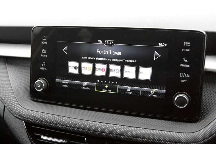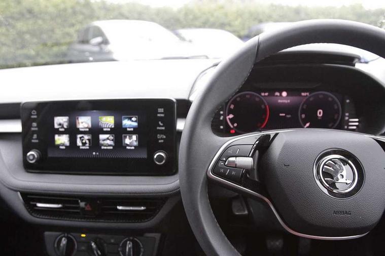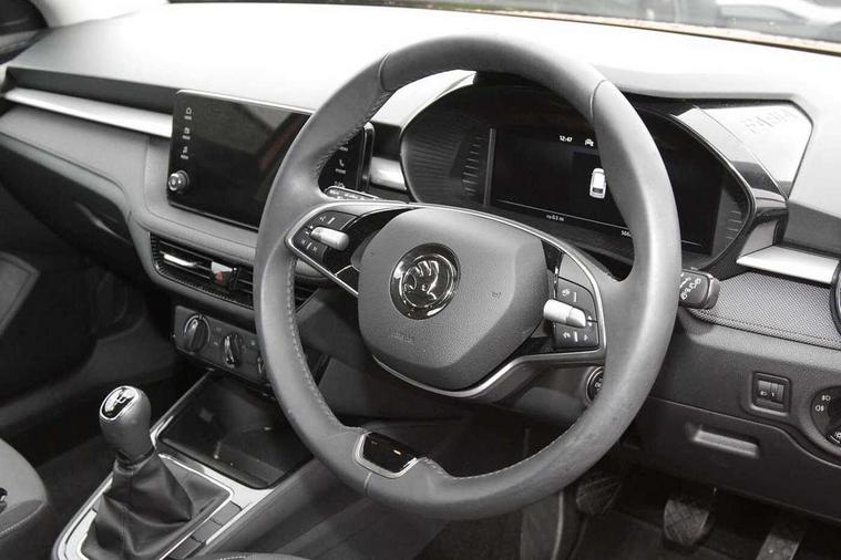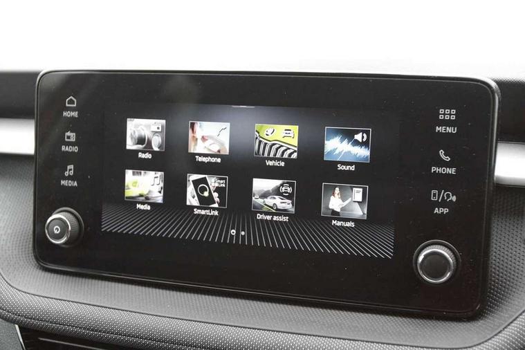 Advanced driver attention and drowsiness monitor, Bluetooth connection, Electromechanical power steering, Exterior temperature gauge, Service interval indicator, Traffic sign recognition, Virtual cockpit with 10.25" colour display, Wireless SmartLink for Apple CarPlay and Android Auto, 6 Speakers (4 in front and 2 in rear), Auxiliary socket for external MP3 player, DAB digital radio reception, Body coloured bumpers, Dimming rear view mirror with black frame, Door mirror integrated indicators, Front and rear electric windows, Front window wiper intermittent control, Headlight range control - Automatic, Ice scraper in fuel cap, LED daytime running lights with coming and leaving home feature, LED rear lights, Privacy glass, Rear LED fog light, Rear side wing doors, Rear window wiper with washing nozzles, Roof mounted spoiler, SKODA tailgate lettering in chrome, Third brake light, 2 reading lights in front and 2 reading lights in rear, 3 rear headrests, Backrest split and folding, Central console with removable cup holder and storage box, Chrome handbrake release button, Fabric upholstery, Front centre armrest, Gearshift knob/handle in leather, Grain satin black interior door handles, Hand brake lever handle in leather, Height adjustable front headrests, Height adjustable front seats, Height adjustable steering wheel, ISOFIX and TopTether anchorage points to the outer rear seats, ISOFIX and TopTether on the front passenger seat, Luggage compartment lighting, Manually adjustable lumbar support in front seats, Pollen filter, Rear seat bench unsplit, Single front passenger seat, Storm grey headlining, Sun visors with mirror and airbag label on passenger side, Textile floor mats, Ticket holder, Umbrella in drivers door, 3-point height adjustable front seats belts with pretensioner and force limiter, Automatic warning lights in case of crash, Driver and passengers airbag with switch off function, e-Call+, ESC including ABS, MSR, ASR, EDS, HBA and XDS, Front and rear seat belt warning, FRONT ASSIST (AEB City and AEB Inter Urban), Front side airbags, Head airbags, One tone horn, Pedestrian protection, Three rear 3-points safety seat belts with pretensioner and force limiter including stop function for outer rear seat belts, Tyre pressure monitoring system, Anti-theft alarm system including immobiliser, interior monitoring, backup horn, and towing protection, Central locking with radio remote control, interior controls, SAFE function and 2 foldable keys, Colour Edition air vents, Grain satin black central console cover, Metallic grey upper decorative trim, Satin black door and side trim panel in front, Textile Kota grey lower decorative inserts, Anti-theft wheel bolts protection, Super-low rolling resistance tyres,