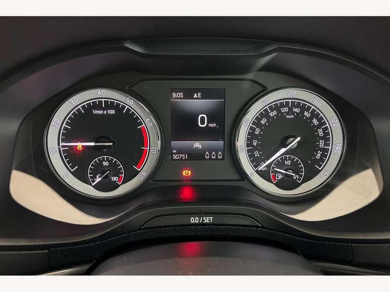 Drive mode selector, Driver alert system, Driver fatigue sensor, Driver profile selection, Electro-mechanical PAS, Multifunction colour trip computer, Outside temperature gauge, Rear view camera, Service interval indicator, Start/stop system with regenerative braking, DAB radio with Bluetooth, SD card slot, USB connection, Acoustic glass, Aero front windscreen wipers with intermittent function, Automatic headlight control system, Body colour door mirrors and handles, Body coloured bumpers, Chrome outside aluminium bar around the window, Chrome roof rails, Electric front and rear windows with child proof lock, Full LED headlights + adaptive front light system + LED daytime running lights and front cornering fog lights, Headlight washers, Heated rear windscreen, LED rear lights with high functionality, Light assistant (coming/leaving home/tunnel light), Privacy glass, Safety reflectors on front doors, Third brake light, 1.5 litre bottle holders in driver and front passenger door panels, 12V socket in boot, 12v socket in front centre armrest with storage compartment and rear air vents, 2 Folding hooks and nets in boot, 2 Front readings lights for driver and passenger, 3 rear height adjustable headrests, 4 foldable roof handles with rear coat hooks, 4 lashing points on luggage floor, Backrest release, Cargo elements in boot, Chrome inner door handles, Dual zone climate control, Folding tables on the front seat backrests, Front seat and rear pockets, Height adjustable front three point seats belts with tensioners, Height adjustable passenger seat, Height/reach adjust steering wheel, Ice scraper, Illuminated and cooled glovebox, Illuminated luggage compartment, Isofix child seat preparation outer rear, Net programme in boot, Pen holder, Pollen filter, Rear boot cover, Rear reading lights, Rear seats fixed folding and divided 60:40, Removable LED torch in the boot, Retractable parcel shelf attachable to tailgate, Safety vest holder, Storage box in upper central dashboard closed, Storage compartment below the passenger seat, Storage net on centre console passenger side, Sunglasses storage compartment, Sunvisors with illuminated vanity mirrors, Textile floor mats, Umbrella under passenger seat, VarioFlex seats with retractable parcel shelf, Airbags - Front side, head, knee and curtain, Automatic door unlocking in case of crash, Automatic fuel cut off in case of crash, Driver airbag, Electronic parking brake with auto hold function, Emergency rear braking signal, ESC including ABS, MSR, ASR, EDS, HBA, DSR, RBS, MKB and traction control, Front assist radar scanning of the space in front of the car with automatic braking, Hill hold control, Passenger airbag with switch-off function, Pedestrian monitor, Seatbelt reminder signalisation and pretensioner for all seats, Three point seatbelts rear, Two tone horn, Tyre pressure display, Tyre pressure monitor, Alarm with interior monitoring, back up horn and tilt sensor with safe function, Electronic engine immobiliser, Keyless entry and keyless start with safe system, Remote central locking with 2 remote folding keys, Chrome framed air vents, Storage on wheel cover,