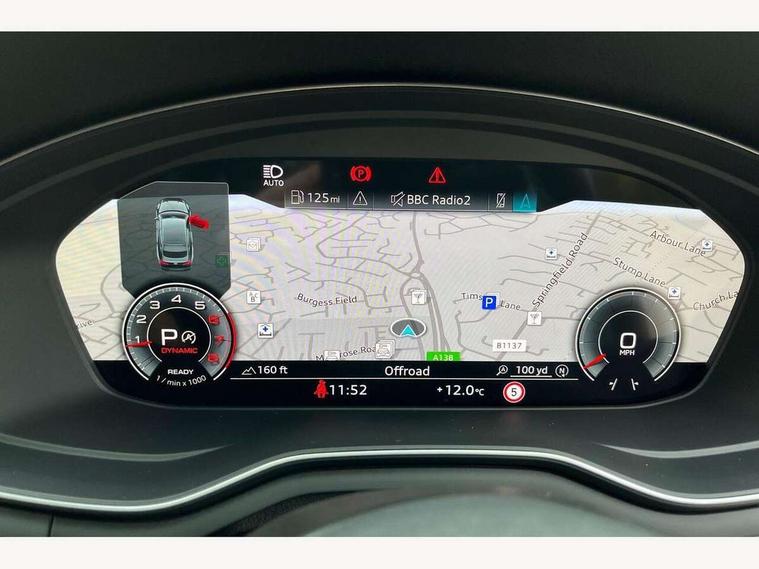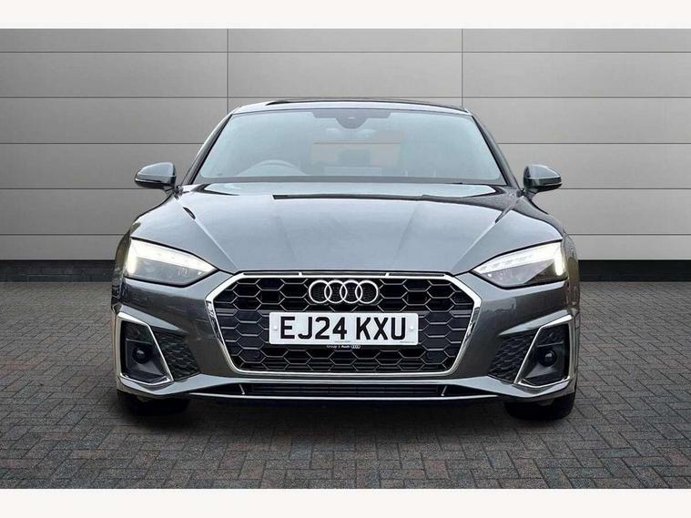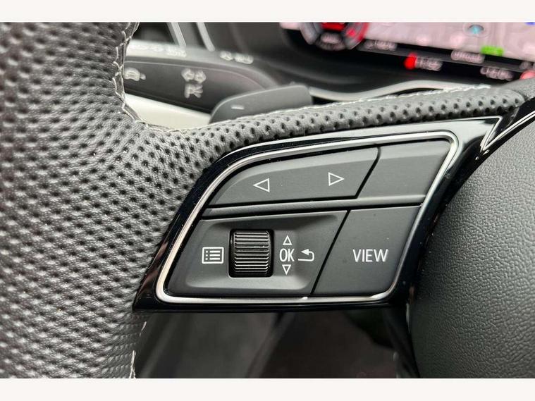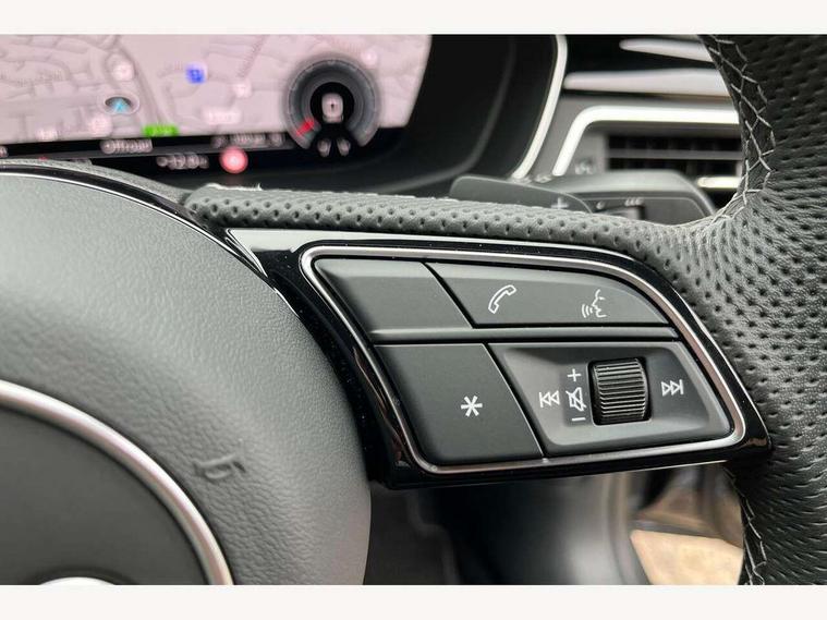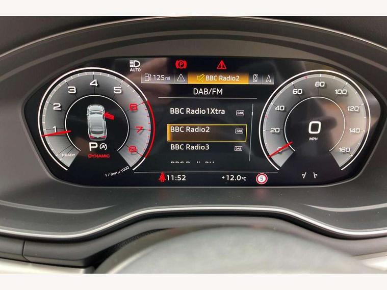 Audi connect safety and service (e-call), Audi drive select (Auto, Comfort, Dynamic, Efficiency and Individual), Audi smartphone interface, Audi virtual cockpit - 12.3" full colour digital instrument cluster, vehicle/engine speed, Radio/media information+Driver assistance systems, Automatic start-stop system with coasting functionality and efficiency programme, Bluetooth interface, Camera based traffic sign recognition, Electro-mechanical power steering, Email, calendar and text messages displayed via MMI, Front and rear parking sensors, Lane departure warning, MMI nav+ with MMI touch - 10.1" high resolution MMI display, touch sensitive, 3D map, route/country info, dynamic route guide, personal route assist, Power operated tailgate, Rear view camera, Service interval indicator, Voice control system, 54 litre fuel tank, Sports suspension lowered by 23mm, 8 passive loudspeakers, CD player, DAB digital radio reception, Two additional USB ports for rear passenger in rear centre console, Two SDXC card slots, Auto dimming door mirrors, Auto dimming rear view mirror, Body colour bumpers, Body colour door handles, Body colour front spoiler lip, Body colour side sill trim, Body coloured door mirrors, Electric adjustable heated door mirrors, Electric folding door mirrors, Electric front windows, Front fog lights, Honeycomb structure radiator grille in grained matt black, Kerb-view function for passenger side, LED headlights and rear lights with LED daytime running lights, LED side indicator lights integrated into door mirrors, LED third brake light, Matt aluminium silver tailpipe trim, Privacy glass, Rain and light sensors, Rear side wing doors, Rear wiper, S line badges on front wings, S line front and rear bumpers with side skirts, S Line rear diffuser in matt anthracite black with trim strip in matt aluminium silver, Side air inlets in grained matt black with matt aluminium silver inlay, Variable front intermittent wipers, Windscreen with acoustic glazing, 3 seat bench in 2nd row, 3 spoke high multifunction leather sport steering wheel with paddle shfit and S badging perforated leather grips, 4 way electric lumbar support for driver and front passenger, 40/20/40 split folding 3 seater rear bench seat, Adjustable steering column, Black carpets, Black cloth headlining, Black perforated leather gearknob, Contrast stitching on seats, steering wheel and gear lever gaiter, Deluxe 3 zone electronic climate control, Front centre armrest, Front head restraints, Front/rear floor mats, Heated front seats, Illuminated front door sill trim with S logo, ISOFIX child seat mounting and top tether, Luggage compartment mat, Manual seat adjustment, Rear centre armrest, Rear headrests, Single front passenger seat, Stainless steel pedals and footrest, Sunvisors with vanity mirrors, LED interior light pack - A5/RS5, 3x3 point rear seatbelts, 6 airbags - Driver, front passenger, curtain and side airbags, Attention and drowsiness assist, Electromechanical parking brake, Electronic Stabilisation Control (ESC) including ABS, ASR and EDL, Front passenger airbag deactivation, Height adjustable front seatbelts, Hill hold assist, Manual child lock in rear doors, Multi collision brake assist, Pop-up bonnet for pedestrian protection, Pre sense city, Seatbelt monitoring, Tyre pressure warning, Variable restraint system, Warning triangle and first aid kit, Anti theft alarm system, Anti theft wheel bolts, Immobiliser, Keyless Go, Remote central locking, Matt brushed aluminium inlays, Tool kit, Tyre repair kit,