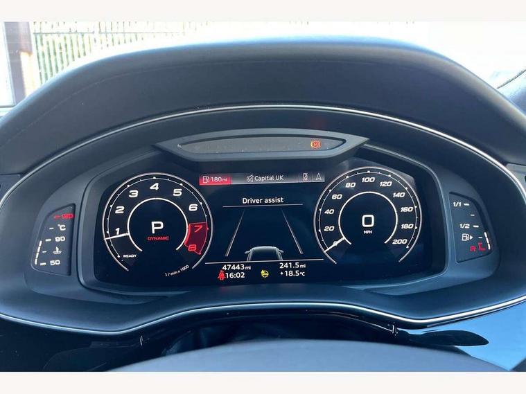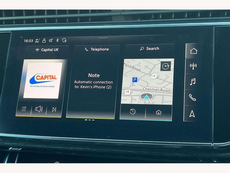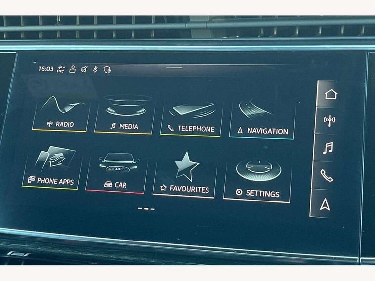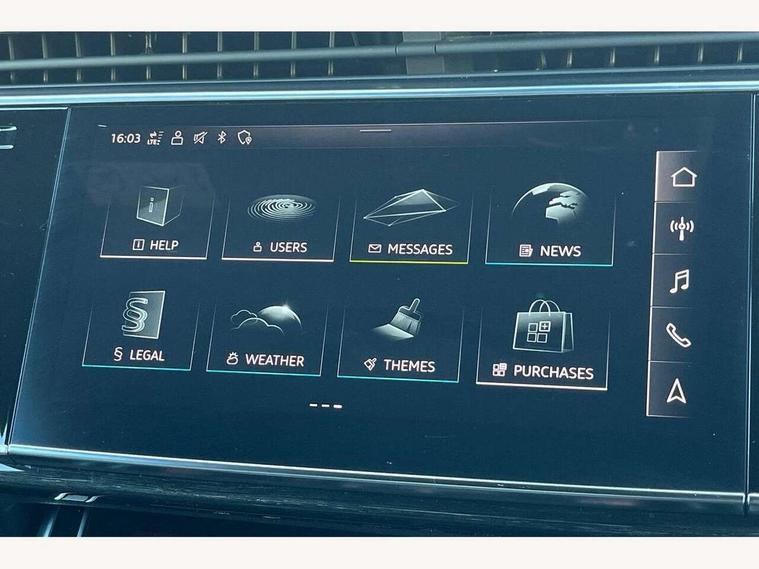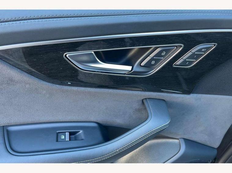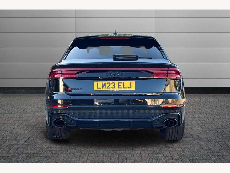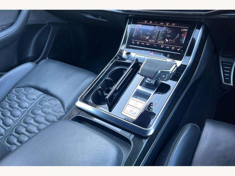 10.1" and 8.6" Dual colour touchscreens, 2 USB ports with charge and data functions in the rear, All wheel steering, Audi connect safety and service (e-call), Audi connect with Amazon Alexa Integration, Audi smartphone interface includes wireless Apple carplay/Android Auto, Audi virtual cockpit - 12.3" high resolution LCD display with fully customisable instrument cluster and RS specific menus and options, Automatic start/stop system, Bluetooth interface, Electro-mechanical PAS, Head up Display, MMI navigation plus with MMI touch, Natural voice recognition, On board computer, Operating buttons in black, glass look with haptic feedback, Power door closure, Power operated tailgate, RS Audi drive select, Service interval indicator, 48V Mild hybrid technology, Electromechanical active roll stabilisation, Quattro all wheel drive with sport differential, RS specific Adaptive air suspension, Audi music interface with 2 USB ports with charge and data functions, Aux-in socket, DAB Digital radio, Adaptive windscreen wipers with integrated washer jets, Audi Beam uses LEDs to project Vorsprung logo, Audi HD Matrix LED headlights in RS specific design with dynamic front and rear indicators, Auto dimming frameless rear view mirror, Electric front+rear windows, Electric panoramic glass sunroof, Electrically folding auto dimming/adjustable/heated door mirrors with memory function, LED side indicators and kerb view function for passenger side, Gloss black finish for exterior Audi rings and RS Q8 logo, Headlight washers, Heat insulating glass in windshield, Illuminated door sill trims with RS logo, LED 3rd brake light, LED signature daytime running lights, Privacy glass - dark tinted rear and rear side windows from B-pillar backwards, Rain and light sensors, Rear side wing doors, Rear wiper, RS badges on front wings, RS coming/leaving home animations in front and rear, RS manhattan grey front spoiler lip and rear diffuser insert, RS manhattan grey grille surround with honeycomb grille insert in black, RS specific bumpers in full body colour paint finish, RS sport exhaust system with black exhaust tips, 3 bench rear seats in 2nd row, 4 zone automatic climate control, 4-way lumbar support for front seats, 40:20:40 split folding rear bench seat, Black dinamica headlining, Comfort front centre armrest, Double sun visor with illuminated vanity mirror on driver and passenger side extendable, Driver and front passenger seat memory function for electrically adjustable front seats, Electric adjustable steering column with memory functionality, Electric sunblind for the rear side windows and manual sunblind for the rear window, Front head restraints, ISOFIX child seat mounting for front passenger seat and 2 outer rear seats with top tether child seat mounting for all 3 rear seats, Luggage compartment sill protection in stainless steel, Massage and ventilation function for front seats, Perforated Valcona leather upholstery + RS front super sports seats + honeycomb pattern with RS embossed logo, Rear headrests, Rear seat bench plus, Single front passenger seat, Stainless steel pedals, Tool kit, Air quality package - RS Q8, Anthracite black styling pack - RS Q8, City assist pack - Q8, Comfort and sound pack - RS SQ8, Multi-coloured extended LED interior lighting pack - RS Q8, RS specific styling pack - RS Q8, Tour pack - Q8, 3 point seatbelts on all seats, Audi pre sense front, Child locks on rear doors, Driver and front passenger, front side and curtain airbags, Electromechanical parking brake, Electronic Stability Control (ESC) including ABS, ASR and EDL, Front passenger airbag deactivation, Hill descent control, Hill hold assist, Predictive pedestrian protection, Seatbelt monitoring, Tyre pressure loss indicator, Warning triangle and first aid kit, Advanced key, Anti theft alarm with tow away protection, Anti-theft wheel bolts and wheel loosening detection, Immobiliser, 23" x 10.5J 5 Y spoke rotor design Audi sport alloy wheels in gloss anthracite black with diamond finish, Tyre repair kit,