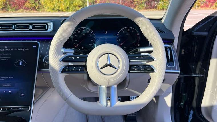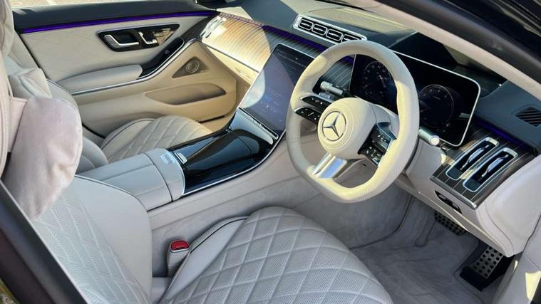 12.3" 3D driver display, 12.8" OLED central display, 5G Communications module, Apple car play/Android Auto, Attention assist, Bluetooth connection, Child presence detection, Crosswind Assist, Direct steering, DYNAMIC SELECT with a choice of driving modes, ECO start/stop function, Extended MBUX functions, Fingerprint scanner, Hands-free access for boot lid, Hard disc navigation, Intelligent parking pilot, MBUX augmented reality for navigation, MBUX augmented reality head-up display, MBUX interior assist - front and rear, MBUX navigation premium, MBUX rear tablet, Mercedes-Benz emergency call, Power closing aid for doors and boot lid, Pre-installation for private car sharing, Preinstallation for Navigation Services, Rear belt status indication in the instrument display, Remote boot lid release and closing, Route based speed adaptation, Service indicator (ASSYST), Wireless charging system for mobile devices in the front, Wireless charging system for mobile devices in the rear, Wireless smartphone integration, 76 litre fuel tank, 9G TRONIC 9 speed automatic transmission, Airmatic air suspension, Burmester 3D surround sound system, DAB Digital radio, Front 2x USB type-C ports, Rear 2x USB type-C ports, Sound personalisation, Adaptive brake lights, AMG front apron in A-wing design with large air intakes and fins in chrome plus front splitter in chrome, AMG rear apron with diffuser and trim element in chrome, Automatic headlights, Automatically dimming rear view mirror, Digital light - LED headlight, adaptive highbeam, cornering and active light, enhanced fog light, city, country road mode, weather and LED rear lamp, Electrically adjustable, heated and automatic dimming driver side exterior mirrors with kerb/parking function, Exterior mirror - Ambient lighting with projection of brand logo, Front and rear electric windows, Heat insulating, dark tinted noise insulating and infrared reflecting laminated glass, Heated windscreen, Illuminated door sill panels with Mercedes-Benz lettering, LED daytime running lights, LED third brake light, Magic vision control, Panoramic sliding sunroof, Privacy glass, Radiator grille with chrome surround and three horizontal cross struts in chrome with inserts in high-gloss black, Rear boot, Rear side wing doors, Shoulderline trim strip in chrome, Side sill panels with chrome insert, Visible tailpipe trim elements in chrome, 12V socket in boot, 12V socket in rear centre console plus in the front passenger footwell, 3 seat bench in 2nd row, 3 twin spoke flattened bottom multifunction sports steering wheel in nappa leather with silver chrome shift paddles, 4 way electrically adjustable lumbar support for driver and front passenger, Active ambient lighting 64 colours with 10 colour schemes, Adaptive rear compartment lighting, AMG floor mats, AMG pedals in brushed stainless steel with rubber studs, Automatic child seat recognition sensor, Belt feeders in the rear, Centre console in black crystal look finish, Climatised front seats, Climatised rear seats, Double sun visors with pivoting section to cover the side window, Driver and front passenger seat heating plus, EASY ADJUST luxury head restraints with additional cushion for driver and front passenger, foldable and removable on front passenger side, Easy entry system for driver, Electric rear window sunblinds, Electric sunblinds in rear doors, left and right, Electrically adjustable rear seats including memory function, Energizing Air Control - Air quality and fine particle sensor, Fabric roof liner, Front passenger side seat electrically adjustable from the rear, Luxury rear head restraints with extra cushion, Rear centre armrest with double cup holder and trim element, Single front passenger seat, Steering column gear selector, Steering wheel heating, Thermotronic automatic 4 zone climate control, Through loading system, Two bag hooks, Active multicontour seat pack - S Class, Chauffeur pack - S Class, Driving assistance package - S Class, Memory pack - S Class, Parking package with 360 degree camera - S Class, USB pack plus - S Class, Warmth comfort package - S Class, Anti lock braking system (ABS) with brake assist, Brake pad wear indicator front brakes, Centre airbag, Child locks on rear doors, Driver/Front Passenger airbags, Electric parking brake, Electronic stability programme with acceleration skid control, First aid kit, Forward facing rear airbags, Front and rear illuminated designer belt buckles, Front large compound brake discs 390x36mm internally ventilated and perforated, Front side airbags, Grey painted brake callipers with Mercedes-Benz lettering at the front, grey logo badge at the rear, i-Size and ISOFIX rear child restraint system, Pedestrian protection, Pre-safe system including pre-safe sound, Rear larger compound brake discs 360x26mm internally ventilated and perforated, Rear side airbags, Three 3 point rear seatbelts, Tyre pressure loss warning system, Window airbags, Dashcam, Guard 360 degree vehicle protection plus, Increased anti-theft protection, KEYLESS-GO starting function with seamless door handles, Locking wheel nuts, Remote central locking, Noise reduced tyre with foam absorber, Summer tyres, Tirefit sealant kit,