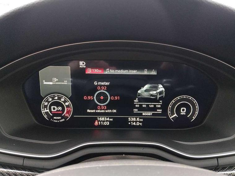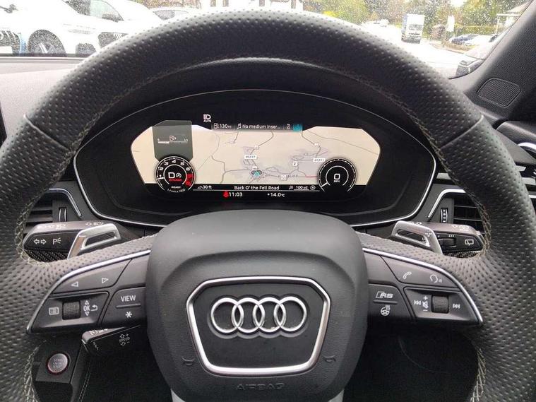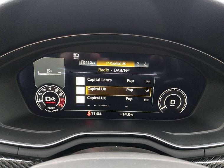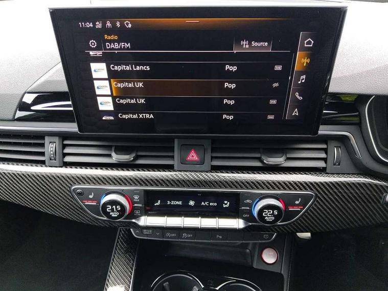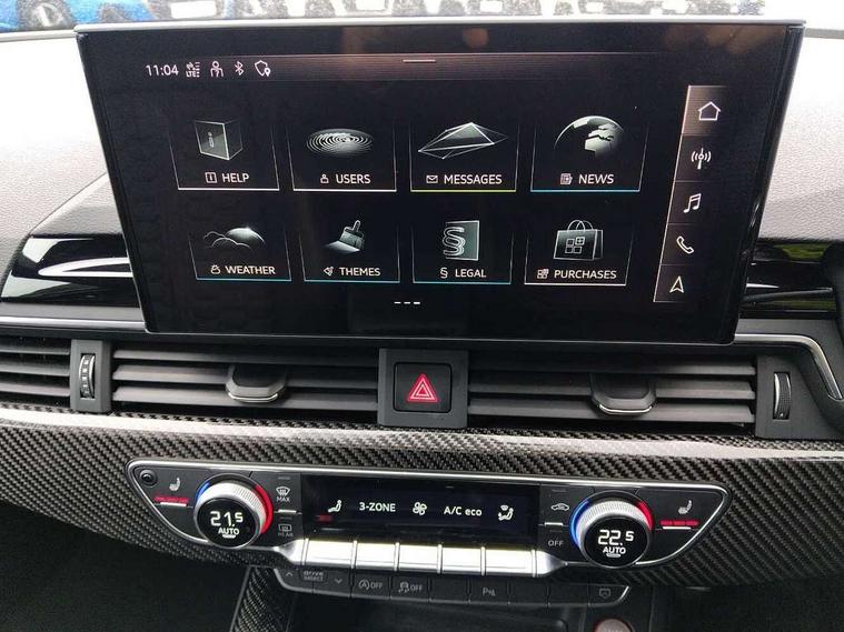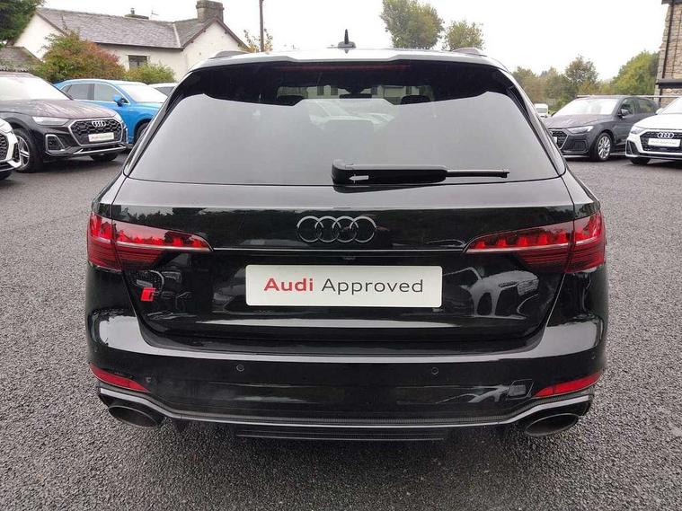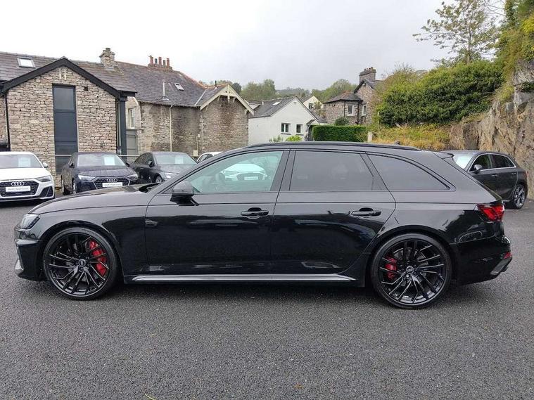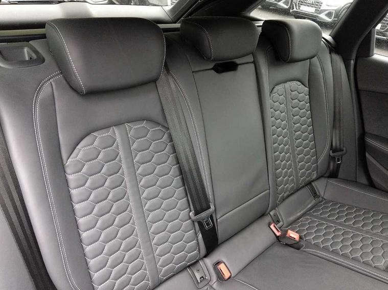 7" Colour driver information system, Audi connect safety and service (e-call), Audi drive select, Audi side assist, Audi smartphone interface, Audi virtual cockpit with RS specific display, Automatic start-stop system with coasting functionality and efficiency programme, Bluetooth interface, Camera based traffic sign recognition, Electromechanical power steering, Email, calendar and text messages displayed via MMI, Lane departure warning, MMI Navigation plus with MMI touch includes 10.1" high resolution colour MMI display, 3D map, Power opening/closing tailgate, Service interval indicator, Voice control system, 58 Litre fuel tank, Quattro sports differential, 2 USB charging ports, Audi sound system, DAB digital radio module, 3rd brake light, Acoustic windscreen, Audi Beam uses LEDs to project the RS logo onto ground as you exit your RS4, Audi matrix LED headlights with LED rear lights + dynamic front and rear indicators, Audi rings and lettering glossy black, Auto dimming rear view mirror, Automatic headlights + automatic windscreen wipers, Black roof rails, Blue tinted glass, Body colour door handles, Electric front windows, Electric rear windows, Electrically folding auto dimming/adjustable/heated door mirrors with memory function, LED side indicators and kerb view function for passenger side, Flared front and rear wheel arches, Front bumper with enlarged air inlets, Headlight range control, High beam assistant, High gloss black door mirror housing, High gloss black triangular aperture at rear door, Honeycomb design grille with quattro logo, Lateral air inlets next to front headlights, LED daytime running lights, LED indicators in door mirrors, Privacy glass with rear acoustic glazing, Rain and light sensors, Rear side wing doors, Rear wiper, Roof spoiler, RS 4 badges on grille and rear, RS4 dual branch chrome tailpipes with left and right oval pipes, 3 seat bench in 2nd row, 3 spoke multifunction plus leather steering wheel with heating and RS badging, 40/20/40 split folding rear seats with rear centre armrest, Black cloth headlining, Deluxe 3 zone electronic climate control, Door armrests and knee pad, Electric load area cover, Electrically adjustable front seats, Fine nappa leather with contrast honey comb stitching + super sports seats with pneumatic massage function, Front centre armrest, Front headrests, Front/rear floor mats, Heated front seats, Height and reach adjustable steering wheel with full size airbag, Illuminated door sill trims with RS4 logo, ISOFIX child seat mounting and top tether, Luggage compartment carpet, Perforated leather gear lever knob with contrast stitching, Rear headrests, Retractable load area cover, Single front passenger seat, Stainless steel pedals, Sunvisors with vanity mirrors, Carbon black styling pack - RS4, LED Interior light pack - RS4, Non Smokers pack, 3 point seatbelts on all rear seats, Adaptive driver and front passenger airbags, Attention and drowsiness assist, Electromechanical parking brake, Electronic stabilisation control including ABS, ASR and EDL, Enhanced braking system, Front head airbags, Front seatbelt pretensioners + load limiters, Front side airbags, Hill hold assist, Manual child lock in rear doors, Multi-Collision braking, Pop-up bonnet for pedestrian protection, Pre sense city, Rear side airbags, Seatbelt monitoring, Traction control, Tyre pressure warning, Variable restraint system, Warning triangle and first aid kit, Anti theft alarm, Anti-theft wheel bolts, Immobiliser, Keyless Go, Remote central locking, Remote control key with RS emblem, Carbon twill inlays, 20" 5 segment spoke evo design glossy black sport alloy wheels, Tool kit, Tyre repair kit,