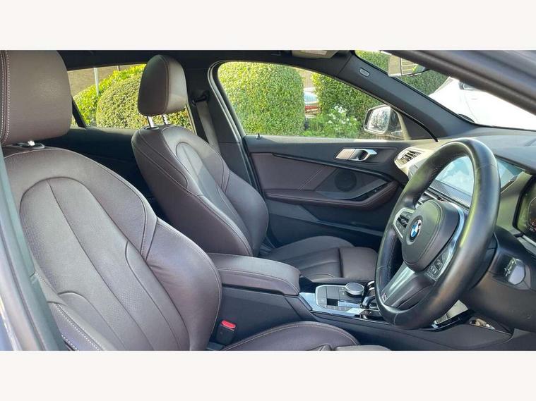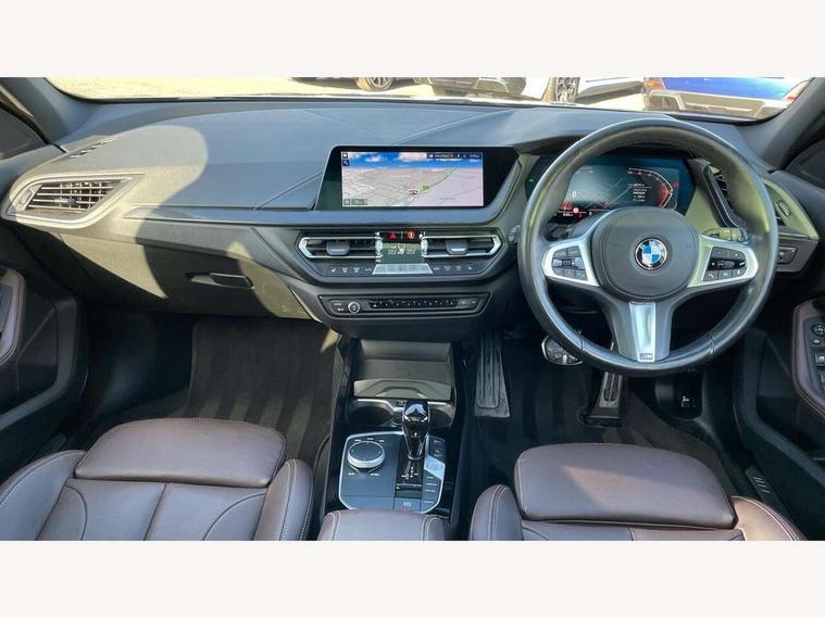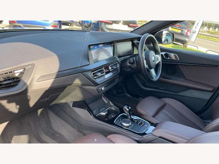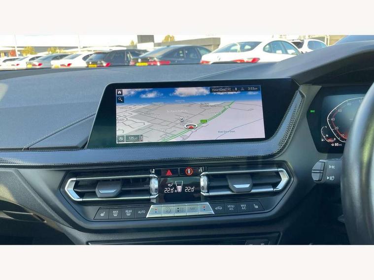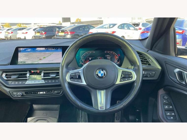 Active guard plus, Attentiveness assist, BMW ConnectedDrive online services, BMW Teleservices, Check Control warning system for monitoring of lights and door/luggage compartment open warning, Cruise control with brake assist, Eco pro mode, Front axle single joint with specific axle kinematics to minimise drive influences on steering + provide increased rigidity agile driving behaviour, Integrated owners handbook, Lane departure warning system, Oil sensor for level and grade, On board computer, Optimum shift indicator, Personal Profile, Pull away assistant, Rigidly mounted rear subframe - Multi link construction with separate spring / damper configuration and excellent driving characteristics, Speed limit Info including no-overtaking indicator, Speed limiter, Aluminium lightweight construction, Anti roll bar front and rear, Balancer shaft, Double VANOS twin scroll turbocharging system, Drive Performance Control, Electronic differential lock, High precision injection, M sport suspension, Petrol Particulate Filter, Twin tube gas filled shock absorbers with degressive characteristic curve, VALVETRONIC engine management, DAB Digital radio, Auto dimming rear view mirror, Automatic headlight beam throw control, Automatic windscreen wipers and automatic headlight, Body colour door handles, Body colour mirror caps, Body colour roof trims, Chrome 'M' logo side designation, Chrome exhaust twin tailpipes round 90mm in left, Chrome kidney grille frame with Satin Aluminium struts, Direction indicator side lights in exterior mirrors, Fading support, Folding side mirrors with auto dimming/folding wing mirrors with auto dimming, Follow me home headlights, Front and rear bumper system with replaceable deformation elements, Front and rear electric windows with open and close fingertip control, anti trap facility and comfort closing, Front door sill finishers in black plastic with M designation in metallic look, Green tinted heat protection glazing, Heated, electrically adjustable exterior mirror aspheric on driver side, convex on passenger side, High gloss shadowline window frame, Recess cover mirror frames and B/C pillar embelisher trim, High level third brake light, Integrated front windscreen with washer jets, LED daytime running lights, LED eyebrow turn indicators, LED front fog lights, LED Headlights, Lightweight engineering, Matt black air guide grilles, Matt black wheel arch trim, Model designation on electric bootlid, Nearside reverse light in rear light cluster, Preparation for high beam assistant, Rear fog lights, Rear side wing doors, Rear window wiper, Shark fin antenna, Trailer stabilisation logic, Visible VIN plate, Welcome lighting, 12V power socket in front centre console with blanking plug, 3 rear seat head restraints, 3 seat bench in 2nd row, 3 spoke sports leather steering wheel with black leather and stitching, pearl chrome decorative finish, specific M Badge, Anthracite headlining, Black boot net with lashing eyes, Cargo function on 2nd seat row, Child seat ISOFIX attachment for two outer rear seats and front passenger seat with anchorage points, Conditioned based service, Driver and front passenger seat heating, Folding rear clothes hook, Four grab handles integrated in roof lining, Front and rear door pockets with bottle holders, Front and rear side armrest integrated into door trim, Front armrest, Front sports seats, Glove compartment, Height adjustable front head restraints, Luggage compartment for bag hooks on left and right, foldable luggage compartment liner and four lashing eyelets, Manual adjust steering wheel, Multi-function controls for steering wheel, Single front passenger seat, Storage compartment in centre console, Sun visors with vanity mirrors and insert tab, Two front centre console cupholders, Two zone automatic air conditioning, Velour floor mats, Additional interior lighting pack - 1 Series, BMW live cockpit professional pack- 1 Series, Connected pack professional - 1 Series, Interior lights pack - 1 Series, M Sport exterior styling aerodynamics pack - 1 Series, 2 tone horn, 3 point seatbelts on all seats, front pyrotechnic belt tensioners, stopper and belt force limiters, rear coded belt buckles, Airbags - Front driver/passenger, front and rear curtain head protection, front side, manual deactivation of front passenger airbag, Anti lock braking system (ABS) with brake assist, BMW emergency call, Brake drying, Braking readiness, Child proof locking system in rear door, City braking function, Comfort modes, Cornering brake control, Crash sensor activating central locking release, hazard warning lights, fuel cut off, interior lighting + activation of safety battery terminal clamp, Driver and front passenger seat belt security check, Dynamic stability control + (DSC+), Dynamic Traction Control - DTC, Electrically operated hand brake including automatic hold function, Front and rear disc brakes, Seatbelt warning, Side impact protection, Tyre pressure monitoring system, Warning triangle and first aid kit, Central locking switch for all doors, fuel filler cap and luggage compartment, Deadlocking function system to all doors, Drive away locking system on all doors and luggage compartment with de-activated in iDrive settings, Locking wheel bolts, Remote control with integrated key with High-gloss Black inlay and M designation and 1 button for open/ close lock, window, open luggage compartment, Start/stop button illuminated in centre console with keyless engine start and auto start stop deactivation button, Thatcham Cat.1 alarm and immobiliser, Wheel slip limitation close to the actuator (ARB), Contrast stitching on instrument panel, Electrically powered 12V compressor, Reduced rolling resistance tyres,