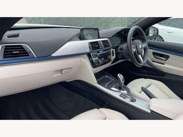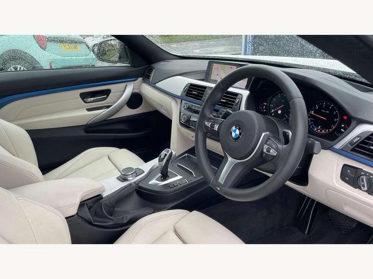 Auto start-stop, BMW Online services, BMW remote services, BMW Teleservices, Brake pad wear indicator in front and rear, Check Control warning system for monitoring of lights and door/luggage compartment open warning, Control display - 6.5" colour display screen, Front/rear park distance control (PDC), iDrive Controller with 8 favourite buttons, Instrument cluster with speedometer with mph readout, tachometer, fuel gauge and oil temperature gauge, Lights on warning by audio warning signal when ignition is switched off, M Sport instrument cluster, Oil sensor for level and grade, warning by check control system, On board computer - average speed, fuel consumption, outside temp display with acoustic warning, clock/date, service interval, odometer/trip meter, Optimum shift indicator, Personal Profile - automatic lock when driving away selectable, Professional multimedia navigation system, Run flat indicator, Aluminium front suspension, Drive performance control with ECO PRO comfort + sport mode, Eight speed sport automatic transmission, Electronic differential lock, Five link rear suspension, Permanent all wheel drive, VALVETRONIC engine management, DAB tuner, Auto dimming rear view mirror, Body colour door handles, Body colour front bumper, Body colour rear bumper, Body colour roof mouldings, Chrome kidney grille with extra wide black, high gloss black vertical slats, Direction indicator, side repeaters, integrated in exterior mirrors, Door sill finishers with M designation, Dual exhaust tailpipes in left with chrome finisher, Dynamic brake lights, Electric front windows with fingertip open/close + anti-trap facility, Follow me home headlights, Front air inlet with high gloss black finish, Front and rear bumper system, Green tinted heat protection glazing, Heated windscreen washer jets, Heated, electrically adjustable exterior mirror aspheric on driver side, convex on passenger side, High gloss black air breather, High gloss black rear bumper insert, High gloss shadow line exterior trim, High level third brake light, LED daytime running lights, LED direction indicator lenses, LED eyebrow light, LED front fog lights, LED tail lights with 3D L-shaped LED light design, Lightweight engineering, M aerodynamic bodystyling, Model designation, Rain sensor including auto headlights activation, Shark fin antenna, Two speed adjustable intervals windscreen wipers, Visible VIN plate, Welcome lighting, Windscreen with grey shadeband, 12V sockets in front centre console and passenger footwell, 3 spoke leather M sport multifunction sports steering wheel, 4 grab handles, Air conditioning and radio control panel in high gloss black, Ambient lighting - switchable BMW classic orange/ cold white LED, Anthracite headlining, Automatic air conditioning with two zone control, Bottle holders integrated into front door trim storage compartments, Chrome centre console panel highlight, Driver and front passenger seat heating, Front and rear side armrests integrated into door trim, Front folding sliding armrest with storage compartment, Front head restraints, Front sports seats, Full black panel display, Glove compartment, Interior lighting, front centre over interior mirror and rear centre automatic interior light activation when door is opened, Load lashing eyes in luggage compartment, Reach + rake manual adjustable steering column, Rear centre armrest with 2 cupholders, Rear child seat isofix attachment with passenger airbag deactivation, Rear coded belt buckles, Rear seat centre armrest with two cupholders, Storage compartment in rear centre console, Sunvisors with vanity mirrors and ticket pocket, Toolkit located in luggage compartment, Two front cup holders with a sliding lid, Two Integrated rear seat headrests, Velour floor mats, Extended lighting package - 4 Series, Non Smokers pack, Airbag - Front driver and passenger, front and rear head, front side, curtain head protection, manual deactivation of front passenger airbag possible, Anti lock braking system (ABS) with brake assist, Automatic seat belt handover for driver and front passenger, Automatic Stability Control (ASC), Battery safety cut-off, BMW emergency call, Brake drying, Brake energy regeneration, Brake pretensioning, Cornering brake control (CBC), Crash sensor activating central locking release, hazard warning lights, Dynamic brake control, Dynamic stability control + (DSC+), Dynamic Traction Control - DTC, Front and rear ventilated brake disc, Front seatbelt force limiters, Hill start assistant, Pyrotechnically pre-tensioned front seatbelts, Seat belt security check for driver, Side impact protection, Twin horns, Tyre pressure monitoring with three level warning strategy, Variable torque distribution, Warning triangle and first aid kit, Alarm system (Thatcham 1) with electronic engine immobiliser, Central locking switch for all doors, fuel filler cap and luggage compartment, Remote control integrated key with blue inset, Start/stop button with Comfort Go keyless engine start and auto Start/stop deactivation button, Reduced rolling resistance tyres, Run flat tyres,