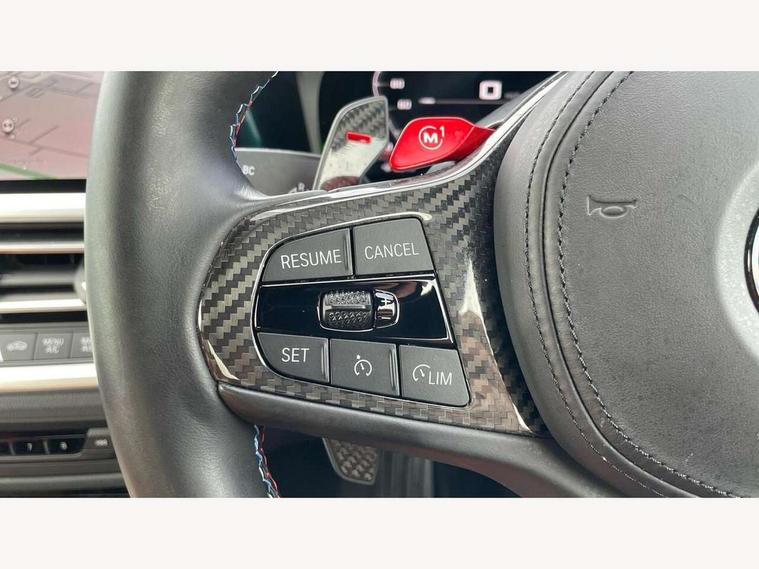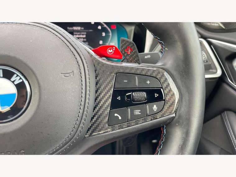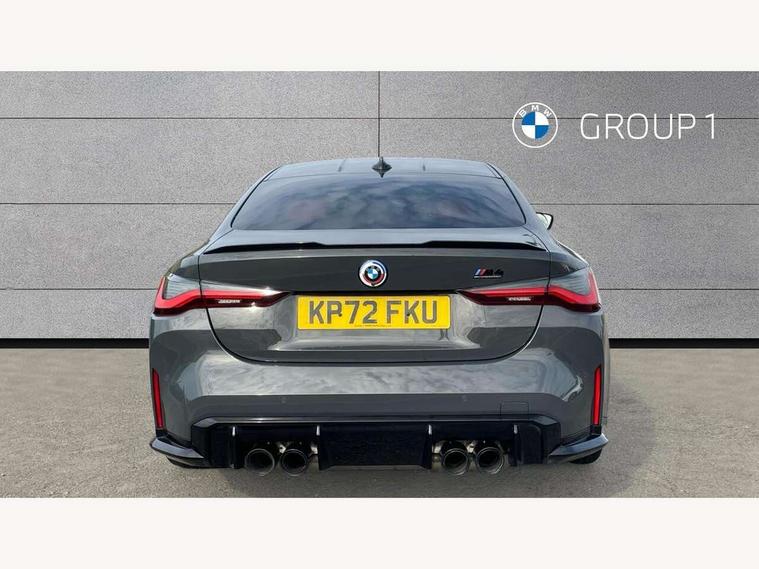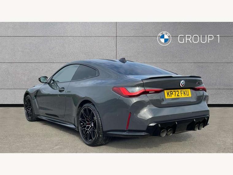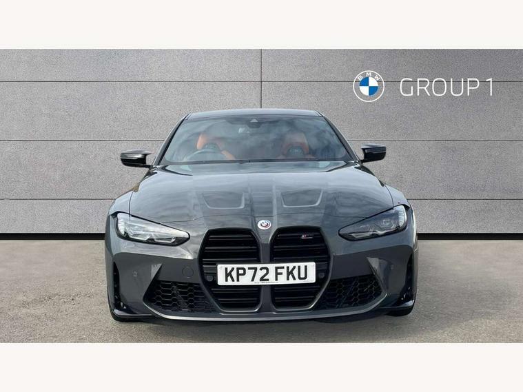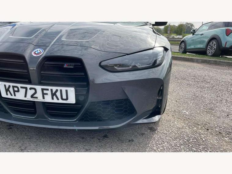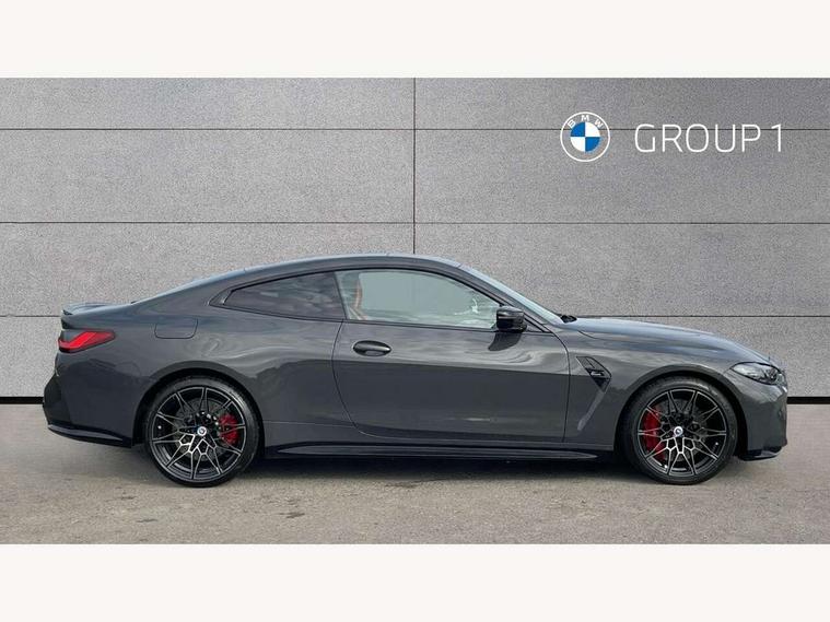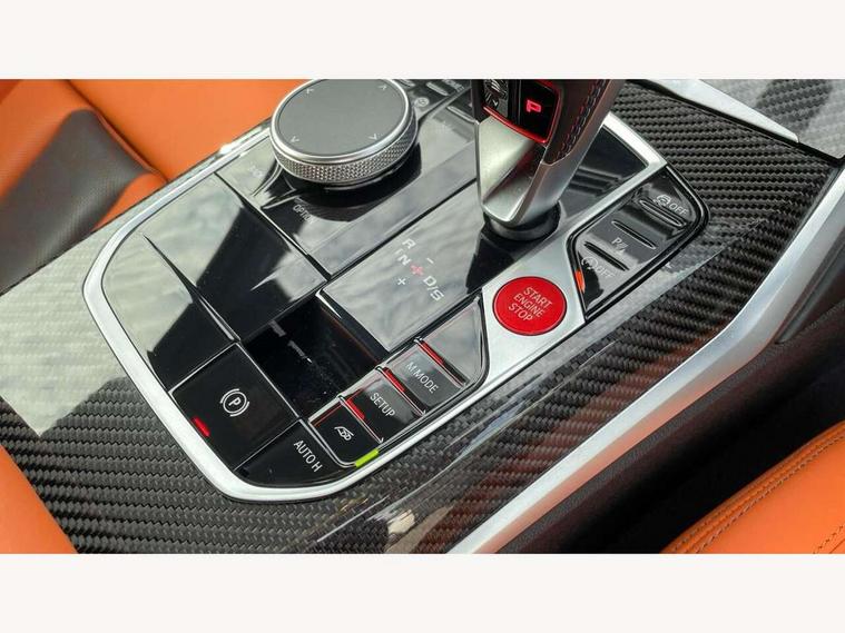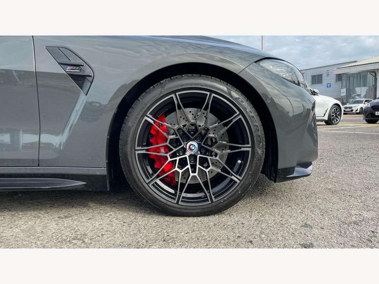 Active guard plus, Automatic start/stop system, BMW ConnectedDrive online services, BMW iDrive controller on centre console, BMW legal emergency call, BMW Live Cockpit Professional sat nav system with 12.3" instrument display and high resolution control display, BMW Teleservices, Brake pad wear indicator warning light, Condition based service, Connected drive services, Door/boot open warning light, Driving experience switch, Electric Power Steering (EPS) with Servotronic, Enhanced bluetooth with wireless charging, Head up Display, Instrument cluster with extended contents, Lights on warning, M drive buttons, Oil sensor for level and grade, warning by check control system, Oil temperature gauge, On board computer, On board diagnostics, Optimum shift indicator, Outside temperature display, Pull away assistant, Run flat indicator, Service interval indicator, Shifting point display, Speed limiter, Variable sport steering, Wi-Fi hotspot, Adaptive M Sport suspension, Double joint spring strut front axle, M Drive Professional including track mode, laptimer, traction control & Drift analyser, M Sport differential, M steptronic sport transmission with drivelogic, Safety battery terminal clamp, 8 programmable favourite buttons, Auxiliary point for auxiliary devices, BMW professional radio/CD/MP3, DAB Digital radio, Harman/Kardon loudspeaker system, Acoustic laminated side glass, Auto dimming driver's door mirror, Auto dimming rear view mirror, Automatic headlights + automatic windscreen wipers, Black chrome exhaust tailpipes, Black model designation badges, BMW high gloss shadow line with extended contents, BMW Individual shadowline lights, Body colour bumpers, Body colour door handles, Carbon fibre reinforced plastic (CFRP) roof, Day time running light, Door mirror integrated indicators, Door sill finishers with aluminium inserts, Dynamic brake lights, Electric adjustable heated door mirrors, Electric folding door mirrors, Follow me home headlights, Front and rear bumper system, Front electric windows with open and close fingertip control, anti trap facility and comfort closing, Headlight beam throw control, Heat protection, sun protection glazing, Heated washer jets, High beam assistant, High gloss black frameless kidney grille with M badge, LED number plate light, LED tail lights with 3D L-shaped LED light design, M designation, Mirror glass aspheric on driver's side, convex on passenger side, Rain sensor, Rear boot, Rear fog lights, Rear reflectors, Reversing light, Shark fin roof aerial, Third brake light, Visible VIN plate, Welcome lighting, 2 cupholders in front centre console, 2 rear head restraints, 2 x 12 V Power sockets (luggage compartment and front centre console), 2 x USB Type C ports for charging and data transmission in front centre console, 2 x USB Type C ports for charging in rear centre console, 40:20:40 split folding rear 2 seat bench with loading system, Ambient lighting, Anthracite headlining, Battery in luggage compartment, Carbon fibre centre console incl. cover for cupholders, Carbon fibre decorative steering wheel finishers, Carbon fibre shift paddles, Carbon fibre strip in instrument panel on front passenger side, Centre console armrest with storage compartment, Compartment in front of cupholder, Driver/passenger sunvisors with illuminated vanity mirrors + covers, Electric front seats + driver memory, English handbook, Floor mats in velour, Footwell lighting, Front and rear door exit lights, Front door storage bins with bottle holder, Front interior light, Front isofix attachment + airbag deactivation, Front seat backrest width adjustment, Front seats lumbar support, Front/rear door armrests, Gearshift lever with embossed M badge, Heated front seats, Height adjustable front headrests, Interior mirror lighting, Isofix on 2nd row outer seats, Lockable/illuminated glovebox, Luggage compartment lighting, Multifunction steering wheel, Rake/reach adjustable steering wheel, Single front passenger seat, Storage compartment in rear doors, Storage tray and compartment with cover in centre console, Three zone automatic air conditioning, Toolkit located in luggage compartment, Additional storage compartment pack - M4, Connected package professional - M4, High gloss shadowline exterior trim pack - M4, 4 x 3 point seatbelts, ABS/EBD, Automatic Stability Control (ASC), Brake energy regeneration, Brake fade compensation, Compound structure brake discs, Cornering brake control (CBC), Crash sensor, Curtain airbags, Driver/Front Passenger airbags, Dry braking, Dynamic brake control, Dynamic Stability Control with M Dynamic mode, Dynamic Traction Control - DTC, Electromechanical parking brake, Electronic differential lock control (EDLC), Front and rear head airbags, Front seat side impact airbags, Front seatbelt pretensioners + load limiters, Hill start assist, M Sport seat belts, Seatbelt warning, Side impact protection, Two tone horn, Tyre pressure sensor, Warning triangle and first aid kit, Centre lock switch, Closing system with central locking, Digital key, Electronic immobiliser, Remote central locking, Thatcham cat 1 remote alarm, Vehicle Key with 4 buttons including the integrated key, Galvanic finish to control surrounds, High gloss black interior trim, Tyre repair kit,