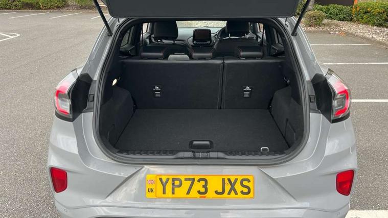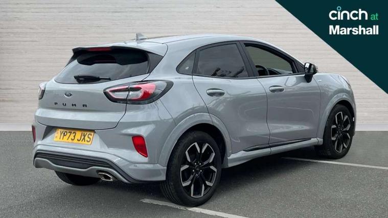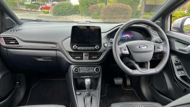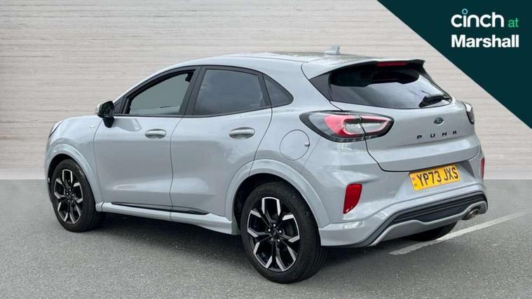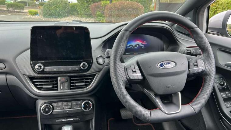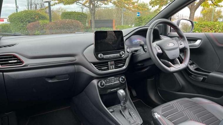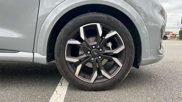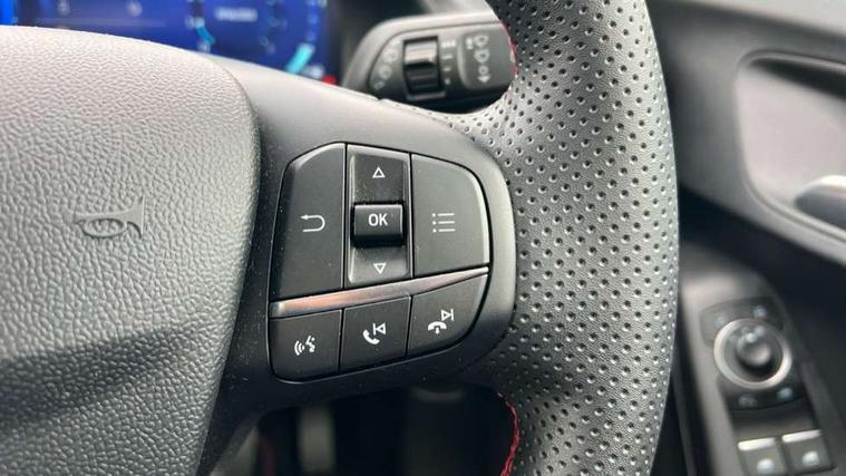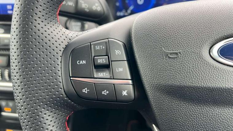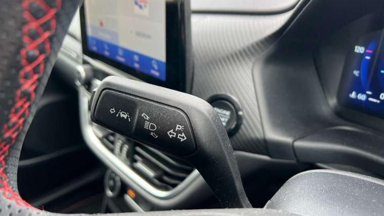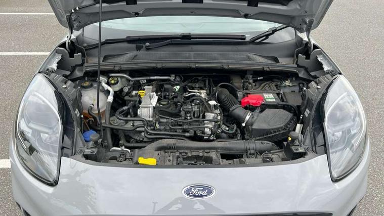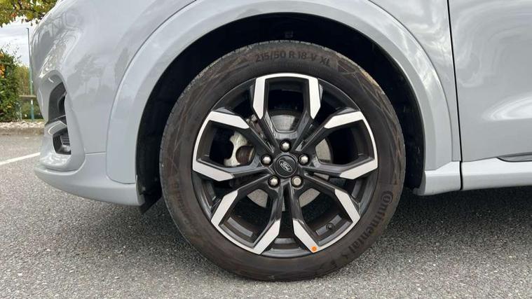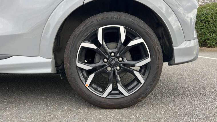 Driver impairment monitor, Emergency call service, Ford easy fuel, Full digital 12.3" instrument cluster, Lane keeping aid with lane departure warning, Power assist steering, Power start button, Rear parking sensor, Selectable drive modes(Normal, sport, Eco, trail, slippery), Speed sign recognition, Sport suspension, Automatic headlights with auto high beam, Automatic rain sensing wipers, Front fog lamps, LED daytime running lights, LED rear lamps, Power foldable heated door mirrors with puddle lamps, Privacy glass to side rear windows and tailgate glass, Quickclear heated windscreen, Rear side wing doors, Rear wiper, ST-Line body styling kit with unique grille and large body colour rear spoiler, Third brake light, 3 seat bench in 2nd row, Centre console with armrest and stowage, Ford megabox extended bootspace, Front and rear head restraints, Front floor mats, Manual 4 way driver seat adjust with lumbar adjustment, Manual 4 way passenger seat with lumbar seat adjustment, Sensico partial premium upholstery, Single front passenger seat, ST-Line flat bottomed sensico leather steering wheel with leather handbrake and aluminium gear knob, Wireless charging pad with electronic air temperature control (EATC), B&O Premium Audio system + Ford SYNC 3 navigation pack - Puma, 3 rear seatbelts, Child safety lock, Electronic stability control (ESC) and hill start assist, Pedestrian/cyclist detection & post-collision braking, Pre collision assist system, Tyre pressure monitoring system (TPMS), Thatcham alarm, Carbon look interior deco spears,