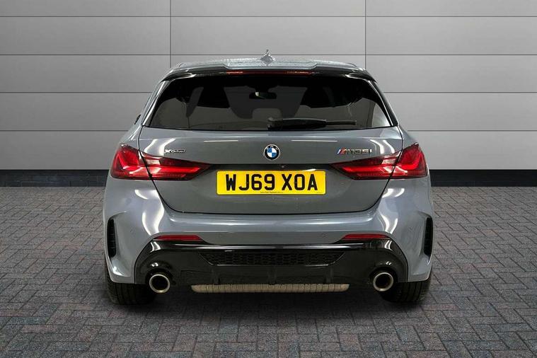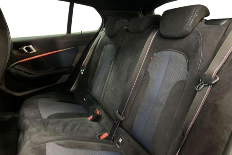 Active guard plus, Attentiveness assist, BMW Live Cockpit Professional sat nav system including 10.25" high resolution display and Intelligent Voice Assistant, BMW Online services, BMW Teleservices, Check Control warning system for monitoring of lights and door/luggage compartment open warning, Eco pro mode, Front/rear Parking distance control, Integrated owners handbook, M Sports steering, On board computer, Optimum shift indicator, Personal Profile, Pull away assistant, Speed limiter, Anti roll bar front and rear, Balancer shaft, Double VANOS, Drive Performance Control, Electronic differential lock, Engine cover with M performance designation, High precision injection, Larger fuel tank capacity (50 litres), Launch control, Petrol Particulate Filter, VALVETRONIC engine management, Bluetooth audio streaming, DAB Digital radio, Auto dimming rear view mirror, Body colour door handles, Cerium grey exterior mirror caps, Direction indicator side lights in exterior mirrors, Electric folding and anti dazzle exterior mirrors, Fading support, Follow me home headlights, Front and rear electric windows with open and close fingertip control, anti trap facility and comfort closing, Front door sill finishers with M135i designation, Green tinted heat protection glazing, Headlight beam throw control, High gloss shadow line exterior trim, High level third brake light, Kidney grille frame in Cerium Grey with Mesh design, LED daytime running lights, Lightweight engineering, M logo designation side in cerium grey, M performance exhaust system, M rear spoiler, Matt black air guide grilles, Matt black roof moulding, B pillar finisher and wheel arch trim, Matt black window frame, Model designation on right side of tailgate, Nearside reverse light in rear light cluster, Rain sensor including auto headlights activation, Rear fog lights, Rear window wiper, Round exhaust system with twin cerium grey tailpipes in left and right split, Shark fin antenna, Visible VIN plate, Welcome lighting, Windscreen wipers with integrated washing jets, 12V power socket in centre console, 2 cupholders in front centre console, 3 rear seat head restraints, 3 Spoke M sports leather steering wheel, Anthracite headlining, Anthracite Velour floor mats, Bag hook in luggage compartment, Child seat ISOFIX attachment for two outer rear seats and front passenger seat with anchorage points, Conditioned based service, Driver and front passenger seat heating, Driver side folding compartment in instrument panel, Folding rear clothes hook, Folding rear seats, Four grab handles integrated in roof lining, Front and rear door pockets, Front and rear side armrest integrated into door trim, Front Armrest foldable with integrated storage compartment, Front M seats, Glove compartment, Height adjustable front head restraints, Manual adjust steering wheel, Multi-function controls for steering wheel, Rear seat backrest with manual 60:40 split folding with 3 top tether clips integrated on rear of seat panels, Storage compartment in centre console, Sun visors with vanity mirrors and insert tab, Two extra lashing eyes in luggage compartment, Two zone automatic air conditioning, Connected pack professional - 1 Series, Extended Lighting pack - 1 Series, Extended storage pack - 1 Series, Interior lights pack - 1 Series, Luggage compartment pack - 1 Series, M Sport exterior styling aerodynamics pack - 1 Series 135i, 2 tone horn, 3 point seatbelts on all seats, front pyrotechnic belt tensioners, stopper and belt force limiters, rear coded belt buckles, Airbags - Front driver and passenger, front and rear head, front side, curtain head protection, Anti lock braking system (ABS) with brake assist, BMW emergency call, Brake drying, Braking readiness, Crash sensor activating central locking release, hazard warning lights, fuel cut off, interior lighting + activation of safety battery terminal clamp, Driver and front passenger seat belt security check, Dynamic stability control + (DSC+), Dynamic Traction Control - DTC, Electrically operated hand brake, Front passenger manual airbag deactivation, M Sport braking system, M sport seatbelt, Rear child proof door locks, Seatbelt warning, Side impact protection, Tyre pressure monitoring system, Warning triangle and first aid kit, Automatic drive away locking facility, Central locking switch for all doors, fuel filler cap and luggage compartment, Deadlocking function system to all doors, Locking wheel bolts, Remote control with integrated key with High-gloss Black inlay and M designation and 1 button for open/ close lock, window, open luggage compartment, Start/stop button with comfort go keyless engine start and auto start stop deactivation button, Thatcham Cat.1 alarm and immobiliser, Contrast stitching on instrument panel, 18" Burnished M double spoke Bi-colour alloy wheels finished in Cerium grey matt - style 556M, BMW mobility system, Reduced rolling resistance tyres,
