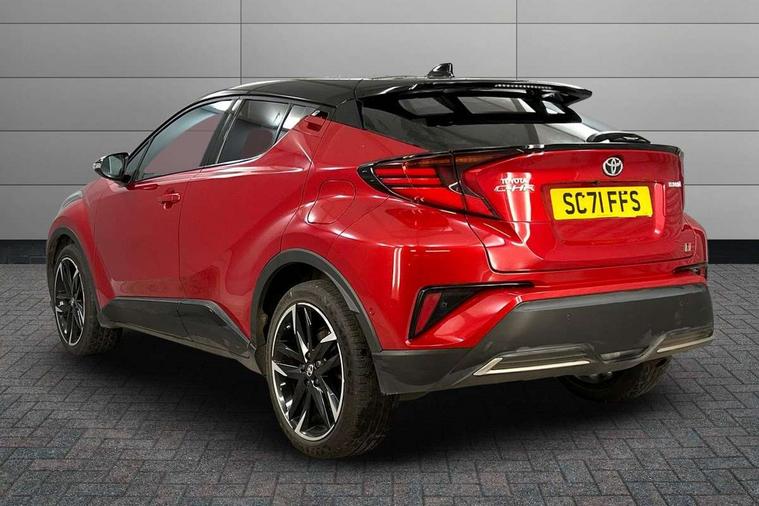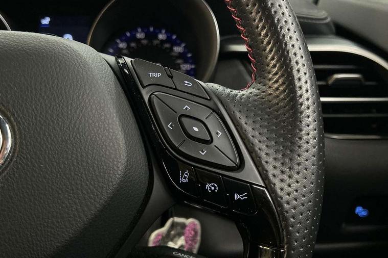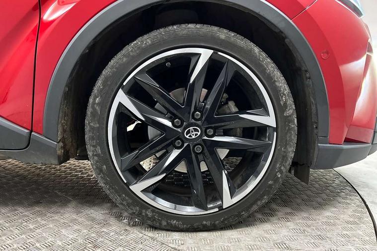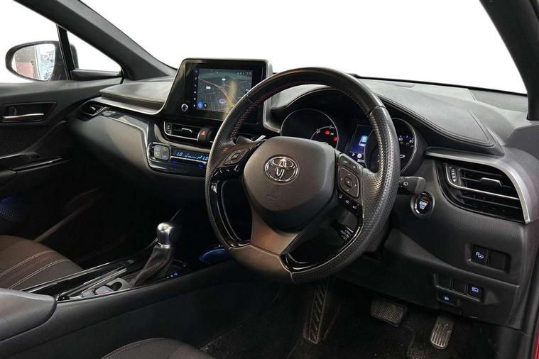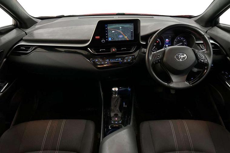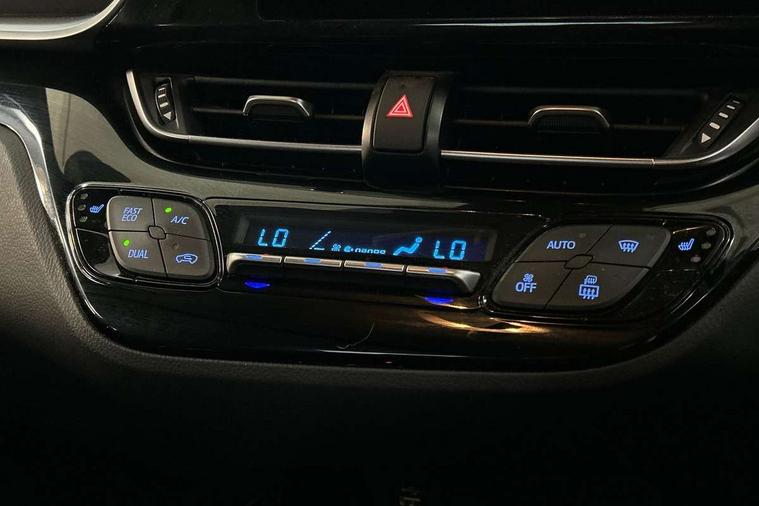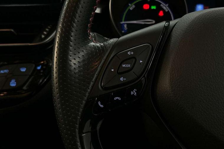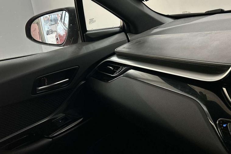 4.2" coloured TFT screen for multi-information display, Adaptive cruise control, Bluetooth connectivity, E-call, Electric power steering, Hybrid system indicator, Lane departure alert with steering control, Remote boot door release in cabin, Remote boot door release in key, Reversing camera, Road sign assist - RSA, Simple Intelligent parking assist, Touch 2 Go navigation system, Trip computer, Voice recognition, Vehicle Stability Control (VSC), 6 speakers, AM/FM radio, DAB Radio (Digital Audio Broadcasting), Toyota touch 2 multimedia system with 8" display, USB connector, Wi-fi connectivity, Adaptive front light system, Adaptive LED Headlights, Anti-jam protection on power windows, Auto high beam, Auto up and down function on all power windows, Automatic headlight levelling, Automatic headlights, Automatic headlights cut-off, Black and body coloured rear bumper, Black upper front grille, Body colour door handles, Body colour door mirrors, Body coloured front bumper, Boot door release with push button, Chrome front lower bumper, Electric heated door mirrors, Follow me home headlights, Front and rear power windows, Front spoiler lip in black, Hard tonneau cover, Honeycomb lower front grille, LED daytime running lights, LED fog lights, LED front light guide, LED High mounted stop light, LED rear brake lights, LED rear combination lights, Noise reduction layer on front windows and windscreen, Power adjustable door mirrors, Privacy glass, Rain sensor, Rear sequential indicators, Rear side wing doors, Rear spoiler, Rear tailgate, Rear window defogger, Rear window wiper, Shark fin antenna, UV-filter on driver and passenger windows, UV-filter on rear windows, 12v power outlet - front, 3 rear headrests, 3 seat bench in 2nd row, 3 spoke perforated leather steering wheel, 60/40 split folding rear seat, Adjustable rear headrests, Adjustable speed limiter switch on steering wheel, Assist grips front and centre pillar, Audio and telephone switches on steering wheel, Black front door assist grips, Blue ambient lighting on front cup holders, Blue ambient lighting on front doors, Boot light, Chrome interior door handles, Driver and front passenger personal light, Driver and front passenger Whiplash Injury Lessening seats, Driver and passenger seatback pockets, Dual zone automatic air conditioning, Fabric upholstery, Floor mats, Front cupholders, Front head restraints, Front sports seats, Glovebox with internal light, Heated driver and front passenger seats, Hooks for luggage holding net, Humidifying Nanoe air purifier, Illuminated entry system, Isofix attachments on rear seats, Leather gearshift, Light on driver sun visor, Light on passenger sun visor, Manual telescopic steering wheel, Manual tilt steering wheel, Manually height adjustable driver seat, Manually height adjustable front passenger seat, Manually reclining driver seat, Manually reclining front passenger seat, Manually sliding driver seat, Manually sliding front passenger seat, Microphone on front personal light, Mirror on driver sun visor, Mirror on passenger sun visor, Multimedia switches on steering wheel, Pollen filter, Power adjustable lumbar support on driver seat, Shopping bag hooks, Single front passenger seat, Slow opening on lower glovebox, Voice recognition switch on steering wheel, Tech with parking sensor pack - C-HR, 16 Disk front wheel brake, 3x3 point rear seatbelts, ABS+EBD+Brake assist, Electronic parking brake, Front and rear seatbelt reminder, Front passenger airbag on/off switch, Hill start assist control (HAC), Pre collision system with pedestrian detection, Pre-tensioners and force limiters, Rear door child safety locks, SRS Airbags - Driver + Front passenger, front side, front and rear curtain and driver's knee airbags, Toyota safety sense, Tyre pressure monitoring system, Acoustic vehicle alert system (AVAS), Glass-breaking alarm sensors, Immobiliser, Intrusion alarm, Intrusion sensor, Motion sensor alarm, Power passenger window lock, Remote central locking, Black lower dashboard, Black upper dashboard, Piano black console, Silver deco line on upper dashboard, 19" Black machined alloy wheels, Tyre repair kit,