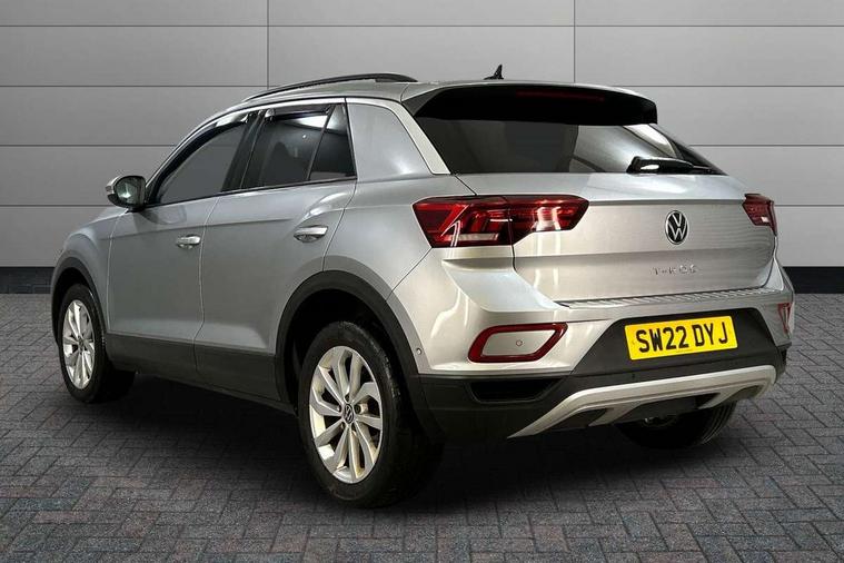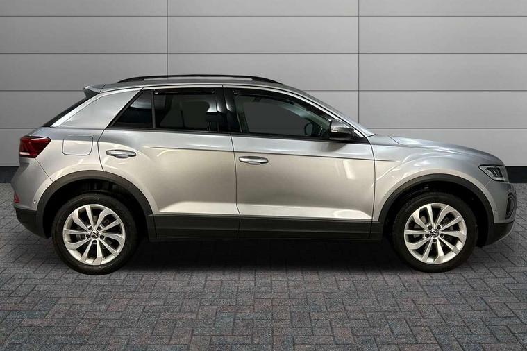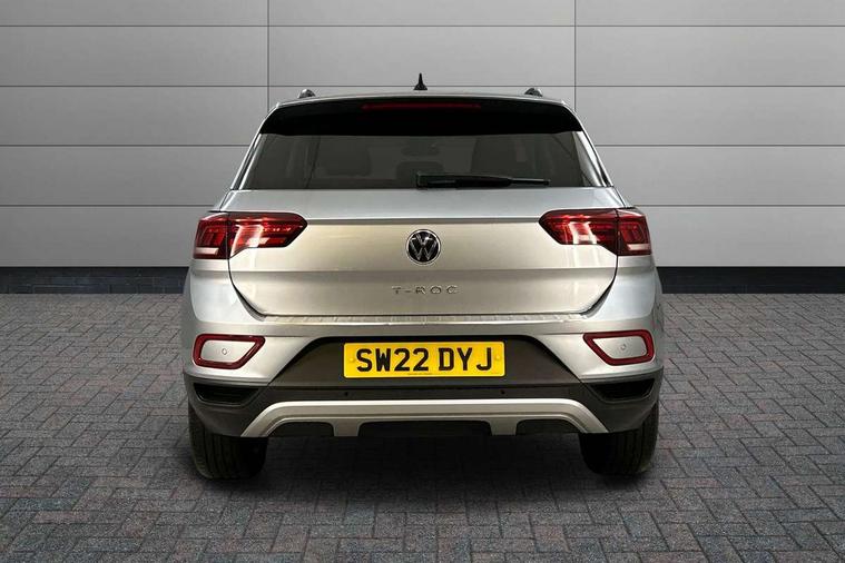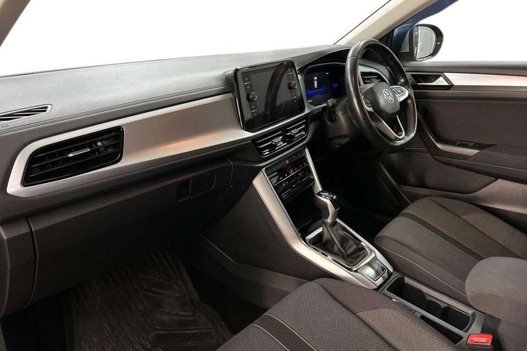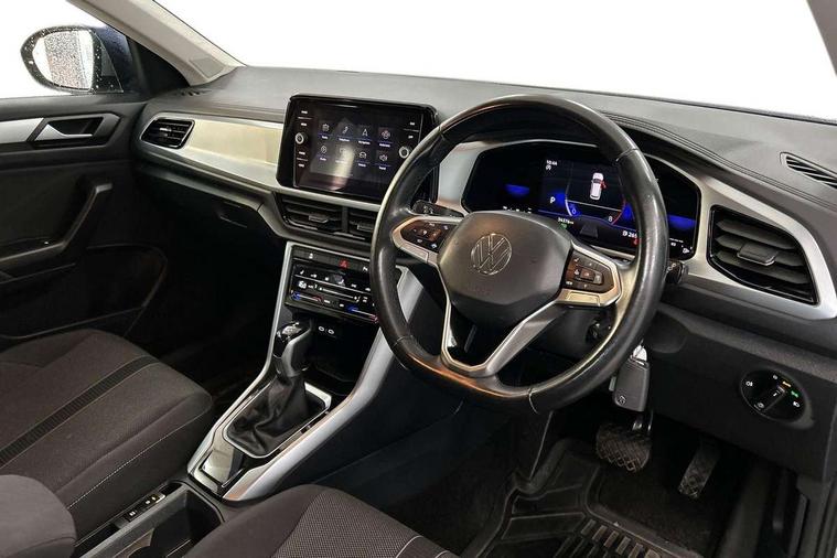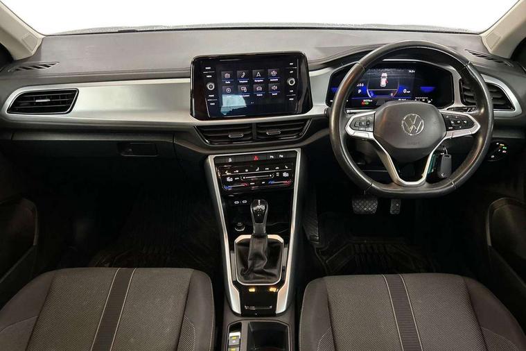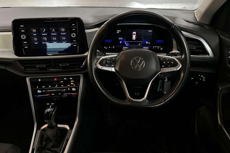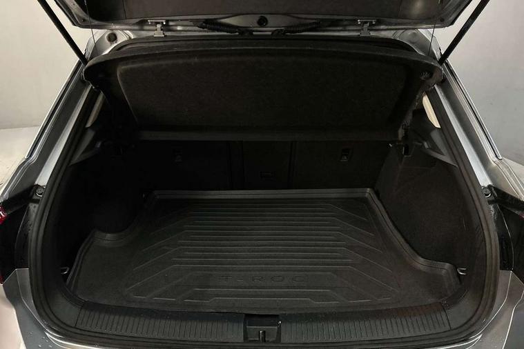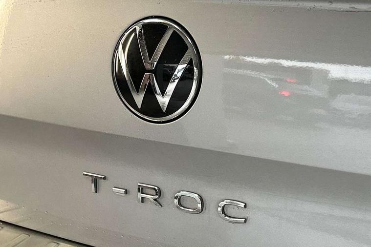 Bluetooth mobile phone interface, Driver alert system with fatigue detection, Driver tips and journey analysis, Emergency call service, Lane keeping system Lane Assist, Modified key software - reduce switch off time for key status change to Long no motion, Online services, Park assist including front and rear parking sensors, Power assisted speed sensitive steering, Service interval indicator, Tailgate/trunk lid release from outside, Think blue trainer driver tips and journey analysis, Warning sound and light for front seatbelts unfastened, Wireless app connect, Battery regeneration during braking, Front shock absorption, Rear shock absorption chassis with increased ride height, Start/stop function with battery regeneration, DAB Digital radio, Diversity antenna for FM reception, Front and rear 6 speakers, Music playback - MP3, WMA and AAC files, Premium USB cable in choice of either Apple or Android smartphone compatibility, SD card slot, Simultaneous pairing of 2 compatible mobile devices, Title and cover art display, We Connect and We Connect Plus functionality, 3rd brake light, Auto dimming interior rear view mirror, Automatic hazard lights activation under emergency braking, Automatic headlight control with LED separate daytime running lights with coming/leaving home function, Black roof rails, Body coloured bumpers and radiator grille with chrome trim and front fog lamps with chrome bezel, Body coloured exterior mirror housings and door handles, Extended roof spoiler, Exterior mirrors aspherical on driver side, convex on front passenger side, External USB type C socket and charging sockets, Front windscreen wiper with intermittent wipe and 4 position delay, Heated rear window, LED Headlights, LED rear combination lamps, LED rear number plate lights, LED tail lamp rear comination lamps, Power windows with comfort operation and circuit breaker, Rain sensor, Rear exhaust tailpipe, Rear fog light on one side and reversing lights on both sides, Rear side wing doors, Rear wash/wipe with intermittent wipe setting, Remote electrically foldable door mirrors, puddle lights and reverse activated passenger's door mirror, 12V power socket in centre console, 3 rear head restraints, 3 seat bench in 2nd row, 4 load lashing points in luggage compartment, Air care climatronic air conditoning system with active combination filter and 2-zone temperature control, Ambient lighting with mirror logo projection, Cloth upholstery, Door and side trim panel in cloth, Drawer under drivers seat, Driver/front passenger seat height adjustment, Front centre armrest, Front comfort sports seats, Front cupholders x 2, Front reading light, Instrument lighting, white adjustable panel illumination, Interior light delay, Isofix child seat preparation, Leather gearshift handle, Load-through provision with cup holder when folded down ('Unsplit rear seat bench, split folding backrest, with centre armrest), Luggage compartment lighting, Lumbar support for driver's and front passengers seat, Non-folding front passenger seat backrest, Single front passenger seat, Storage compartment in left and right luggage area, Storage compartment in rear doors, Storage compartments in driver and front passenger doors, Sunvisors with illuminated vanity mirrors, Variable boot floor, height adjustable and removable, Driver assistance pack without proactive passenger protection - T-Roc, 3 point height adj front seatbelts + pretensioners, 3 point seatbelts in outer rear with ECE label, ABS, Child locks on rear doors, Driver and front passenger airbag with front passenger airbag deactivation, Driver and front passenger safety-optimised head restraints, Drivers seatbelt reminder, Electronic parking brake, Electronic Stability Control (ESC) inc EDL (Electronic Differential Lock) and ASR (Traction Control), Front and rear passengers curtain airbag system including front side airbags, Front assist with city emergency braking and pedestrian monitoring, Front disc brakes, Front seat side impact airbags, Hill start assist, Predictive pedestrian protection, Rear disc brakes, Single tone horn, Tyre pressure loss indicator, Volkswagen roadside assistance, Alarm with interior protection, Anti-theft alarm system with interior monitoring, backup horn, and towing protection, Remote central locking with SAFELOCK, radio remote control with 2 remote control folding keys, Pewter matt decorative inserts for intrument panel and door panels at the front, Trims for alloy wheels,
