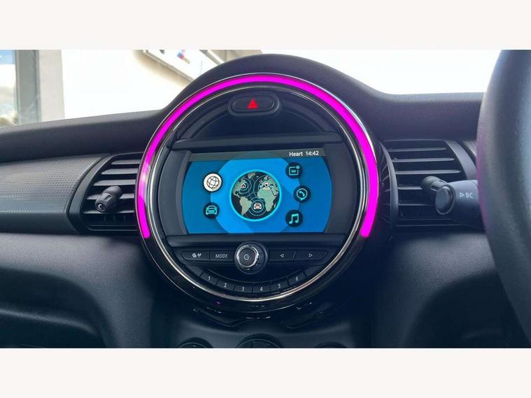 Automatic start/stop function with brake energy recuperation, Compatible mobile phone bluetooth with audio streaming, Electro-mechanical speed dependant steering assistance, Instrument cluster, Mini E-call, MINI TeleServices, On board computer, Service interval indicator, Double Vanos system, Fully variable valve control, High precision injection, 6.5" touchscreen with LED ring, FM tuner and DAB digital radio, Automatic headlight activation switch, Body colour fuel filler cap, Chrome border high gloss black slats radiator grille, Dynamic brake lights, Electric front+rear windows, Heated rear window, Heated windscreen washer jets, LED headlight with closed ring and daytime driving lights, Left exhaust tailpipe with chrome finisher, Metal door sill strips with MINI imprint, Model logo Cooper on right of tailgate, Rain sensor window wipers, Rear fog lights, Rear LED lights with union jack design, Rear window wiper, Side scuttle panel with integrated indicator, Sun/heat protection glass, White indicator lenses, 12V Accessory socket in centre console, 4 lashing eyes in luggage compartment, 60/40 split folding rear seat, Chrome interior highlights, Colour line - Carbon black, Cupholders, Front and rear head restraints, Front and rear isofix with front passenger airbag deactivation, Glove compartment, Height and length steering column adjustment, Interior lighting with 12 basic colours selectable via toggle switch in roof, Leather gearshift lever and handbrake gaiters, LED reading lights, vanity mirror lights, front foot well light and spotlight on front seats, Manual air conditioning, Mechanical seat adjustment, driver seat height adjust, forward/back and front seats backrest, Mini logo projection on floor from drivers exterior mirror, Multifunction steering wheel, Satellite grey headlining, Storage compartments in doors, Sunvisors with vanity mirrors, 3 point seatbelts on all four seats, 6 Airbags - front, side, head and seat belt tensioners, Anti-lock braking system (ABS), DSC - Dynamic Stability Control, Front and rear disc brakes, Hill start assist, Single tone fanfare horn, Tyre pressure monitoring system, Alarm system with tilt sensor, monitoring doors, bonnet interior and tailgate, Electronic vehicle immobiliser, Start/stop toggle with keyless go, Tool kit,