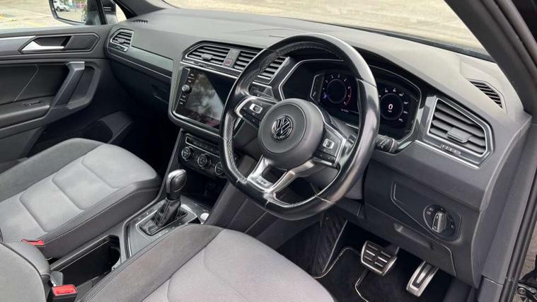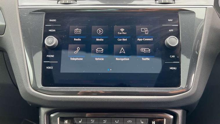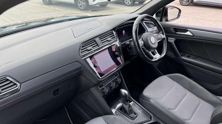 Chrome door trim inserts, Piano black interior trim, Ambient lighting pack - Tiguan, Winter pack - Tiguan/Tiguan Allspace, Alarm with interior protection, Electronic engine immobiliser, Remote central locking with 2 remote folding keys, 2x USB sockets in front, 4 X 20 watt output, DAB Digital radio, SD card slot, Simultaneous pairing of 2 compatible mobile devices, SMS functionality - read, compose and send SMS messages using touch-screen display, Title and cover art display, 3 rear 3 point seatbelts, ABS+EBD+Brake assist, Active bonnet, Active pedestrian safety system, Curtain airbags, Driver/Front Passenger airbags, Driver/Passenger whiplash optimised head restraints, Drivers knee airbag, DTC - Drag torque control, Electronic parking brake with auto hold, ESP with EDL + ASR, First aid kit, Front side airbags, Front ventilated disc brakes and rear disc brakes, Head airbag system, Height adjustable front 3 point seatbelts + pretensioners, Hill hold control, Passenger airbag deactivate switch, Passenger knee airbag, Proactive preventive occupant protection, Rear side airbags, Rigid safety cell with front and rear crumple zones, Seatbelt warning lamp and buzzer, Two tone horn, Warning triangle, 3D effect cherry red LED rear tail lights, Auto dimming interior mirror, Automatic activation of hazard warning lights, Black door protector with chrome inserts, Body colour door handles, Body colour door mirrors, Body coloured bumpers, Chrome side body trim, Chrome side window surrounds, Chrome trimmed radiator grille, Coming/leaving home lighting function, Dusk sensor + auto driving lights, Electric folding door mirrors, Electric heated + adjustable door mirrors, Electric panoramic sunroof with sunblind, Front air intake with chrome strip, Front and rear electric windows, Heated rear window, High level 3rd brake light, LED headlights with dynamic light assist daytime running lights and cornering front fog lights, LED rear number plate lights, Rain sensor windscreen wipers, Rear tinted glass from B-pillar backwards approx 65% tinted, Rear windscreen washer and wiper with interval delay, Side door sills with chrome inserts, Side skirts and rear bumper with chrome insert, Silver rear diffuser trim, Silver roof rails, Silver under body guard, Windscreen wipers/ intermittent wipe + 4 position delay, 12V Accessory socket in centre console, 3 rear headrests, 3 zone climate control, 4 load lashing points, 40:20:40 split folding rear seats, Bag hook in luggage compartment, Foldable passenger seatback, Front + rear carpet mats, Front centre armrest with 12v socket, Front centre armrest with storage + rear 2 air vents + cupholders, Front seat back storage pockets, Front seatback folding tables, Height/reach adjust steering wheel, Illuminated driver/passenger vanity mirrors, Illuminated scuff plates, Instrument lighting white adjustable panel illumination, Interior light with delay, Isofix Preparation 2 Rear child seats, Leather gear knob, Load through provision with 2 cupholders when folded, Lockable cooled glovebox, Luggage compartment lighting, Luggage compartment side storage, Map pockets on front seats, Passenger seat height adjuster, Passenger underseat drawer, Rear cupholders, Removable luggage cover, Sliding/reclining rear seats, Storage compartment in driver's door, Storage compartment in passenger's door, Storage compartment in rear doors, Storage tray on dashboard, Sunglasses storage, Variable boot floor, App-Connect, Active information display, Adaptive cruise control, Bluetooth phone integration system, Car-Net Security and Service, Coasting function, Distance control assist, Drive mode selector, Driver profile selection, Fatigue detection system, Front assist, radar sensor controlled distance monitor, city emergency braking + predictive pedestrian protection, Instrument cluster, Lane assist, Low washer fluid warning light, Outside temperature display, Service interval indicator, Speed limiter, Start/Stop function, Warning lights, Misfuel prevention device for diesel engine, XDS electronic differential lock,