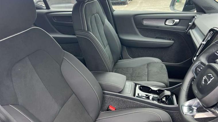 12.3" Progressive Driver Display, 9" centre console portrait touch screen, Adjustable steering wheel force, Android auto (Wired), Apple carplay (wired), Bluetooth handsfree system, Cruise control, Driver alert control, E-call, Front park assist, Google automotive services - Enabled entertainment apps, navigation with google maps, voice recognition with google assistant, Hands free power tailgate, Intelligent speed assistance, Lane keeping aid, Oncoming Lane Mitigation, Rear park assist, Speed sensitive steering, Volvo cars services with app - Driving journal, emergency and breakdown call, engine remote start, remote door locking/unlocking and vehicle dashboard, Wireless/Inductive Mobile Phone Charging, Automatic transmission with start/stop and manual change functions, Dynamic chassis, DAB Digital radio, Steering wheel mounted remote controls, Adaptive brake lights with high level LED brake lights, Auto dimming interior mirror, Automatic headlamp levelling, Automatic LED Headlights + Active high beam incorporating daytime running lights, Front aluminium tread plates, Front and rear electric windows, High gloss black front and rear skid plate, High gloss black front bumper deco, High gloss black mesh front grille with high gloss black surround, High gloss black window trim, Home safe and approach lighting, Integrated roof rails in high gloss black, LED front fog lights, Puddle lights, Rain sensor with automatic windscreen wiper activation, Rear side wing doors, Rear wiper, Roof antenna, Roof spoiler, Visible VIN plate, 12V socket in front tunnel console and luggage compartment, 2-Zone electronic climate control with CleanZone air quality system and pollen filter, 3 seat bench in 2nd row, 3 Spoke tailored steering wheel with chrome trim, 60/40 versatile split folding rear seat, Centre console cupholders and storage, Flexible load floor and grocery bag holder, Floor mats, Front cabin courtesy lights, Front door pocket, front cupholder, ambient front door, rear reading, rear courtesy, instrument panel and tailgate lighting, Front footwell illumination, Front headrests, Front reading lights, Front seat cushion extensions, Front side step illumination (under door), Glovebox bag hook, Heated front seats, Height adjustable passenger seat, Height/reach adjustable steering column, High gloss centre tunnel deco, Illuminated glovebox, Illuminated luggage compartment, Illuminated vanity mirrors + ticket holder, Integrated waste bin, Isofix attachments on outer rear seats, Load cover, Load protection net, Multi directional lumbar support for driver and passenger seat, Power driver seat with memory + exterior mirrors memory, Rear armrest with cupholders, Rear headrests, Single front passenger seat, Underfloor cargo storage, Climate pack without heated front seats - XC40, 3x3 point rear seatbelts, City safety with steering support with Pedestrian + cyclist + front collision warning with full auto brake and rear auto brake, Driver and passenger airbags, Drivers knee airbag, Electronic parking brake with auto hold, First aid kit, Front and outer rear seatbelt reminder and pretensioners, Front seats SIPS airbags, Hill descent control, Hill start assist, Inflatable curtain, Passenger airbag cut-off device, Power child locks on rear doors, Road sign information display, Run off Road Protection, SIPS (Side Impact Protection System), Slippery road and hazard light alert, Stability and Traction Control with Spin control, Engine Drag Control and Corner Traction Control, Tyre pressure monitoring system, Vehicle deceleration control with Anti-lock Brake System, Electronic Brake Distribution and Emergency Brake Assist, Warning triangle, WHIPS whiplash protection system - front, 2 x Key integrated remote control central locking including with deadlocking system and auto open/close windows, Anti-theft alarm including immobiliser/volume sensor + level sensor, Keyless drive includes keyless entry and keyless start, Locking wheel nuts,