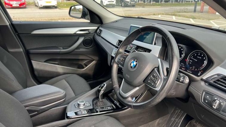 Active Guard incl speed limiting and lane departure functions with auto steering, and front collision warning with brake intervention, Apple car play, Automatic powered tailgate, Bluetooth hands free facility with USB audio interface, BMW Online services, BMW remote services, BMW Teleservices, Brake pad wear indicator in front and rear, Check Control warning system for monitoring of lights and door/luggage compartment open warning, Electric Power Steering (EPS) with Servotronic, Instrument cluster with black optic and 5.7" colour display + speedometer + tachometer + fuel gauge + instant fuel economy, Lights on warning by audio warning signal when ignition is switched off, On board computer - average speed+fuel consumption, service interval, clock/date, odometer/trip meter, outside temperature display and ice warning, Optimum shift indicator, Personal Profile, Real time traffic information, TMC for lifetime of vehicle, 12V compressor with integrated sealant injection bottle and hose, Anti roll bar front and rear, Balancer shaft, Drive performance control with ECO PRO comfort + sport mode, Dual clutch sport automatic transmission, Electronic differential lock, Performance Control, Twin tube gas filled shock absorbers with degressive characteristic curve, 6 Speaker Loudspeaker system, Bluetooth audio streaming, BMW professional radio with CD player, DAB Digital radio, Steering wheel mounted audio/telephone controls, Adjustable headlights, Automatically dimming rear view mirror, BMW badge on bonnet, tailgate with integrated tailgate release and C pillars, Body colour bumpers with black insert, Body colour door handles, Body colour front air intake slats, Body colour mirror caps, Chrome kidney grille with black vertical slats, Clear lenses direction indicator lights, Direction indicator side lights integrated in exterior mirrors using LED technology, Door cladding, side sill covers and wheel arch trims in matt black, Door mirror integrated indicators, Door sill finishers, Dynamic brake lights, Electrically adjustable and heated door mirrors glass aspheric on driver's side and convex on passenger side, Fingertip control / anti-trap function on electric window, Front and rear bumper system, Front and rear electric windows, Green tinted heat protection glazing, Heated windscreen washer jets, High gloss black front side air intake with matt black insert, High level third brake light, LED front fog lights, LED headlights with extended contents - cornering, high beam assist, LED day running lights with dynamic beams-through for urban and motorway, Lightweight engineering, Matt aluminium exterior trim, Matt black in window frame, recess covers and B-Pillar trim, Matt black roof trims, Model designation in left tailgate, Model designation in right tailgate, Rain sensor with automatic headlight activation, Rear fog lights, Rear tail lights with LED technology and 3D design, Rear window aerial, Rear window wiper with wash/wipe function, Reversing light in rear light cluster, Shark fin antenna, Twin chrome exhaust tailpipes, Visible VIN plate, Welcome lighting, 3 spoke sports leather multi-function steering wheel with gear shift paddles, 40:20:40 manually split folding rear seat with two tilt positions for backrest, Ambient interior lighting, Ambient light in front centre console/cup holder area, Armrest in centre section of rear seat backrest and folding, Automatic two zone climate control air conditioning, Child seat ISOFIX attachment for two outer rear seats and front passenger seat with anchorage points, Conditioned based service, Driver/passenger sunvisors with ticket holders, Front and rear door armrests, Front armrest, Front head restraints, Glovebox with light, Interior light in front centre interior mirrors and rear centre auto interior light activation when door is opened when ignition switched off, Luggage compartment lighting, Luggage compartment loading edge with stainless steel insert, Rake/reach adjustable steering wheel, Retaining strap on the left side of the luggage compartment, Three rear headrests, Velour floormats, Extended storage pack - X2, 3 point seatbelts on all seats, front pyrotechnic belt tensioners, stopper and belt force limiters, rear coded belt buckles, Airbags - Front driver and passenger, front and rear head, front side, curtain head protection, Anti lock braking system (ABS) with brake assist, ASC - Active stability control, BMW emergency call, Brake drying, Brake energy regeneration, Braking readiness, Child proof locking system in rear door, Crash sensor activating central locking release with hazard warning lights and interior lighting + battery safety cut-off, Driver and front passenger seat belt security check, DSC - Dynamic Stability Control, Dynamic Traction Control - DTC, Electrically operated parking brake with automatic drive release, Front passenger airbag deactivation, Front ventilated brake disc, Hill descent control, Hill start assist, Multi collision braking system, Rear brake discs, Side impact protection, Twin horns, Tyre pressure monitor, Warning triangle and first aid kit, 2 remote folding keys, Auto door lock when driving, Central locking switch for all doors, fuel filler cap and luggage compartment, Engine immobiliser, Incorrect fuel protection system, Locking wheel bolts, Remote control Thatcham category 1 alarm, Start/stop button with comfort go keyless engine start and auto start stop deactivation button, Dash top finished in black with decorative stitching line on upper section, Oxide Silver interior trim with high gloss black finisher, Reduced rolling resistance tyres,