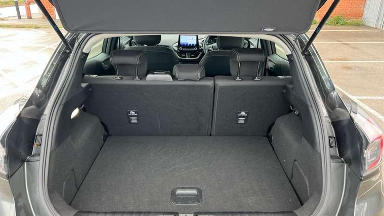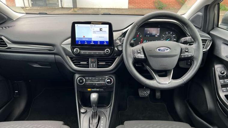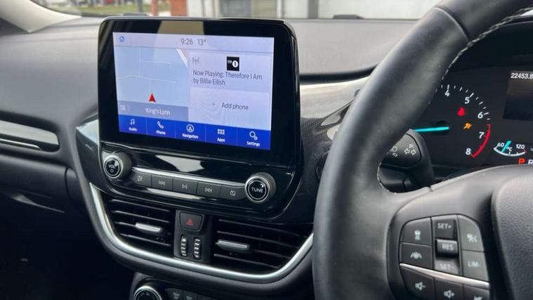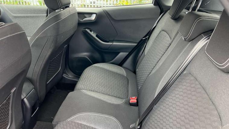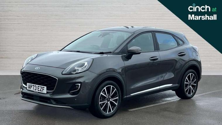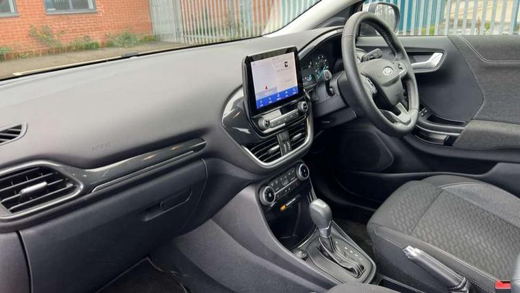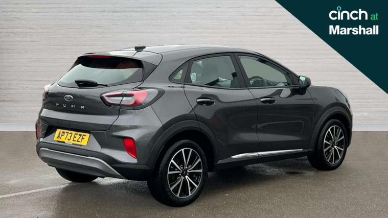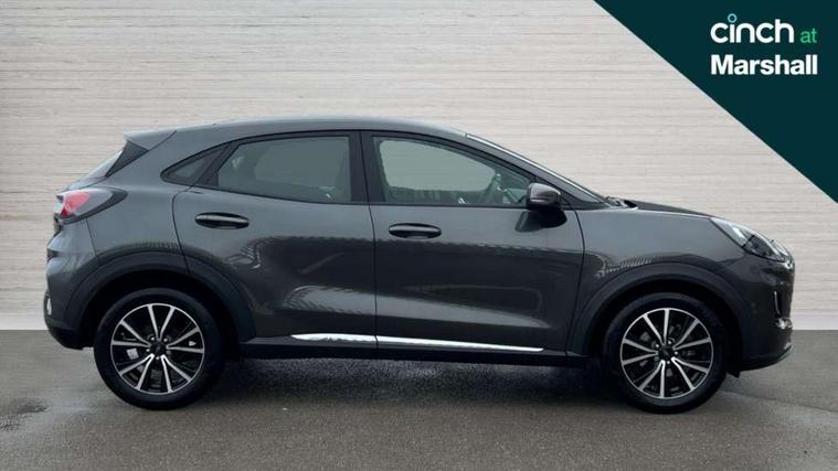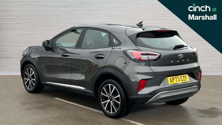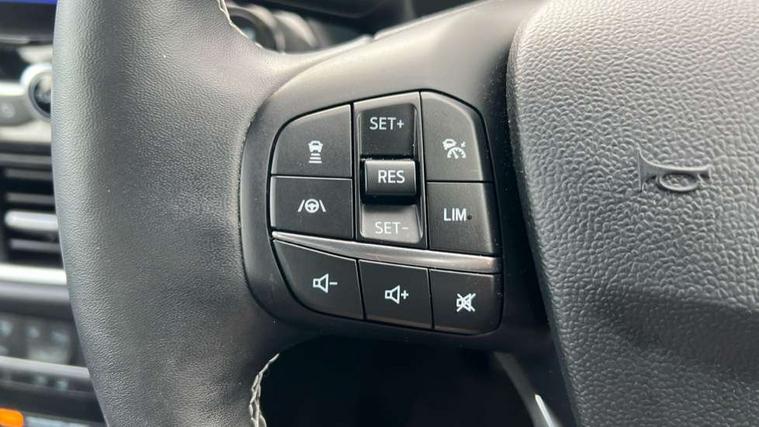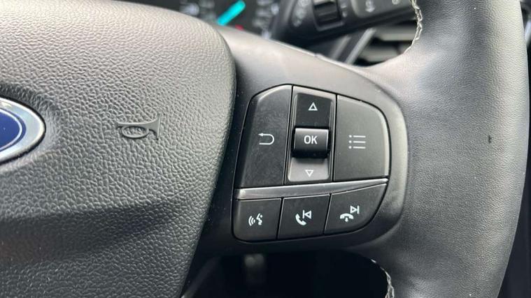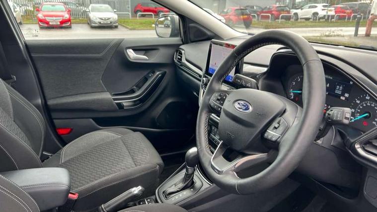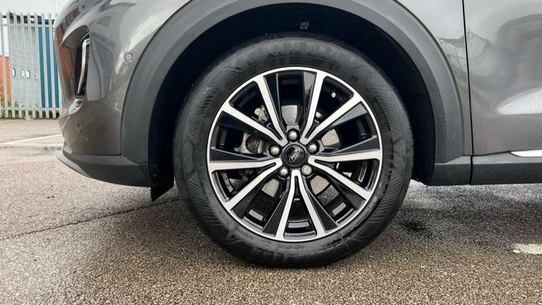 Driver impairment monitor, Emergency call service, Ford easy fuel, Lane keeping aid with lane departure warning, Power assist steering, Power start button, Rear parking sensor, Selectable drive modes(Normal, sport, Eco, trail, slippery), Speed sign recognition, Standard suspension, Automatic headlights with auto high beam, Automatic rain sensing wipers, LED rear lamps, Power foldable heated door mirrors with puddle lamps, Projector headlamps with LED day time running lights and front fog lamps, Quickclear heated windscreen, Rear side wing doors, Rear wiper, Third brake light, 3 seat bench in 2nd row, Centre console with armrest and stowage, Electronic automatic temperature control (EATC), Ford megabox extended bootspace, Front and rear head restraints, Front floor mats, Manual 2 way passenger seat adjustment, Manual 4 way driver seat adjust with lumbar adjustment, Sensico leather steering wheel/gear knob/handbrake, Single front passenger seat, Titanium cloth upholstery, Ford SYNC 3 navigation pack - Puma, 3 rear seatbelts, Child safety lock, Electronic stability control (ESC) and hill start assist, Pedestrian/cyclist detection & post-collision braking, Pre collision assist system, Tyre pressure monitoring system (TPMS), Thatcham alarm, 17" 10 spoke absolute black machined finish alloy wheel,
