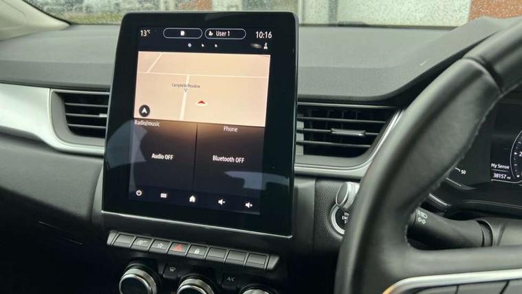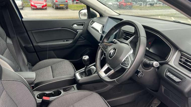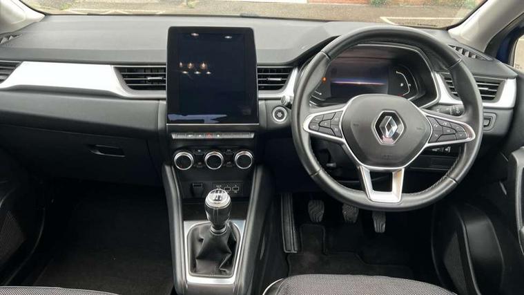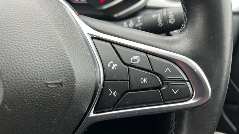 Blind spot warning, Cruise control + speed limiter, eCall emergency call system, Eco mode, Gear change indicator, Lane departure warning system, Lane keep assist, Multisense system - Ambient lighting and Driving mode selector, Renault automatic emergency assist, Traffic sign recognition, Trip computer, Variable assistance power steering, Wireless Mobile Phone Charger, EasyLink Nav 9.3" touchscreen, 4x20W amp, FM DAB, sound auditorium, 2xUSB, 1xJack, Bluetooth, smartphone integration plus, Apple carplay/Android auto, 2 Tone body colour roof, Auto dimming rear view mirror, Automatic front wipers with rain sensors, Automatic high beam - AHB, Body colour door handles, Body coloured bumpers, Body coloured door mirrors, Electric adjustable/heated/folding door mirrors, Electric front windows + one touch + anti-pinch, Electric rear windows, Extra tinted glass in rear windows and tailgate, Full C-shape LED front and rear signature lighting with daytime running lights at the front and at the rear, Gloss black side door protection with chrome effect, LED front fog lights, Rear fog lights, Rear wiper, Roof bars, Shark fin antenna, Variable speed on front windscreen wipers, 12V Accessory socket, 3 rear headrests, 5.2L front glovebox, 60/40 split folding rear seat bench, Automatic climate control with one touch demist function, Centre console storage tray, Front head restraints, Heating system with pollen filter, Height adjustable driver's seat, Height/reach adjust steering wheel, ISOFIX child seat fixing points on rear outermost seats, Leather steering wheel, Middle console with armrest and storage, Rear air vents, 3 rear seatbelts, ABS+EBA, AEBS, Distance warning alert, Driver and front passenger, side, head and curtain airbags, Driver height adjustable seat belt, Electric parking brake with auto hold function, Electronic stability control, Front and rear no seatbelt warning sound, Front dash warning indicator in case of heavy braking, Front driver and passenger side airbag deactivation, Hill start assist, Rear door and window child locking function for rear door, Tyre pressure warning light, Anti drill door locks and locking fuel cap, Central door locking, Deadlocking system, Hands free keycard with push button and start/stop function, RAID (Renault Anti-Intruder Device) automatic door locking, Remote central locking with thatcham approved immobiliser, Black soft touch dashboard with black gloss air vent surrounds,