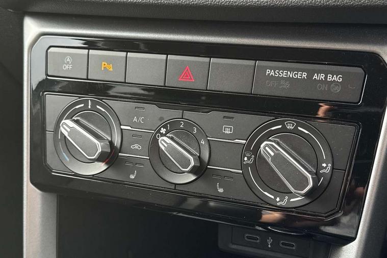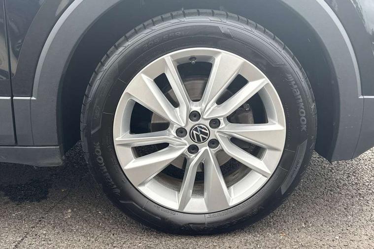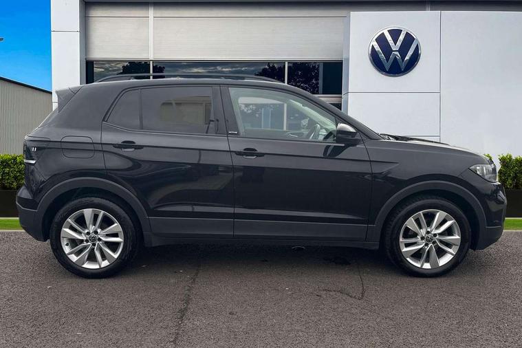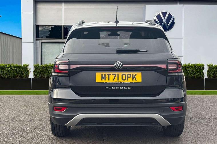 'Lights On' Reminder warning buzzer, Adaptive cruise control including front assist, forward collision warning, autonomous emergency braking, speed limiter, Blind spot monitoring, Bluetooth telephone and audio connection for compatible devices, Car information display, Driver alert system, eCall emergency call system, Lane assist, Low washer fluid warning light, Multifunction computer with visual gear change recommendation for fuel consumption, Operating permit alteration, Power assisted speed sensitive steering, Speedo, rev counter, electronic odometer, trip, service interval display, exterior temperature and fuel gauge, Stop/start system, Warning sound and light for doors and tailgate open, Warning sound and light for front seatbelts unfastened, We Connect Go Dongle, Wireless Car net app connect with Apple CarPlay, combined functionality of Apple CarPlay/Android Auto and MirrorLink, Battery regeneration during braking, Misfuel prevention device, 2x USB connection with USB charging sockets and in rear centre console, DAB Digital radio receiver, Diversity antenna for FM reception, Multi device interface (MDI) with USB connection, Music playback - MP3, WMA and AAC files, Premium USB cable for Apple or Android smartphone compatibility, Simultaneous pairing of 2 compatible mobile devices, Title and cover art display, 3D active badge on B-pillar, Active door sills, Active sill panel trims, Automatic hazard lights activation under emergency braking, Black roof rails, Body colour door handles, Body coloured bumpers, Dusk sensor + automatic driving lights, Electrically foldable, adjustable and heated door mirrors with reverse activated kerb view adjustment on passenger's side, Front and rear electric windows, Front fog lights with static cornering function, Galvanised body, Heated rear window, High level 3rd brake light, Lower door sills and door pillars in black, Radiator grille with high gloss surface and chrome strip, Rear fog light on one side, reversing light on both sides, Rear lights incorporating LED technology, Rear side wing doors, Rear tinted glass 65% approx light absorbing from B pillar backwards, Rear window aerial, Rear windscreen washer and wiper with interval delay, Reflectors in all doors, Tailgate with integrated roof spoiler, Windscreen wipers/ intermittent wipe + 4 position delay, 12V Accessory socket in centre console, 3 rear head restraints and 3 rear three point seat belts with ECE label, 3 seat bench in 2nd row, 60/40 split folding rear seat backrest, Ambient lighting and sourround lighting, Brushed stainless steel pedals, Drawer under drivers seat, Driver and front passenger sunvisor with vanity mirror, Driver's sunvisor with ticket holder, Dust and pollen filter, Front + rear carpet mats, Front and rear reading lights X 2, Front centre armrest with storage compartment, Front seat back storage pockets, Front seats with adj lumbar support, Glovebox, Heating and fresh air system with 4 stage blower, Height/reach adjust steering wheel, Instrument lighting white adjustable panel illumination, Interior light with delay, Isofix child seat preparation for 2 rear child seats, Luggage compartment cover, Luggage compartment lighting, Moveable and foldable Rear bench seat, Single front passenger seat, Storage compartment in drivers and front passengers door, Three spoke multi-function leather trimmed steering wheel and gearknob, Trapeze cloth upholstery, Variable boot floor, Winter pack - T-cross, Anti-lock Braking System (ABS) with Hydraulic Brake Assist (HBA), Automatic post collision braking system, Driver and front passenger safety-optimised head restraints, Drivers and Front Passengers airbags with front passengers airbag deactivation switch, ESC with EDL, ASR, EDTC and trailer stabilisation function, Extended and proactive pedestrian protection, Front and rear curtain airbags, Front seat side impact airbags, Height adjustable 3 point automatic front seatbelts with pretensioners, Hill start assist, Pre crash preventive occupant protection, Rear door child safety locks, Rigid safety cell with front and rear crumple zones, Single torn horn, Tyre pressure loss indicator, Volkswagen roadside assistance, Alarm with interior protection and deactivation via infotainment system, Child security locks in rear doors, Electronic engine immobiliser, Remote tailgate unlocking using key fob, Decorative strips in doors in matt silver/ center console, 17" Clayton alloy wheels + anti theft wheel bolts, Breakdown kit,