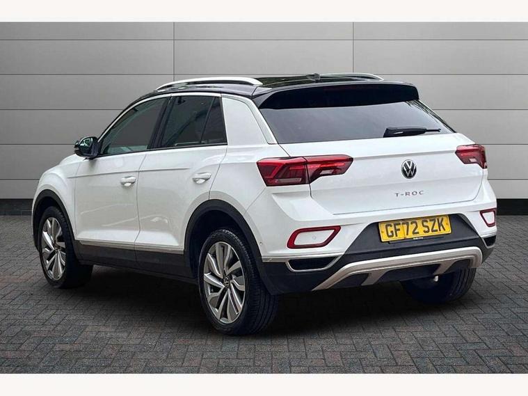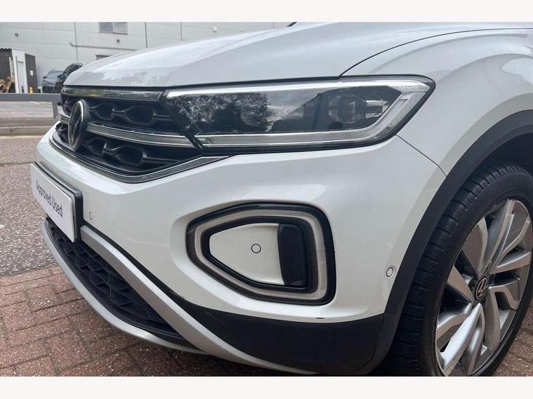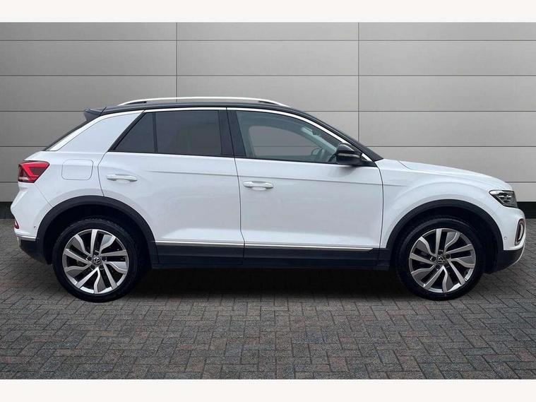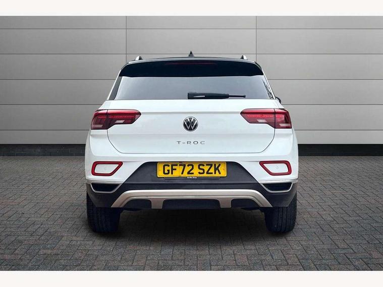 10.25" Digital cockpit pro, Bluetooth mobile phone interface, Driver alert system with fatigue detection, Driver tips and journey analysis, Dynamic road sign display, Emergency call service, Lane keeping system Lane Assist, Modified key software - reduce switch off time for key status change to Long no motion, Online services, Park assist including front and rear parking sensors, Power assisted speed sensitive steering, Service interval indicator, Tailgate/trunk lid release from outside, Think blue trainer driver tips and journey analysis, Warning sound and light for front seatbelts unfastened, Wireless app connect, Battery regeneration during braking, Front shock absorption, Rear shock absorption chassis with increased ride height, Start/stop function with battery regeneration, Diversity antenna for FM reception, Front and rear 6 speakers, Music playback - MP3, WMA and AAC files, Premium USB cable in choice of either Apple or Android smartphone compatibility, SD card slot, Simultaneous pairing of 2 compatible mobile devices, Title and cover art display, We Connect and We Connect Plus functionality, 3rd brake light, Auto dimming interior rear view mirror, Automatic hazard lights activation under emergency braking, Automatic headlight control with LED separate daytime running lights with coming/leaving home function, Body colour sports bumpers with silver metallic underbody fascia, Dynamic headlight range control with self adjusting whilst driving, Extended roof spoiler, Exterior mirrors aspherical on driver side, convex on front passenger side, External USB type C socket and charging sockets, Front windscreen wiper with intermittent wipe and 4 position delay, Heated rear window, LED Plus headlamps, LED rear combination lamps, LED rear number plate lights, LED tail lamp rear comination lamps, Light mode for poor weather, rain, fog or snow, Power windows with comfort operation and circuit breaker, Rain sensor, Rear exhaust tailpipe, Rear fog light on one side and reversing lights on both sides, Rear side wing doors, Rear wash/wipe with intermittent wipe setting, Remote electrically foldable door mirrors, puddle lights and reverse activated passenger's door mirror, 12V power socket in centre console, 3 rear head restraints, 3 seat bench in 2nd row, 4 load lashing points in luggage compartment, Air care climatronic air conditoning system with active combination filter and 2-zone temperature control, Chrome plated radiator grille inserts, air vent surrounds and light switch surrounds, Door and side trim panel with leatherette insert, Drawer under drivers seat, Front + rear carpet mats, Front centre armrest, Front comfort sports seats, Front cupholders x 2, Front footwell illumination, Instrument lighting, white adjustable panel illumination, Interior ambient lighting and surround lighting, Interior light delay, Isofix child seat preparation, Leather gearshift handle, LED interior light with switch off delay/dimmer and 2 front/rear LED reading lights, Load-through provision with cup holder when folded down ('Unsplit rear seat bench, split folding backrest, with centre armrest), Luggage compartment lighting, Non-folding front passenger seat backrest, Single front passenger seat, Storage compartment in left and right luggage area, Storage compartment in rear doors, Storage compartments in driver and front passenger doors, Sunvisors with illuminated vanity mirrors, Variable boot floor, height adjustable and removable, Driver assistance pack without proactive passenger protection - T-Roc, 3 point height adj front seatbelts + pretensioners, 3 point seatbelts in outer rear with ECE label, ABS, Child locks on rear doors, Driver and front passenger airbag with front passenger airbag deactivation, Driver and front passenger safety-optimised head restraints, Drivers seatbelt reminder, Electronic parking brake, Electronic Stability Control (ESC) inc EDL (Electronic Differential Lock) and ASR (Traction Control), Front and rear passengers curtain airbag system including front side airbags, Front assist with city emergency braking and pedestrian monitoring, Front disc brakes, Front seat side impact airbags, Predictive pedestrian protection, Rear disc brakes, Single tone horn, Tyre pressure loss indicator, Volkswagen roadside assistance, Alarm with interior protection, Anti-theft alarm system with interior monitoring, backup horn, and towing protection, Remote central locking with SAFELOCK, radio remote control with 2 remote control folding keys, Trims for alloy wheels,