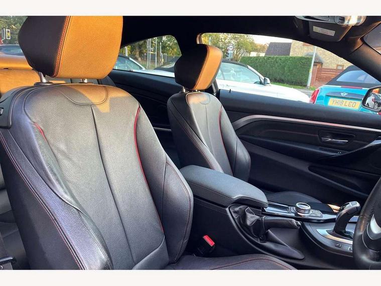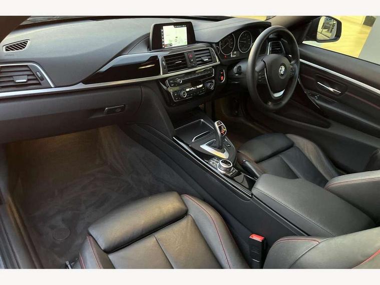 BMW Online services, BMW remote services, BMW Teleservices, Brake pad wear indicator warning light, Check control system, Door/boot open warning, Front/rear Parking distance control, iDrive controller and display with 6.5" monitor, Lights on warning, Oil temperature gauge, On board computer, Outside temperature display, Real time traffic information, Run flat indicator, Service interval indicator, Stop/start button, Drive Performance Control, Electronic differential lock, Sports function on gearbox with steering wheel mounted gearshift paddles, Bluetooth audio streaming, BMW professional radio/CD/MP3, DAB Digital radio, 2 speed adjustable intermittent wipers with wash/wipe function, Auto dimming rear view mirror, Body colour bumpers, Body colour door handles, Body colour roof mouldings, Chrome kidney grille with black vertical slats, Dual chrome exhaust, Electric adjustable heated door mirrors, Electric front windows/one touch facility, Follow me home headlights, Heated windscreen washer jets, High gloss black finish B pillar, LED daytime running lights, LED front fog lights, Rain sensor including auto headlights activation, Welcome lighting, Windscreen with grey shadeband, 12V sockets in front centre console and passenger footwell, 4 grab handles, Anthracite Velour floor mats, Dual zone climate control, Folding front centre armrest with storage compartment, Folding storage compartment with glasses holder + coin tray, Front cupholders x 2, Front door storage with bottle holder, Front head restraints, Front sports seats with electric side bolster adjustment, Front/rear armrests within door panels, Glovebox with lid, Heated front seats, Integrated rear head restraints, ISOFIX child seat preparation+airbag deactivation, Lashing eyelets in boot, Leather gearknob, Leather handbrake grip, Reach + rake adjustable steering column, Rear centre armrest with 2 cupholders, Storage compartment in rear centre console, Toolkit located in luggage compartment, Extended lights package - 4 Series, 3 point seatbelts on all seats, ABS/EBD, Automatic Stability Control (ASC), BMW emergency call, Brake energy regeneration, Cornering brake control (CBC), Crash Sensor - activates hazard/interior lighting + unlocks doors, Driver seatbelt warning indicator, Driver/Front Passenger airbags, DSC+, Dynamic brake control, Dynamic Traction Control - DTC, Front passenger airbag deactivation, Front seatbelt force limiters, Front seatbelt pretensioner, Front side airbags, Hill start assist, ITS head airbags for front/rear, Side impact protection, Tyre pressure monitor, Warning triangle and first aid kit, Central locking including fuel filler and boot, Drive away door locking, Electronic immobiliser, Remote control Thatcham category 1 alarm, Run flat tyres,